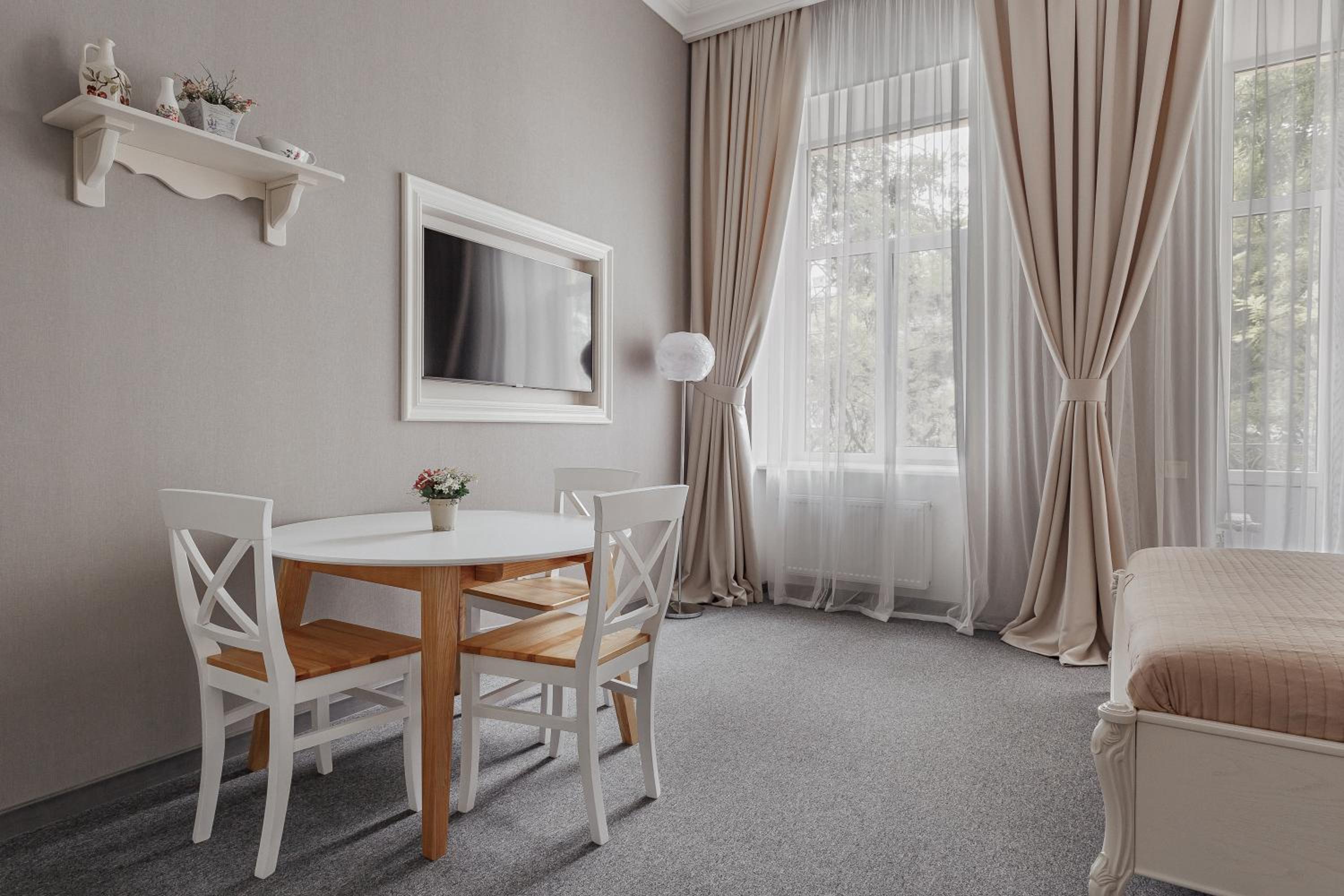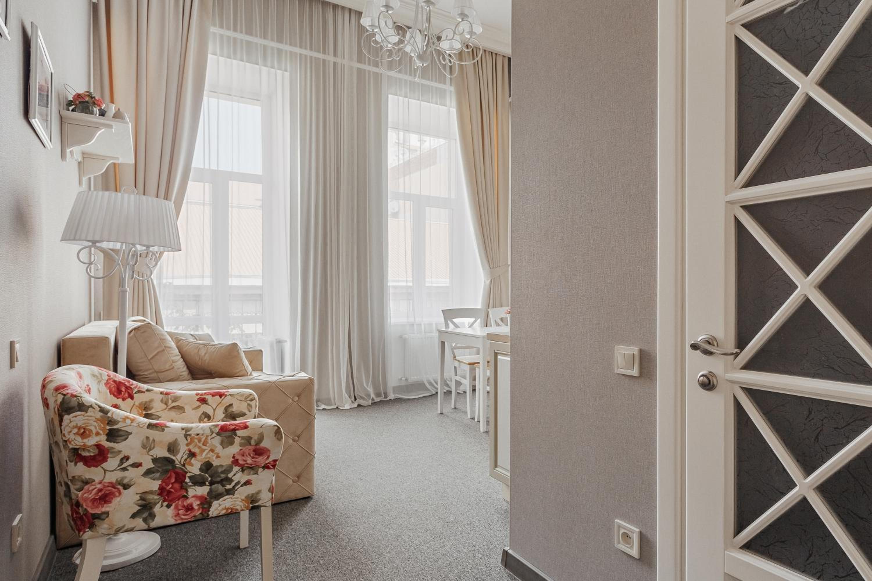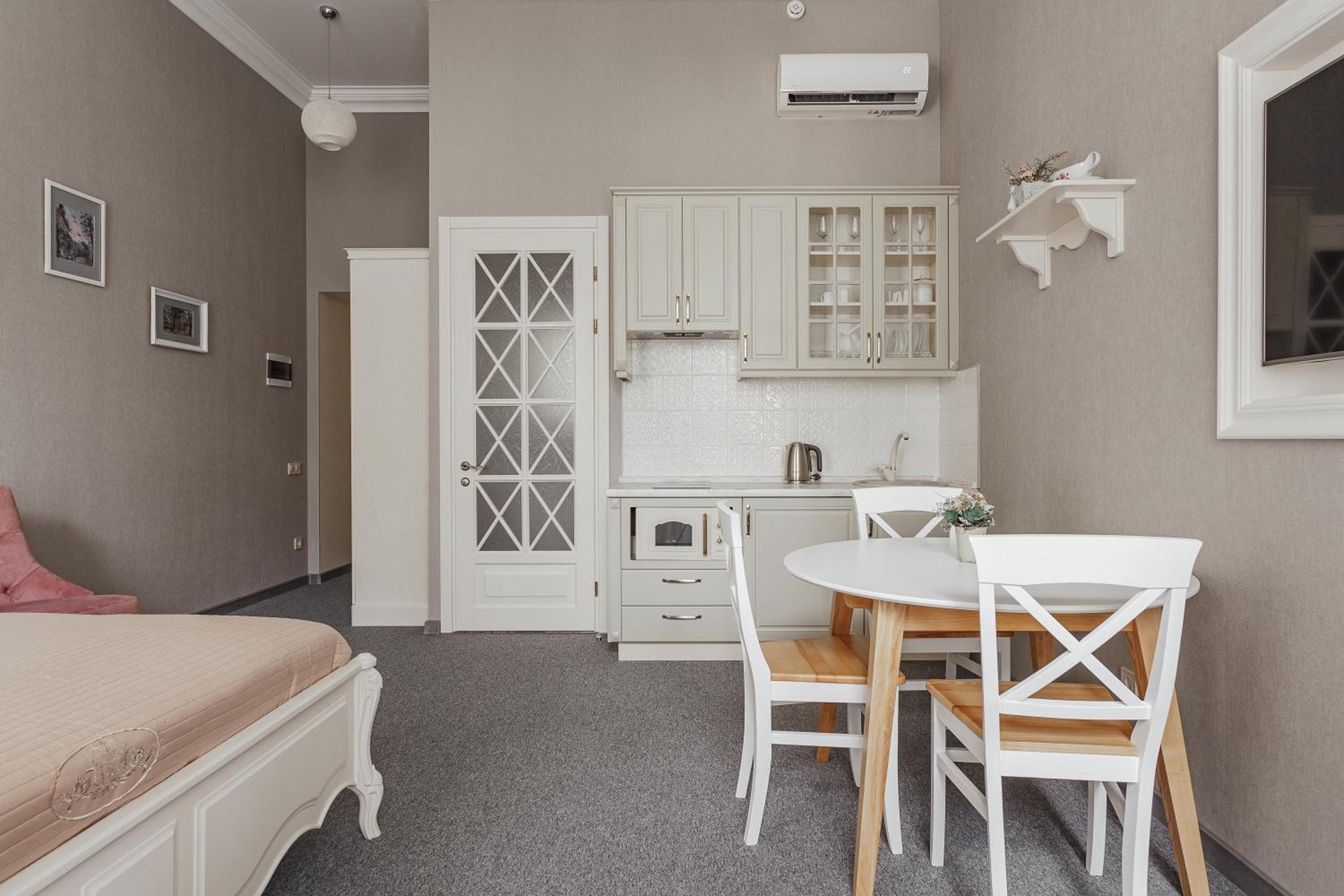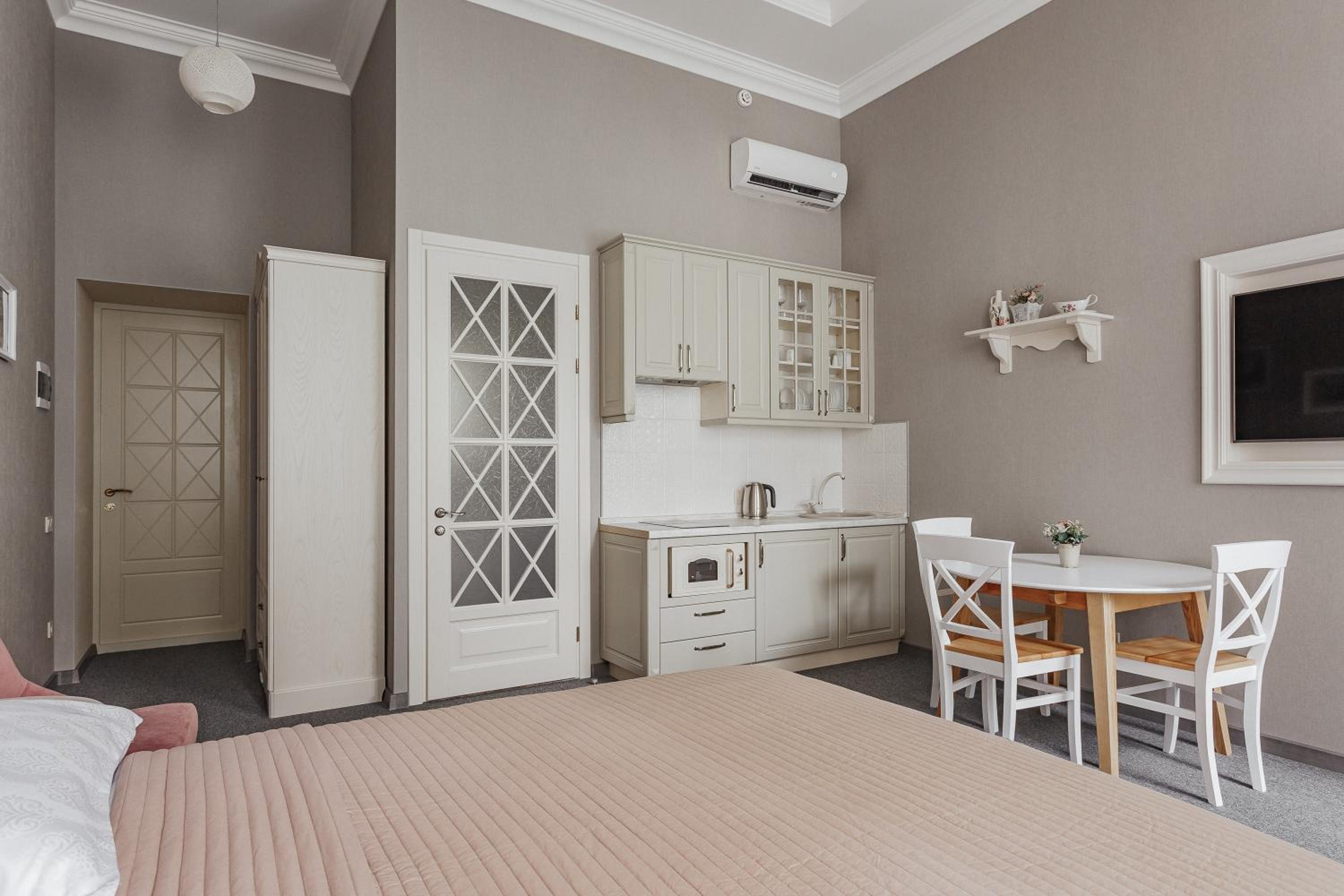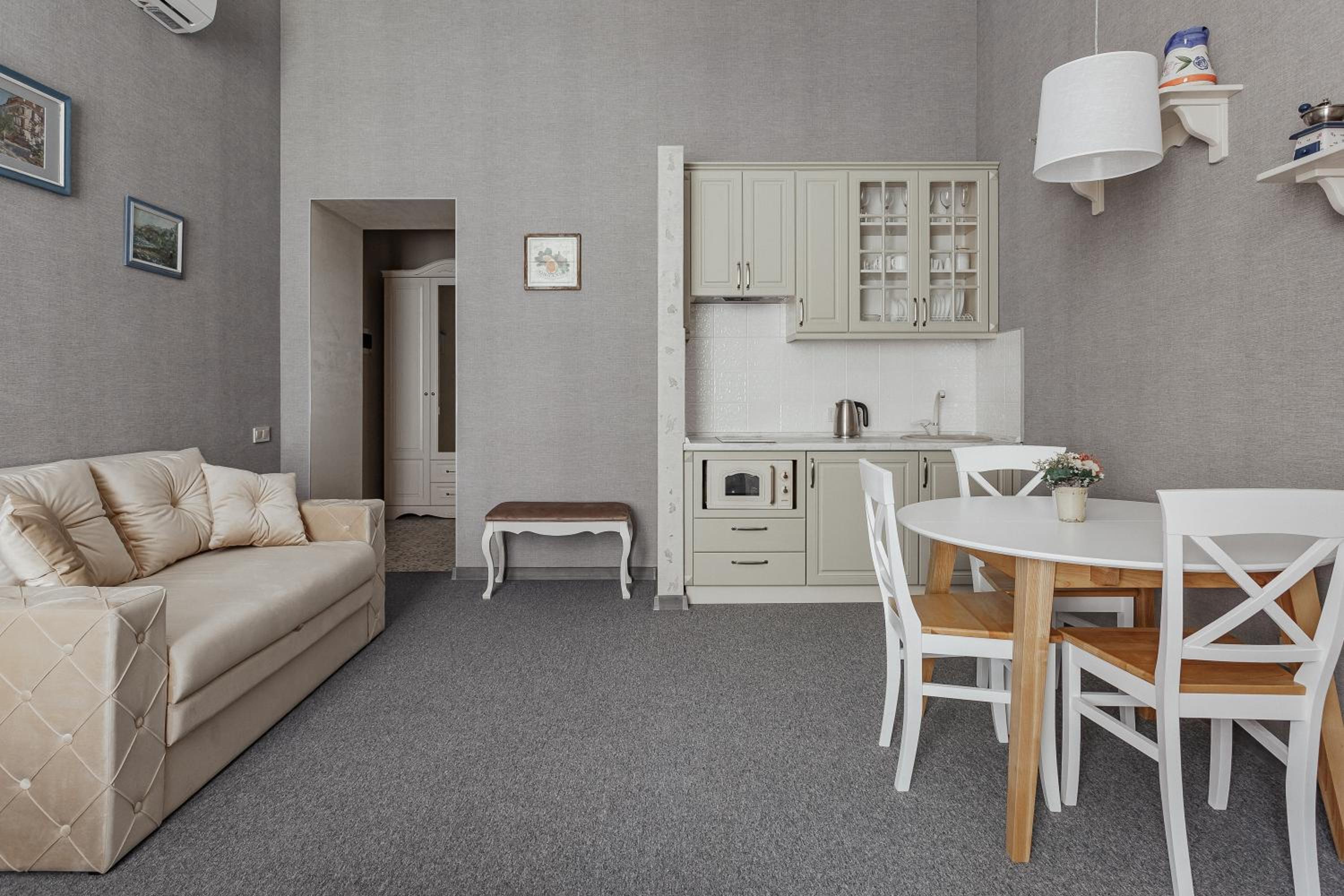 Поки що найкраще помешкання в якому були в Одесі. Розташоване в затишному дворику, це міні готель який займає 2 і 3 поверх(ліфта немає), на кожному поверсі 4 номери. Номер був затишний, світлий, сучасний ремонт, було все необхідне, високі стелі(багато повітря). На поверсі є кімната з 2ма пральними машинами і праскою, що дуже зручно. Саме важливе для нас було - парковка. З цим все ок - у дворі на протязі дня майже завжди є вільні місця, перед поселенням можна стати на парковку по тій же вулиці, далі вас зустрінуть, відчинять ворота і ви заїдете. На протязі дня завжди може допомогти покоївка пані Світлана, чудова жінка. Дякуємо за гостинність!