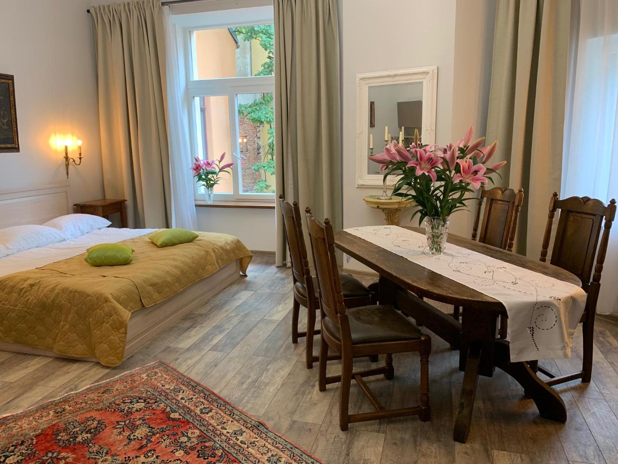 Very nice apartment in the city centre. It even had mini-kitchen. The building is old and historicaly charming. Check in was very easy. On check-out day our bags were safely locked. Recommended
