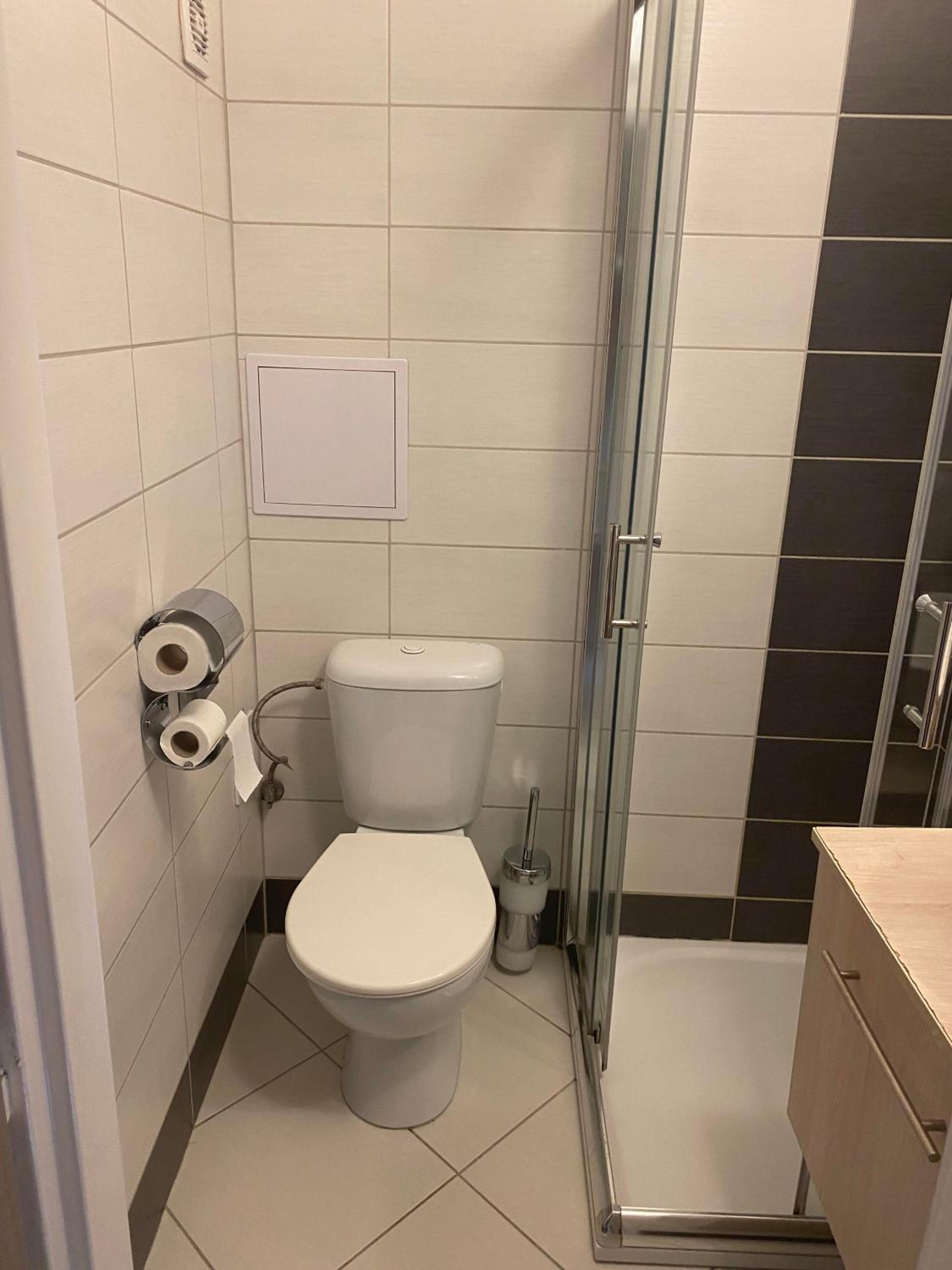 Muszla klozetowa cała się trzęsie w momencie, gdy się na nią siada, a kanalizacja w budynku ma ewidentnie problem – słychać bardzo głośno wędrującą wodę, również z innych pokoi. Ściany są jak z waty, można dosłownie cytować słowa ludzi z sąsiednich pomieszczeń.