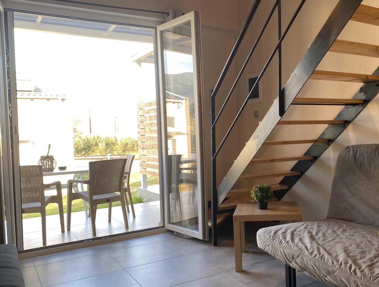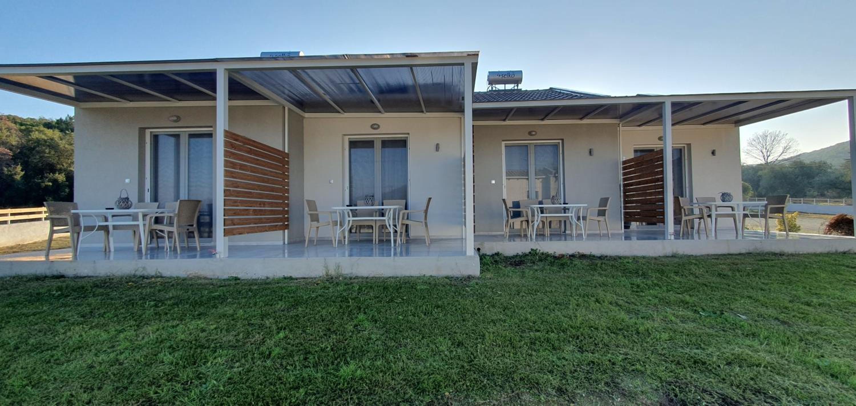 Отделено е от шума , има собствен паркинг и винаги има място , няма етажи и носене на багаж като в хотелите , чист и свеж въздух , а в същото време на пешеходно разстояние от комуникативната част , плажът беше на близо. Има място за игри , чувството да си в къща с веранда е много яко , имаше всичко и нищо не ни липсваше. Къщата беше по-рано готова и на практика се настънихме още в 12:00 (можехме и по-рано) Домакинът е много готин и имахме постоянна комуникация с него , питаше ако ни липсва нещо за да ни го осигури , 10 от 10