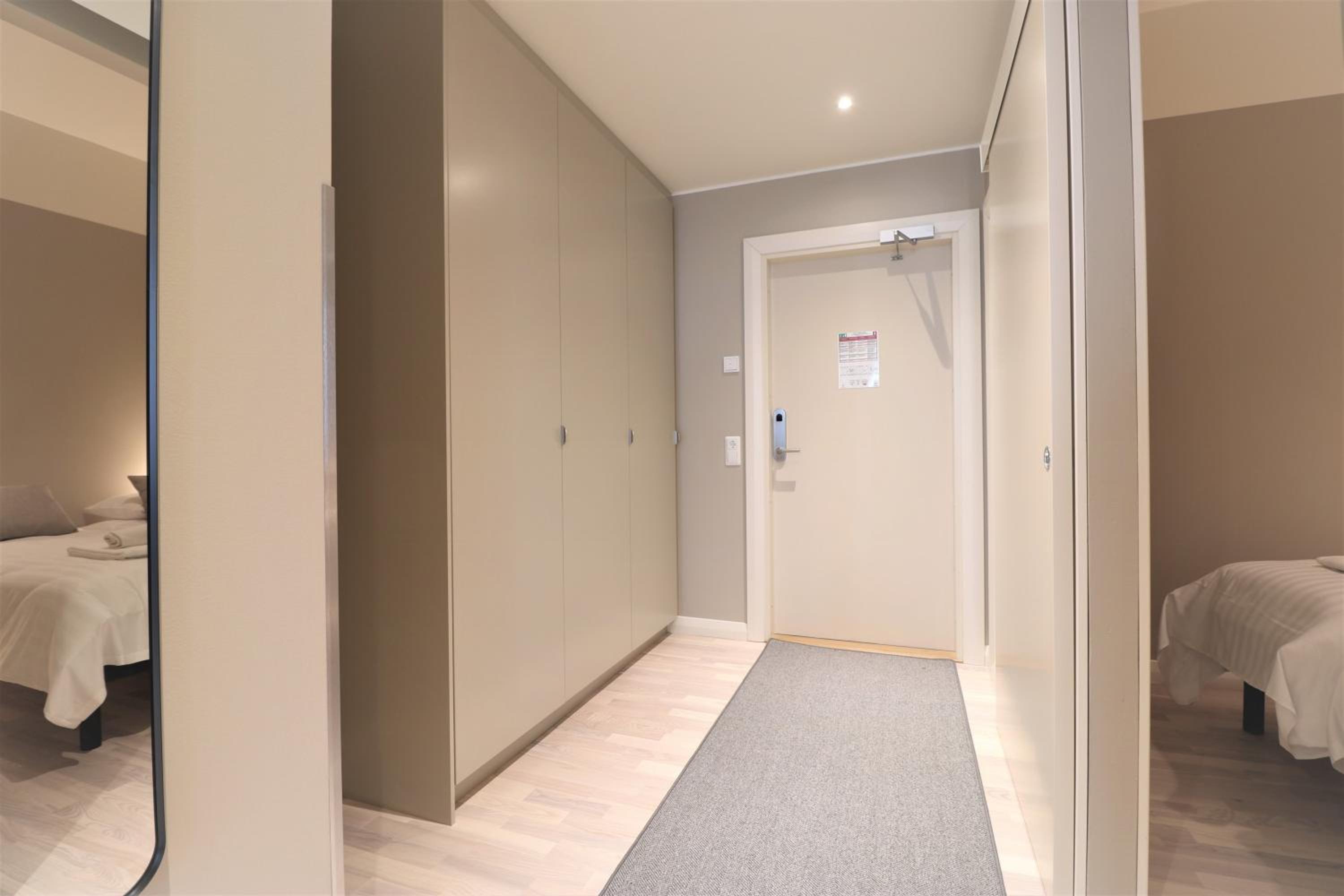 Sijainti oli loistava ja kaikki tarpeellinen löytyi. Huone oli hyvin pelkistetty.