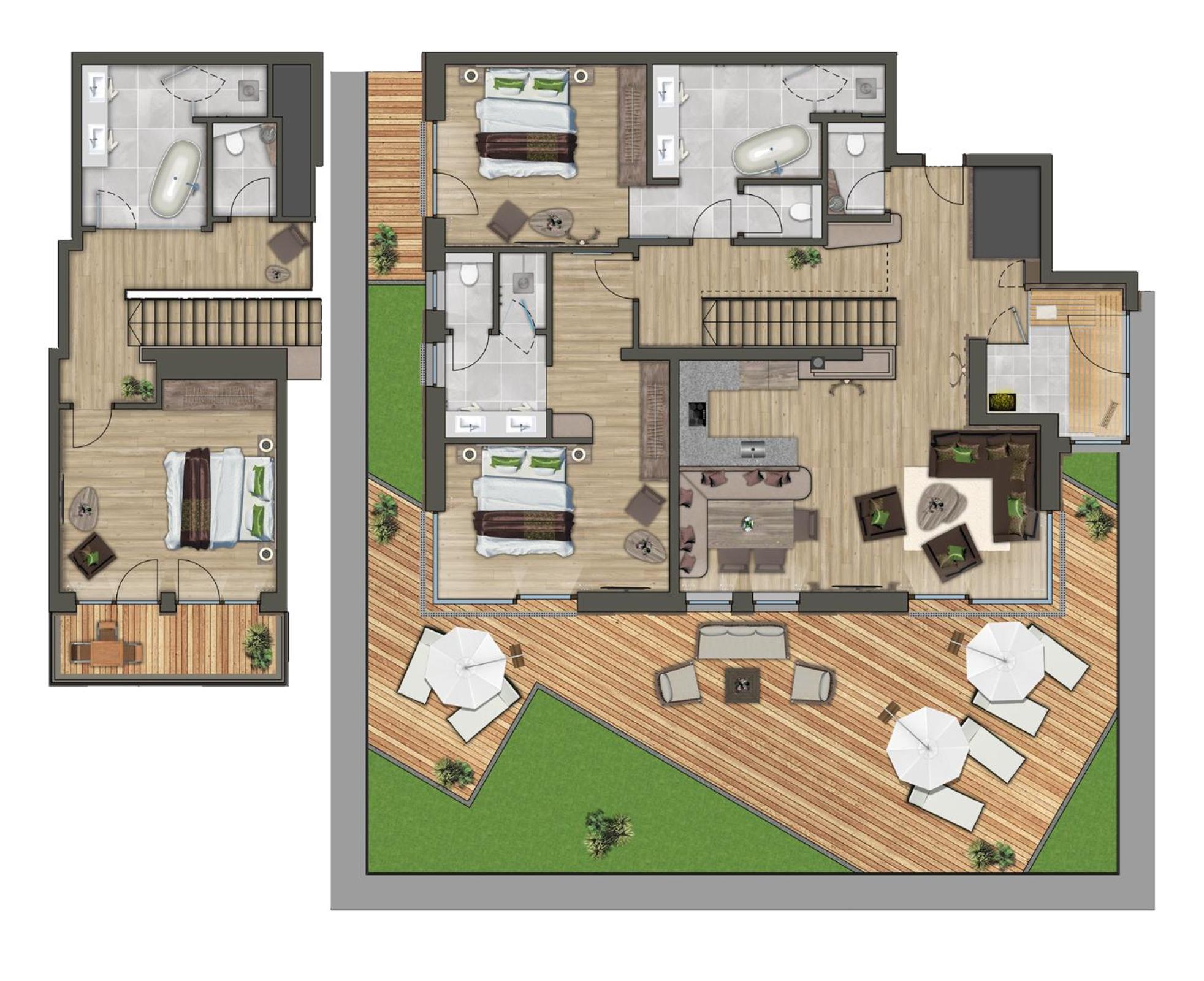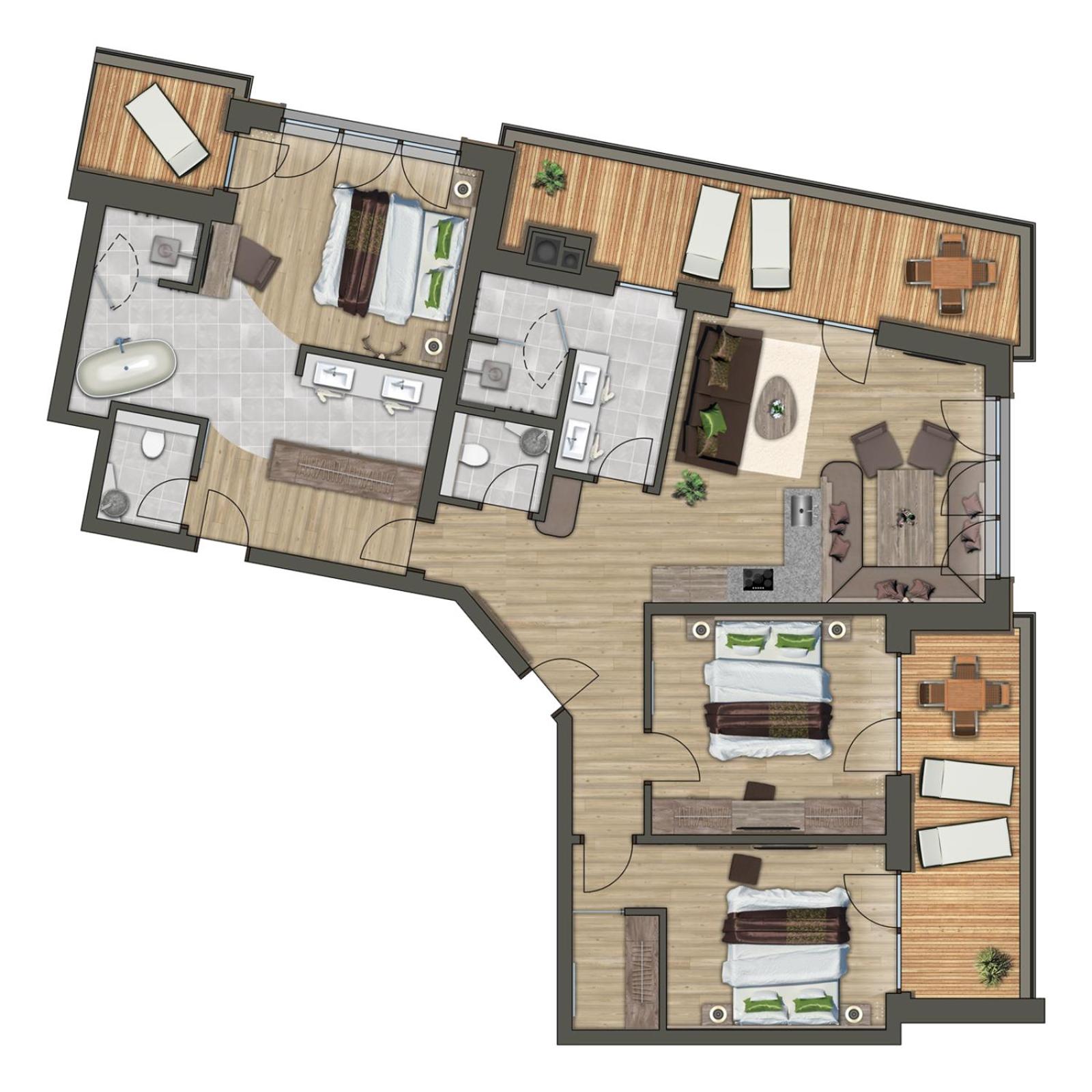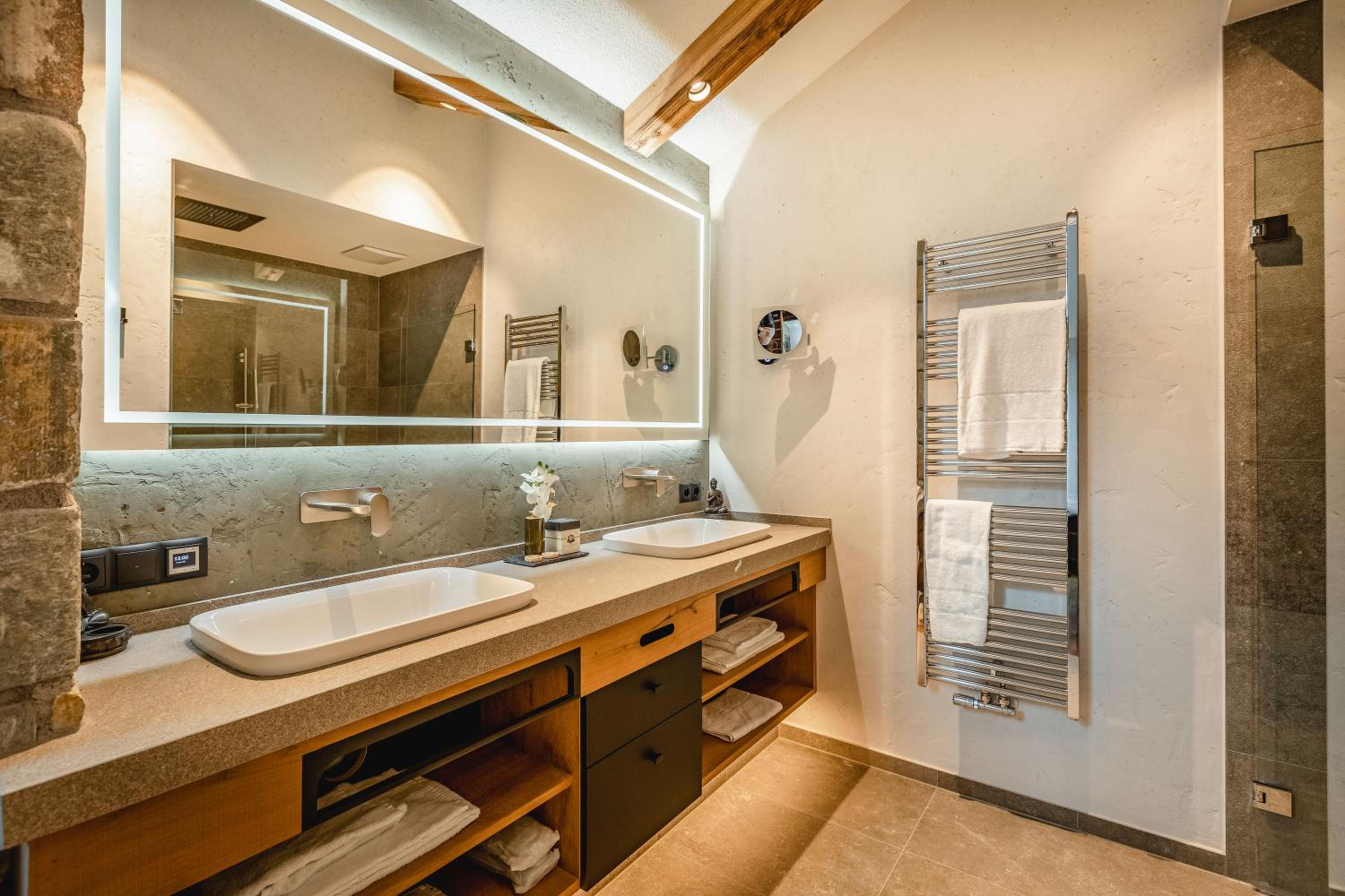 The apartment was very clean and spacious, warm and welcoming with chocolates on our pillows, bathrobes and bedroom slippers. It had all the amenities we needed. Very clean modern bathrooms. Beds are very comfy. The view of the mountains and forests was beautiful. My children enjoyed the indoor swimming pool and slide. The location was good.