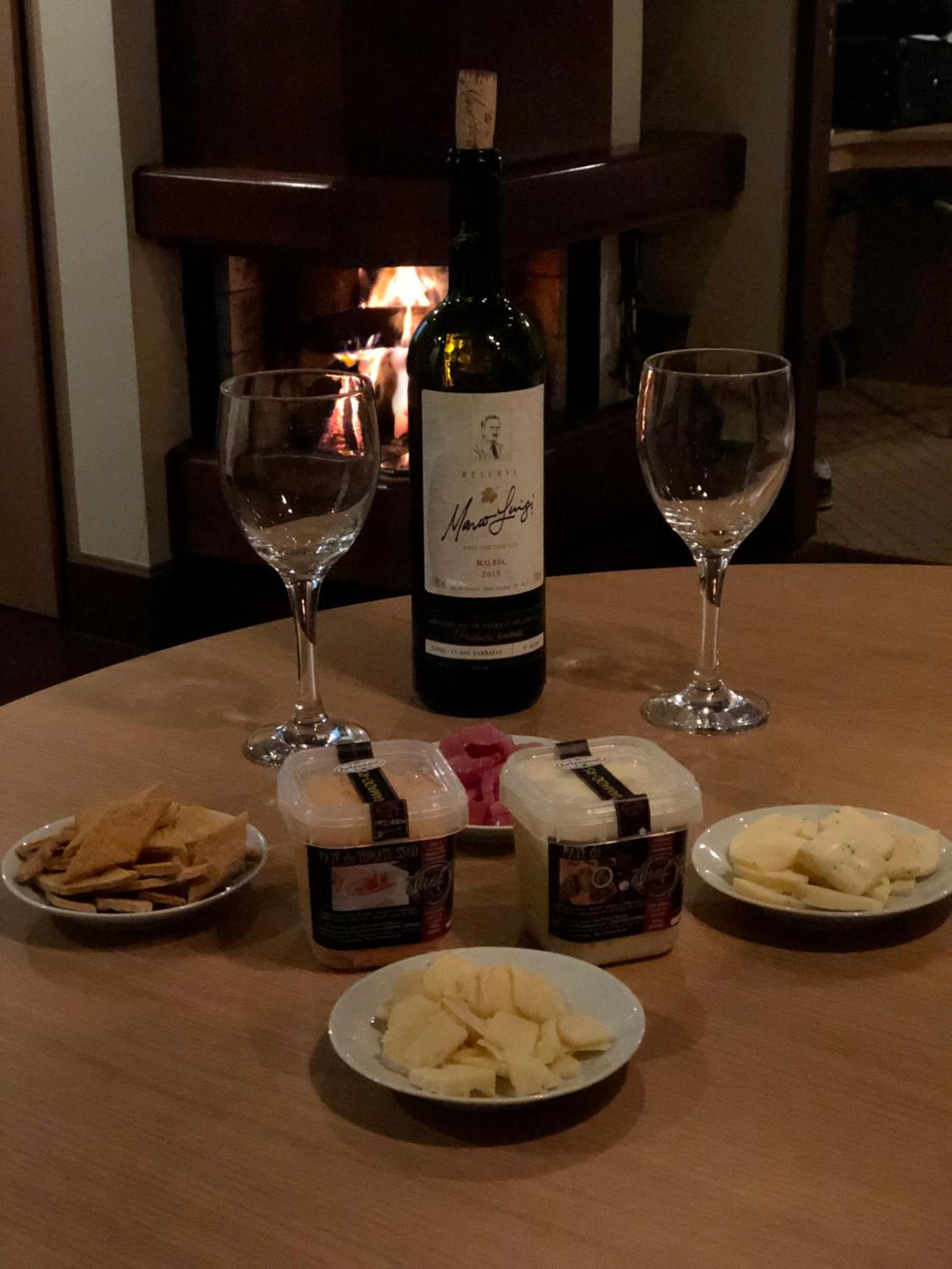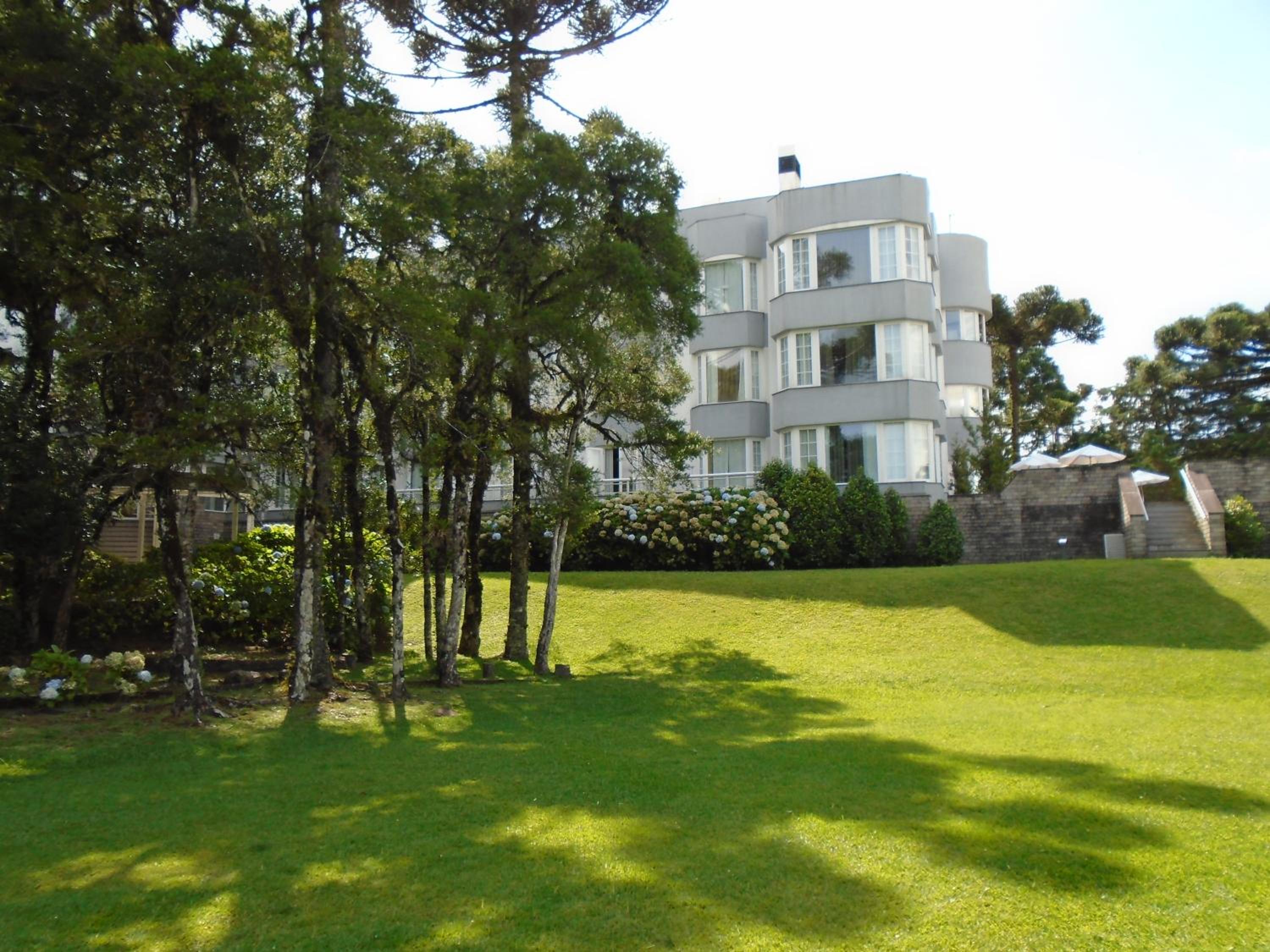 Experience the cozy ambiance of a fireplace and enjoy breathtaking views of the garden from your patio at Flat no Hotel Mountain Village.