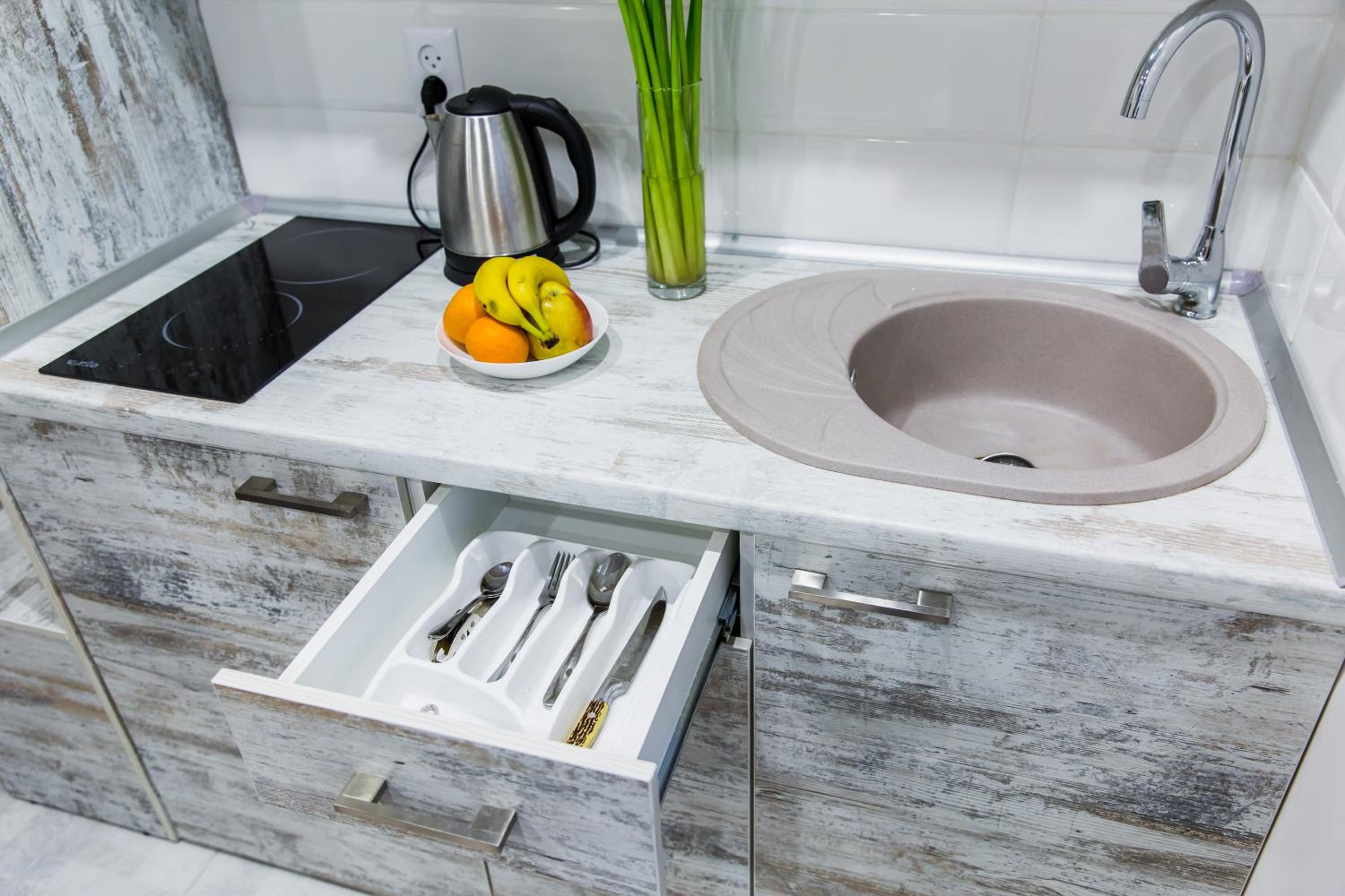 Modern Amenities: Enjoy the convenience of free WiFi, a flat-screen TV, a washing machine, and a fully equipped kitchenette with kitchenware during your stay at our aparthotel.