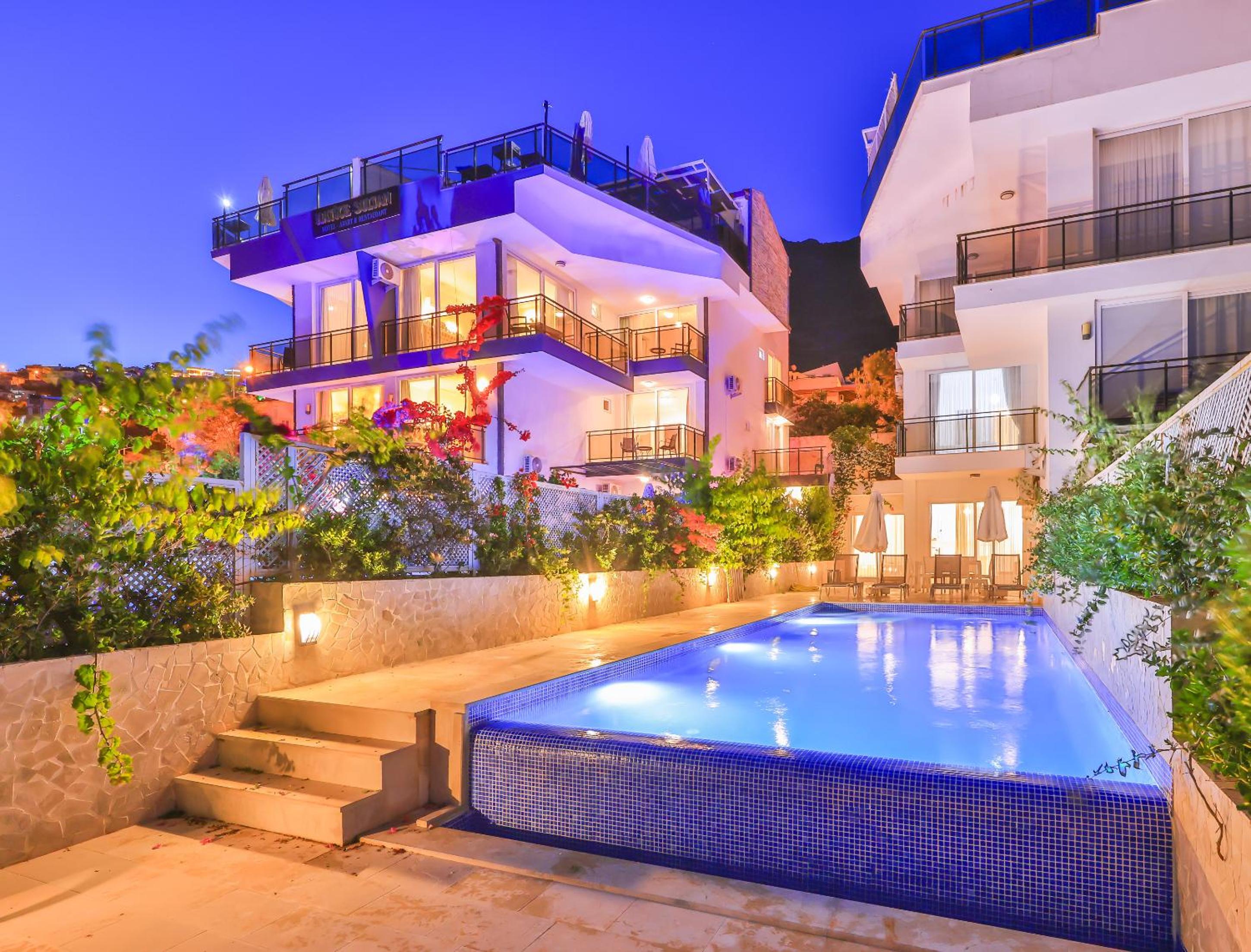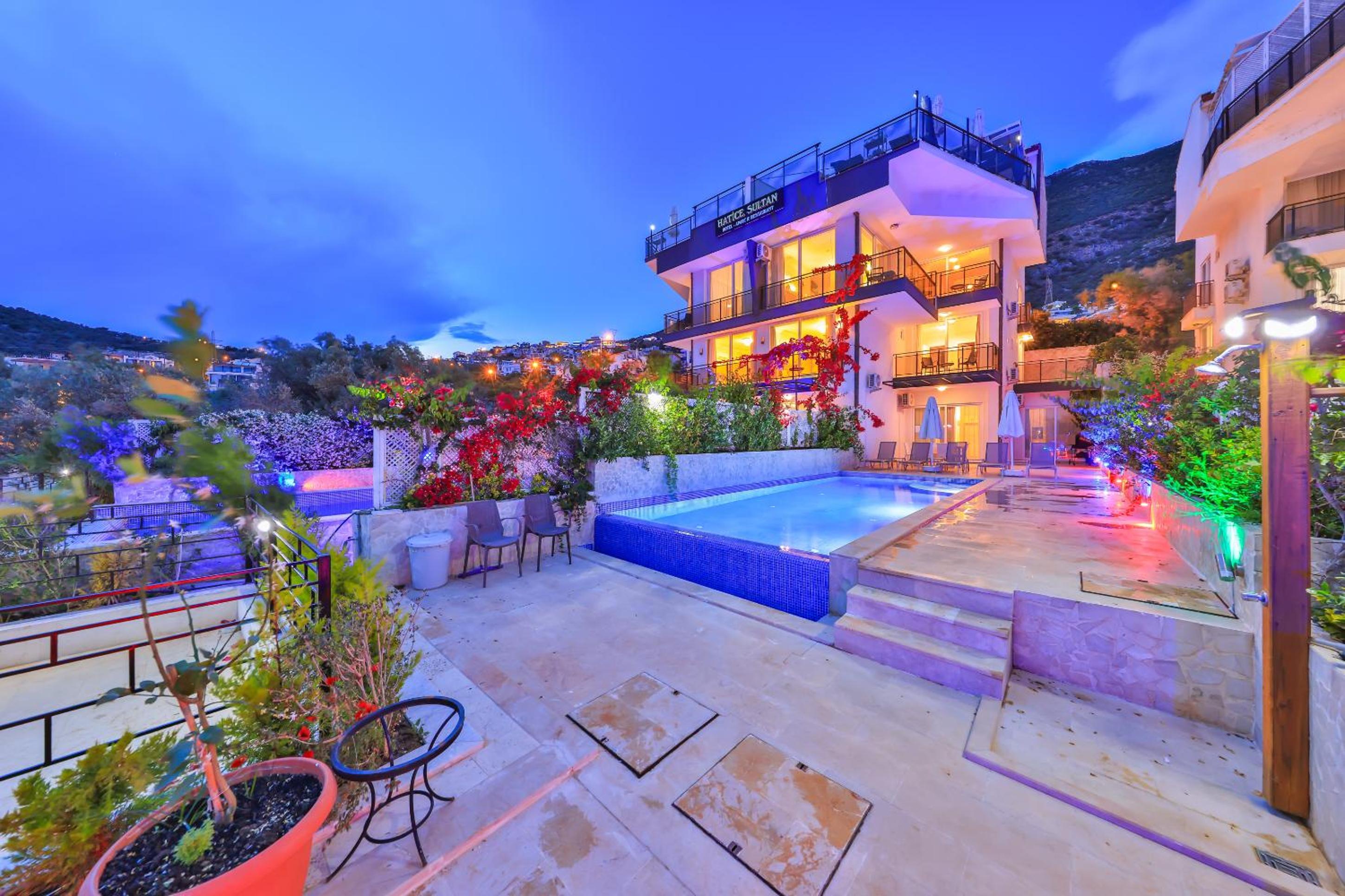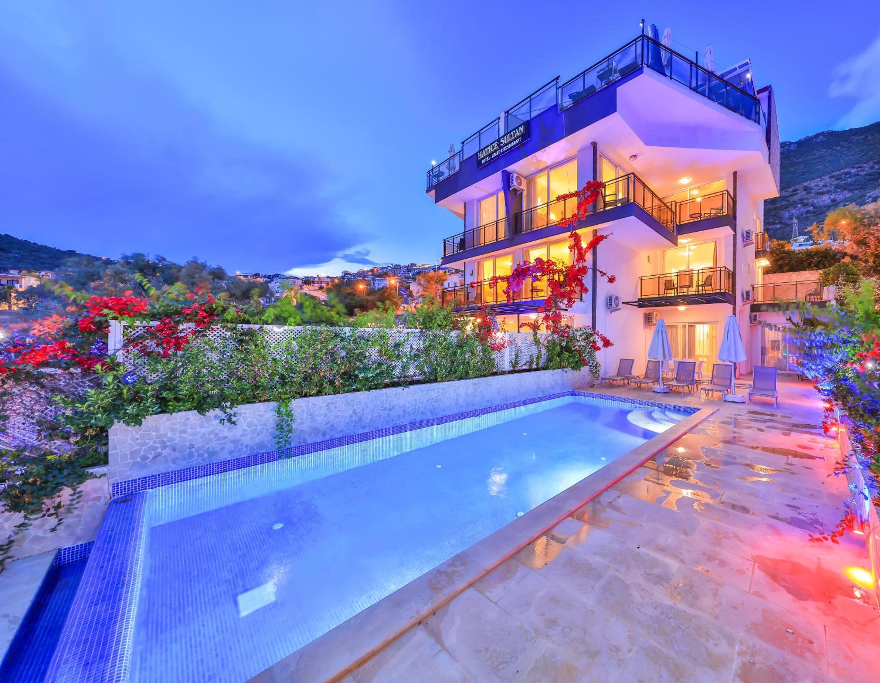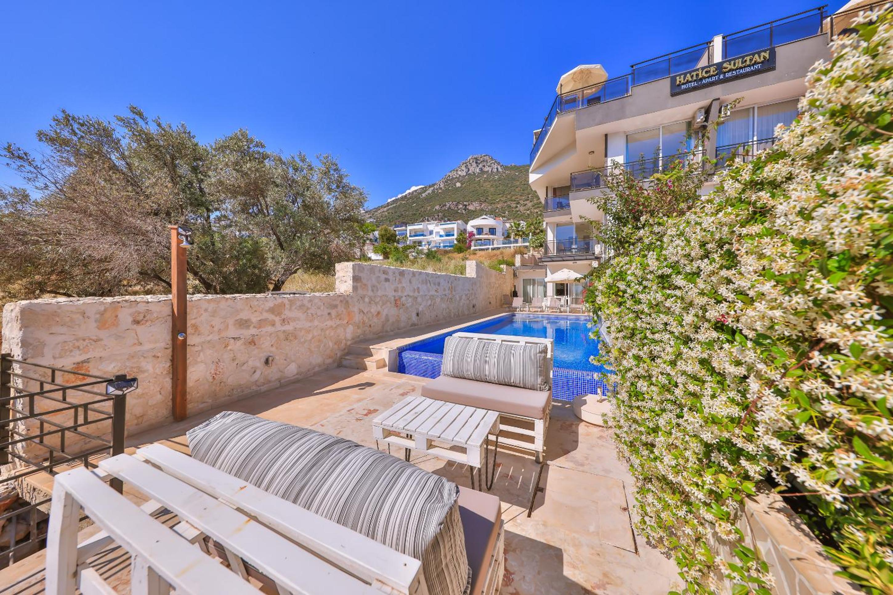 Indulge in the breathtaking sea views from the rooftop pool at Hatice Sultan Villa. Relax and unwind in style while enjoying the serene surroundings of Kalkan.