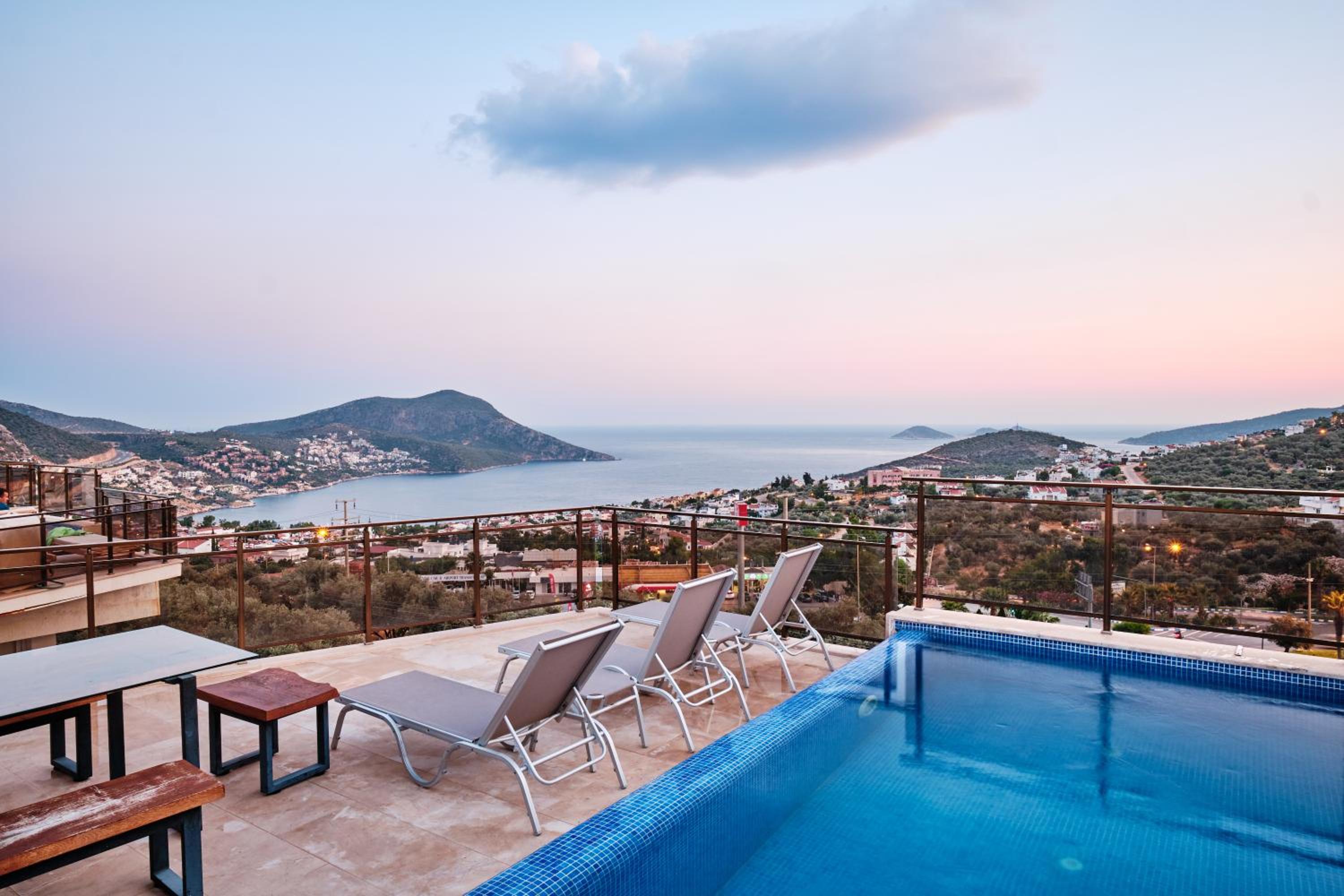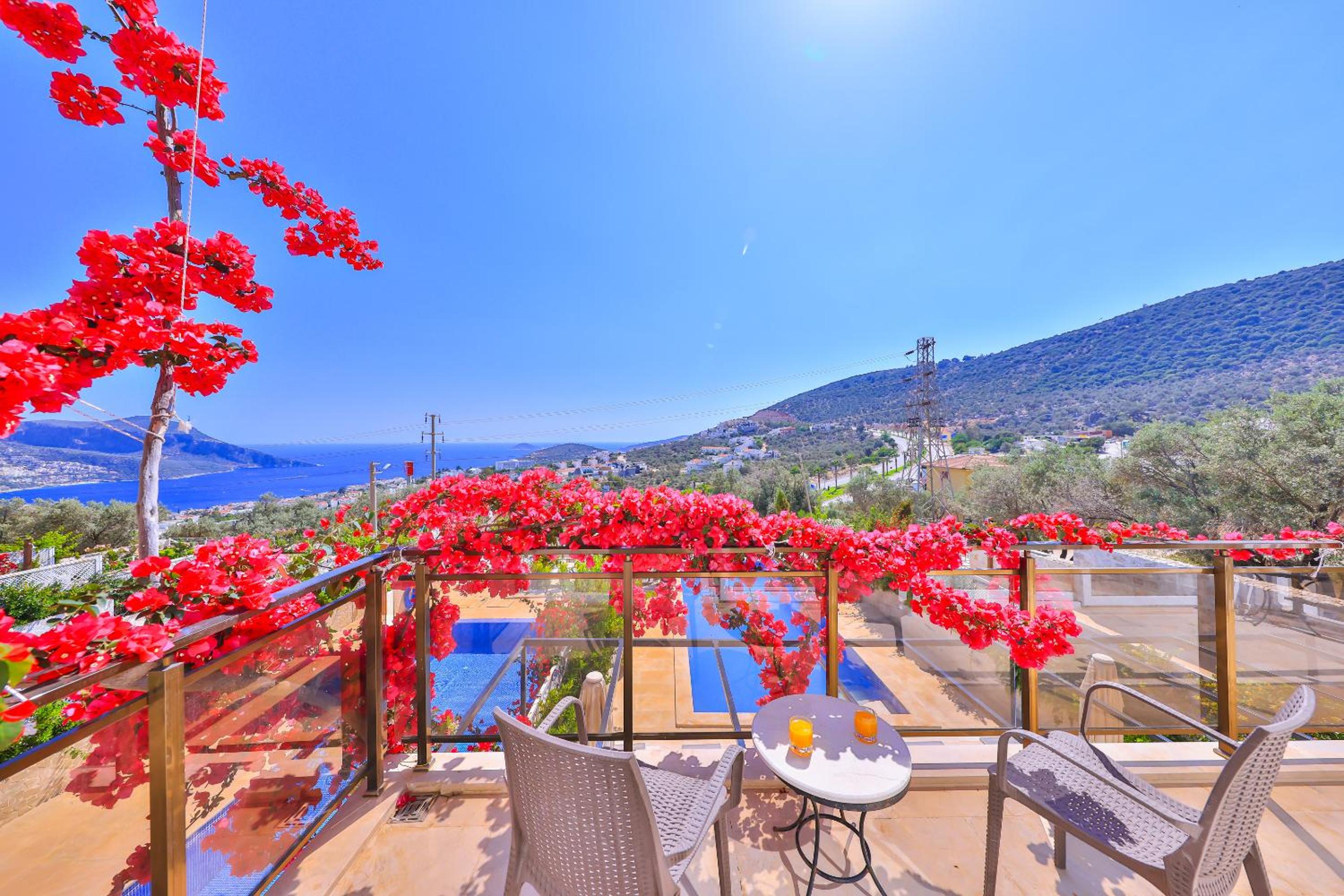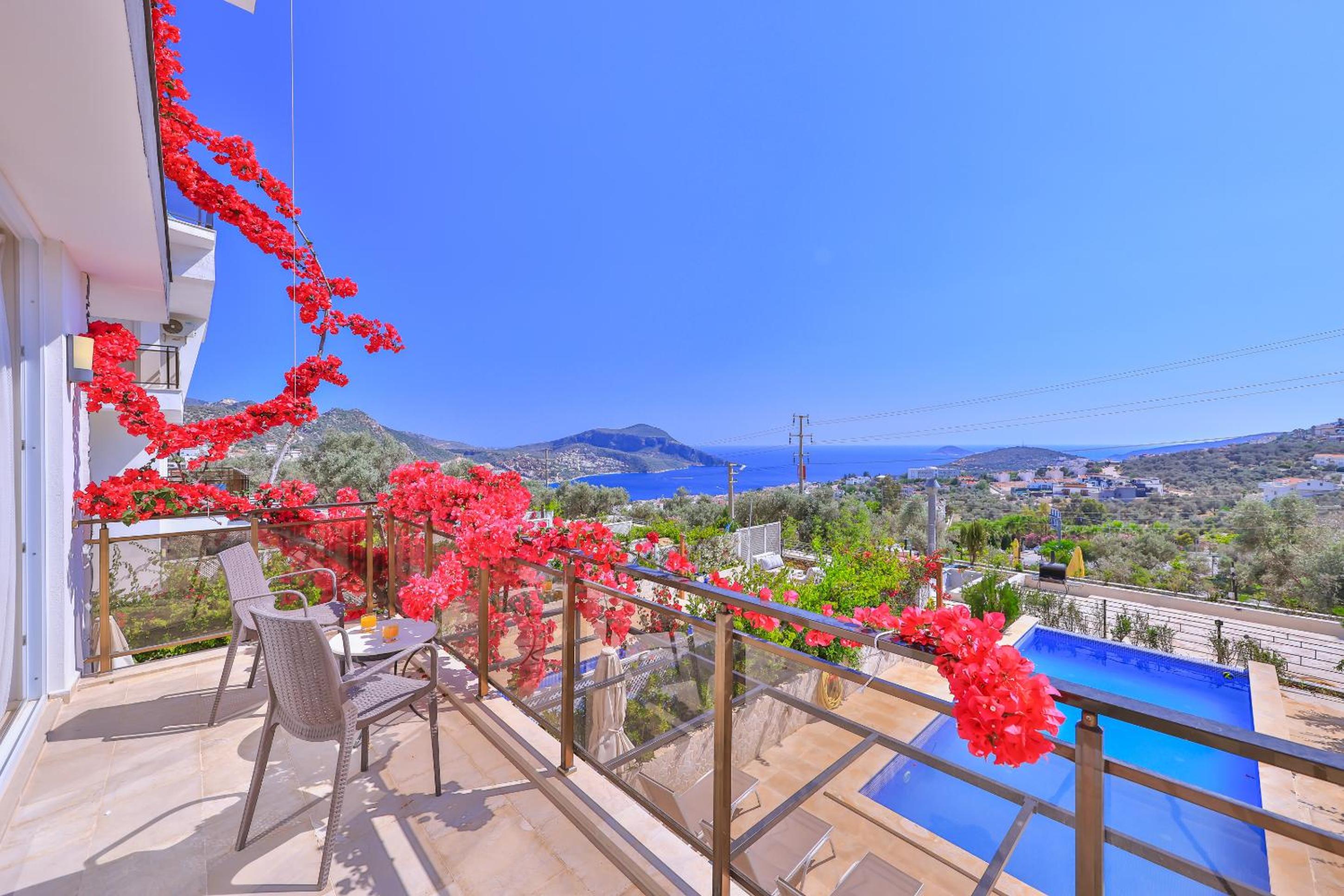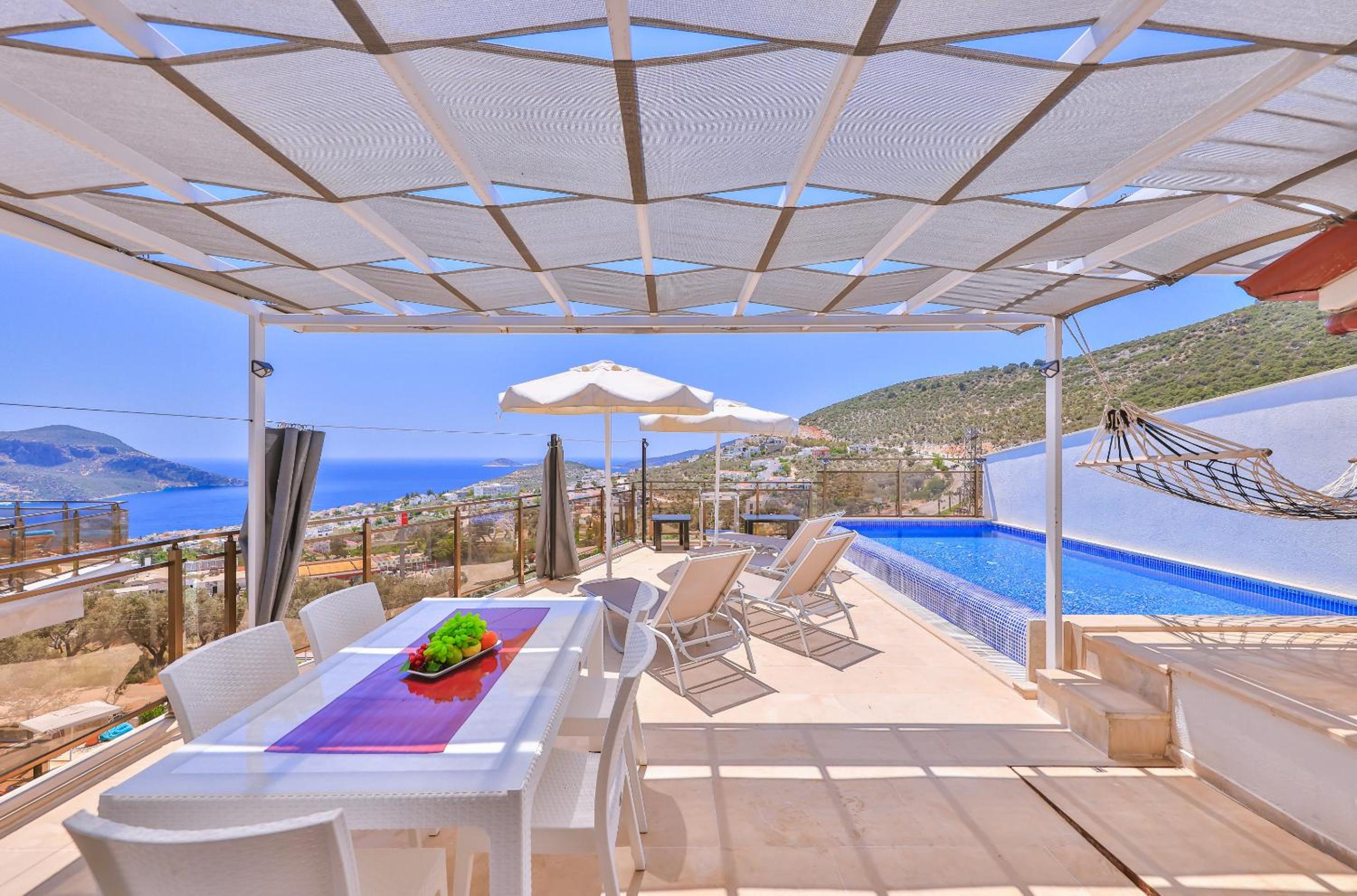 Indulge in the breathtaking sea views from the rooftop pool at Hatice Sultan Villa. Relax and unwind in style while enjoying the serene surroundings of Kalkan.