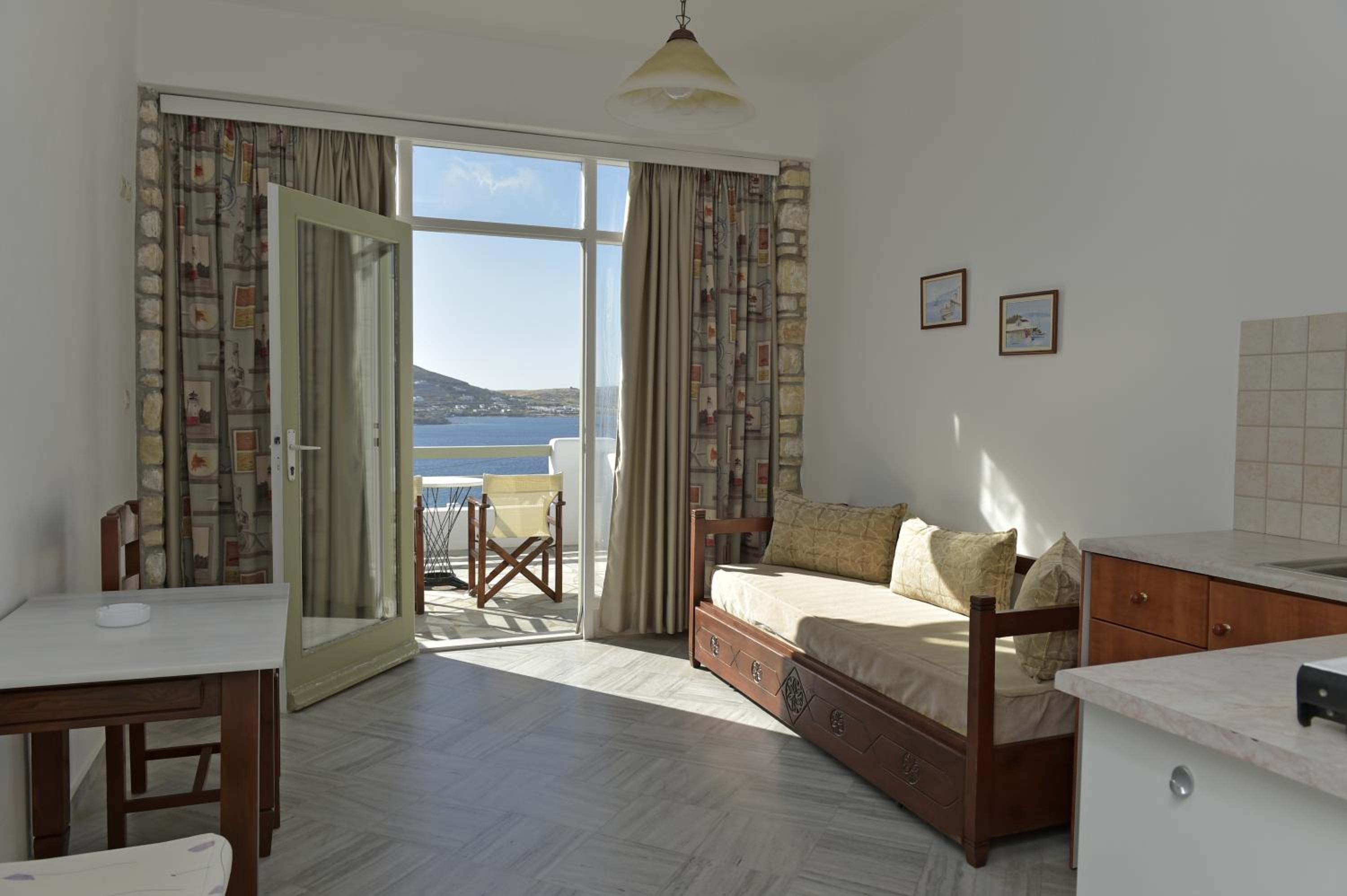 Hara Studios and Apartments offer self-catering accommodation with beautiful Aegean Sea or garden views, just 50 metres from Piperi Beach.