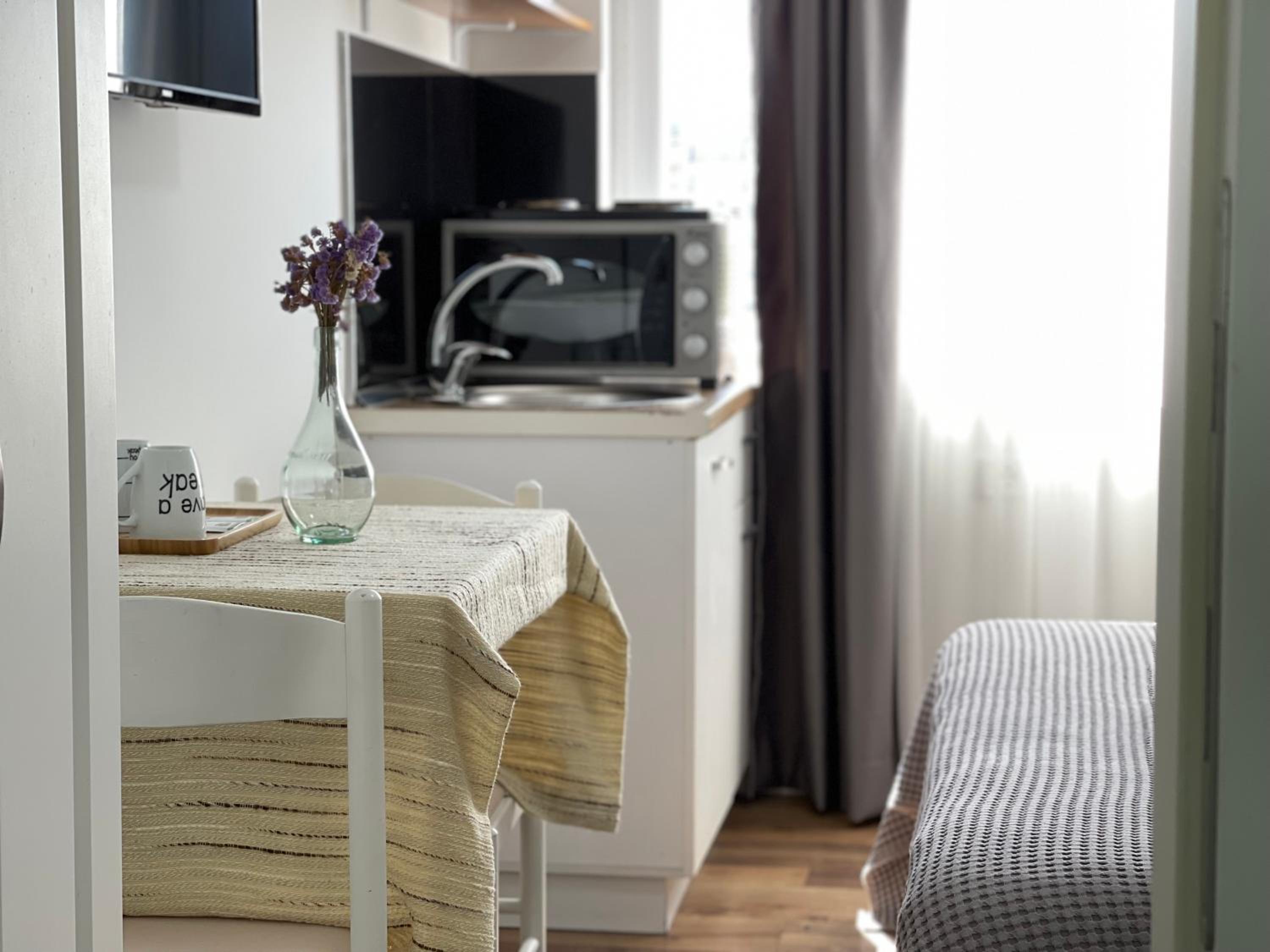 Comfortable Stay: Relax in a private bathroom with a shower and hairdryer, and cozy up in the seating area available in select units. With city views and a peaceful street setting, Central Studio Apartments offers the perfect blend of serenity and urban excitement.