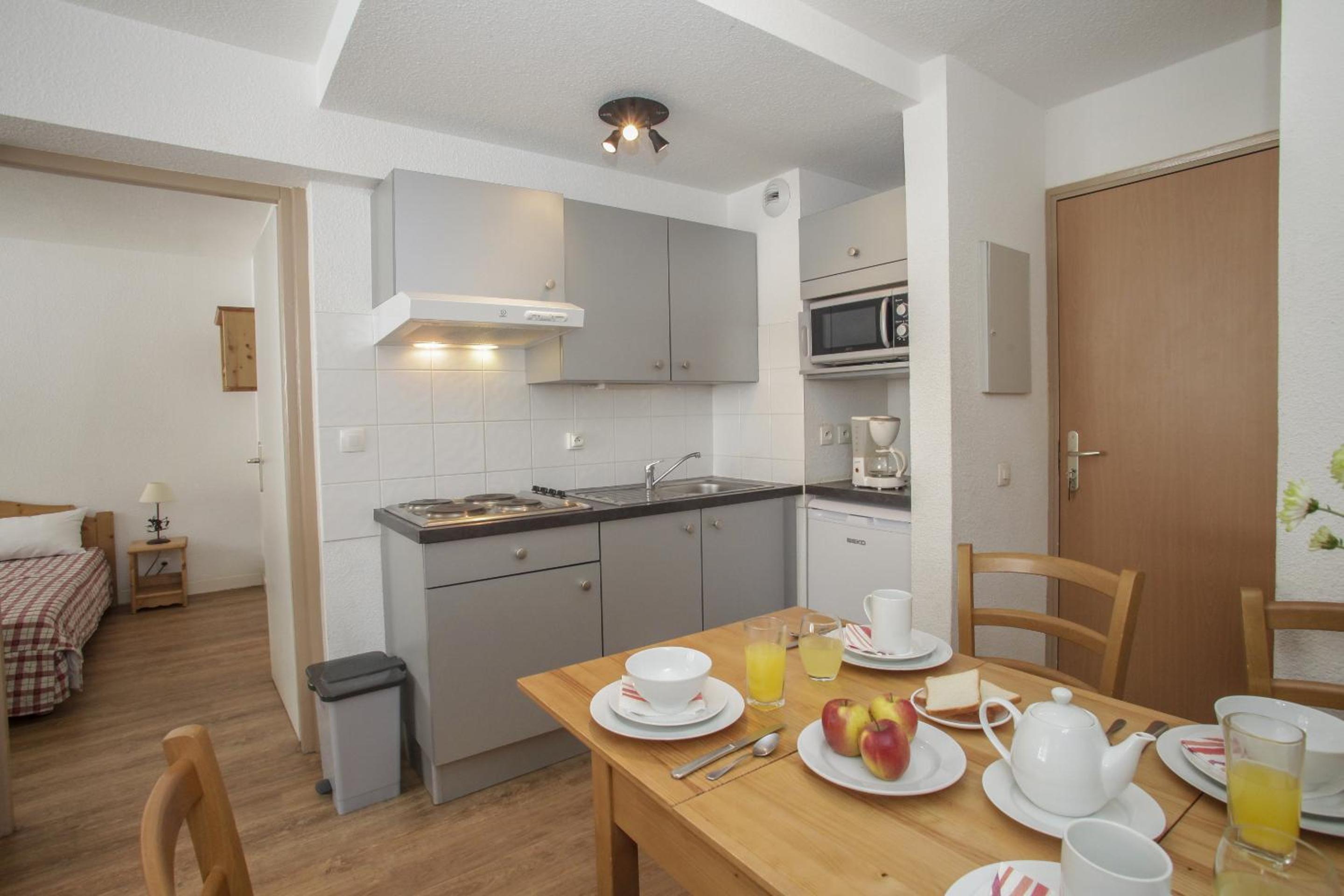 Experience comfort in every corner with our well-appointed apartments featuring modern kitchenettes, living areas with sofa-beds, and balconies to soak in the stunning views of the Savoy region.