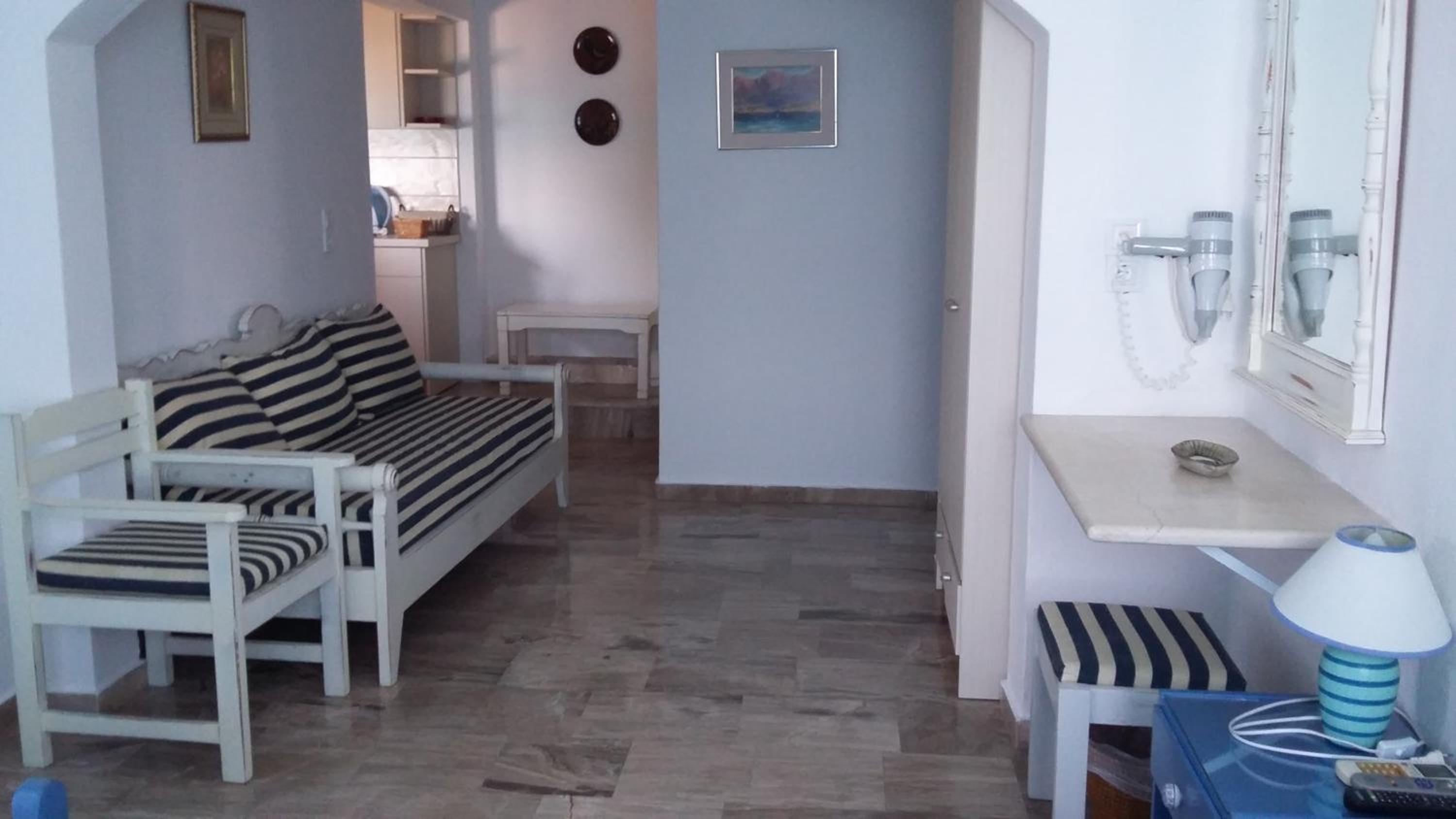 The room was spacious and spotlessly clean and the view from the balcony was spectacular. The staff are always kind and helpful and the small mini market on site is handy. It is a 20 min walk in to Elounda along the water but would be very quick and cheap in a taxi. This was our second time staying and we would return again.