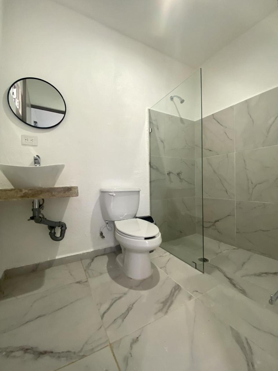 Muy limpio. Céntrico. Seguro. Tranquilo. Sugerencia: podrían poner un mueble para asentar cosas. Un ventilador. Una TV. Un nicho en la regadera.