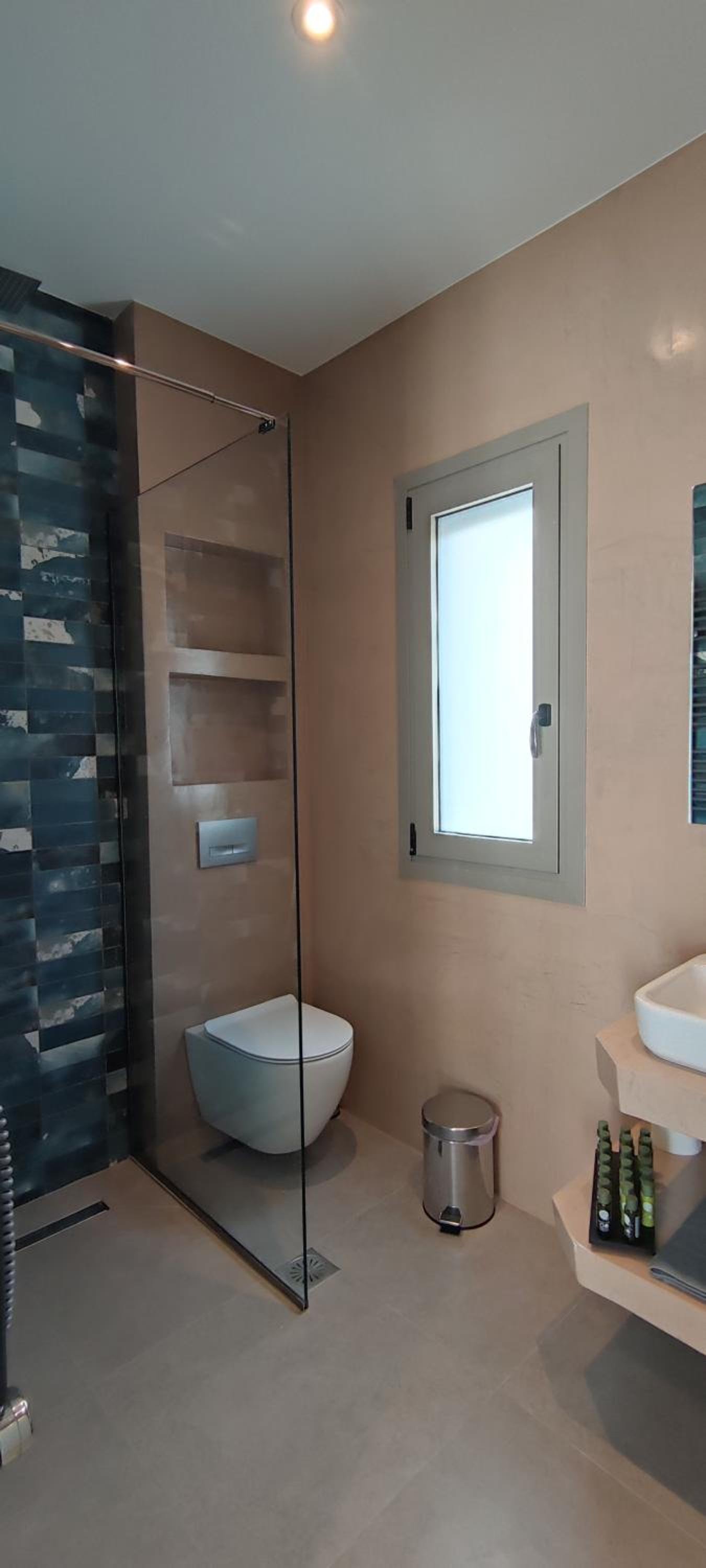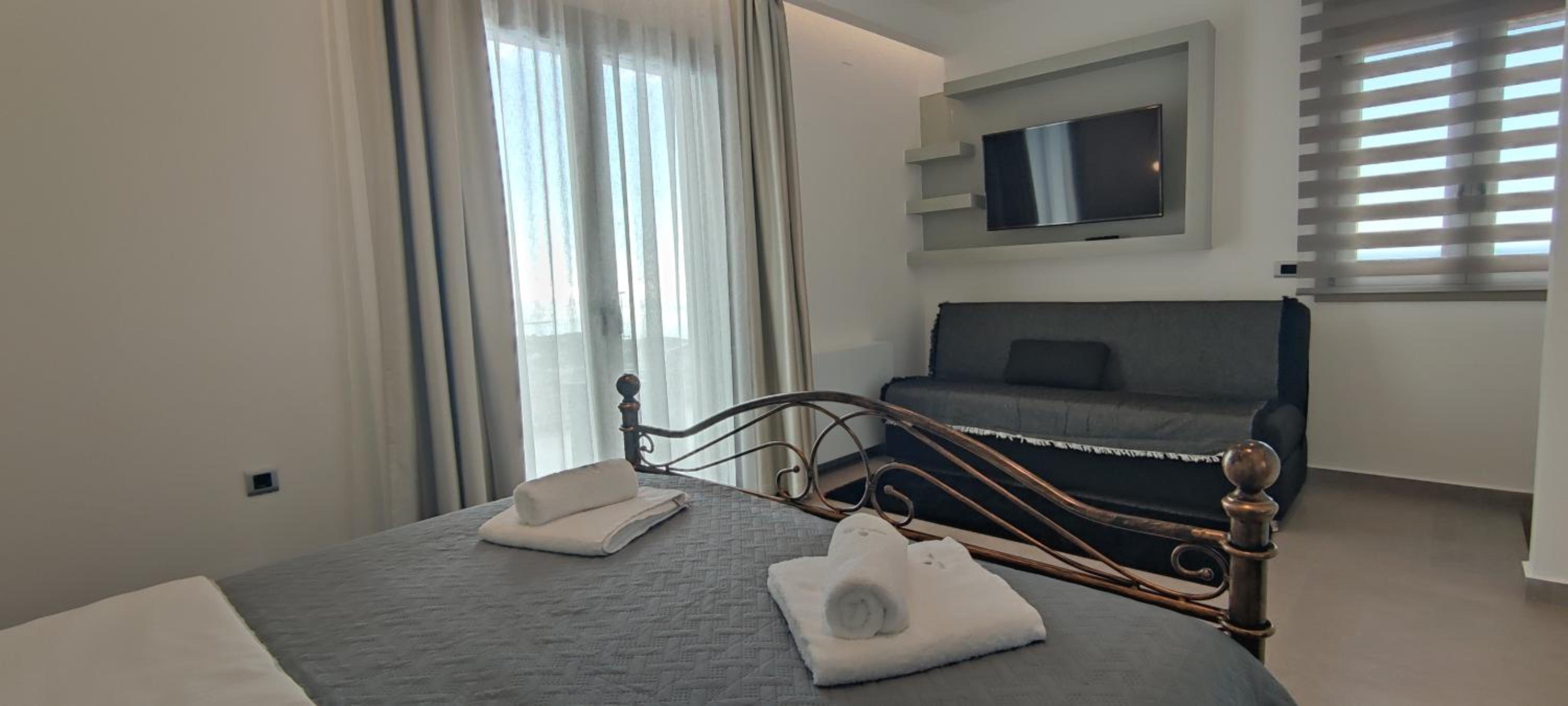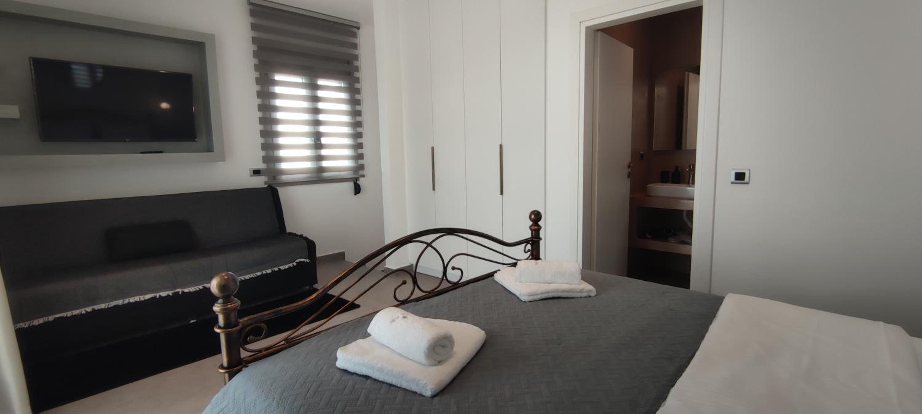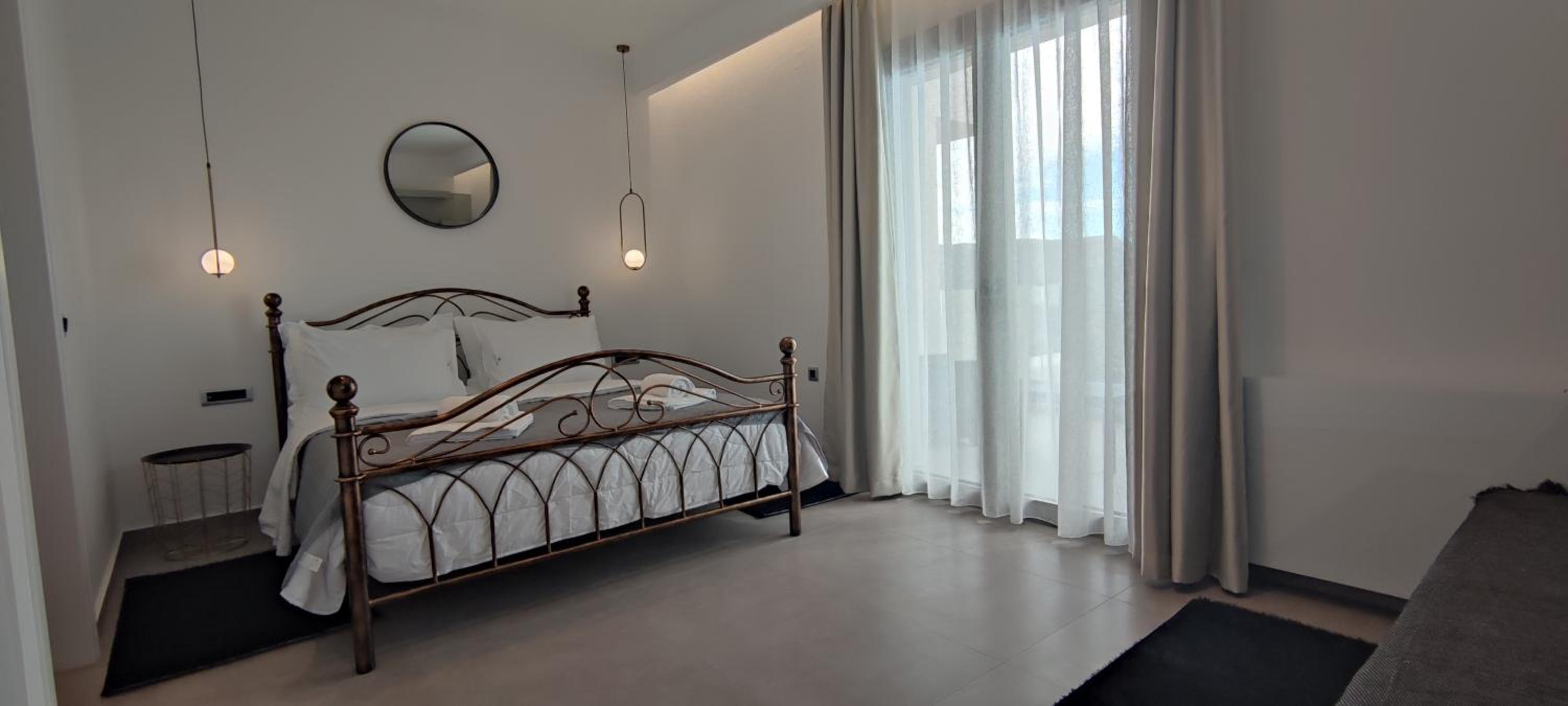 We stayed at the family room. Perfect for a family, plenty of amenities to make you feel like home(dishwasher, washing machine, electric iron, kitchen equipment, etc). Excellent view, very quiet and within 5 min distance by car to several beaches in makry gialos area. Maria the hostess was very welcoming and provide us with all the little details and secrets according to our personal interests! Great experience and very relaxing holidays!