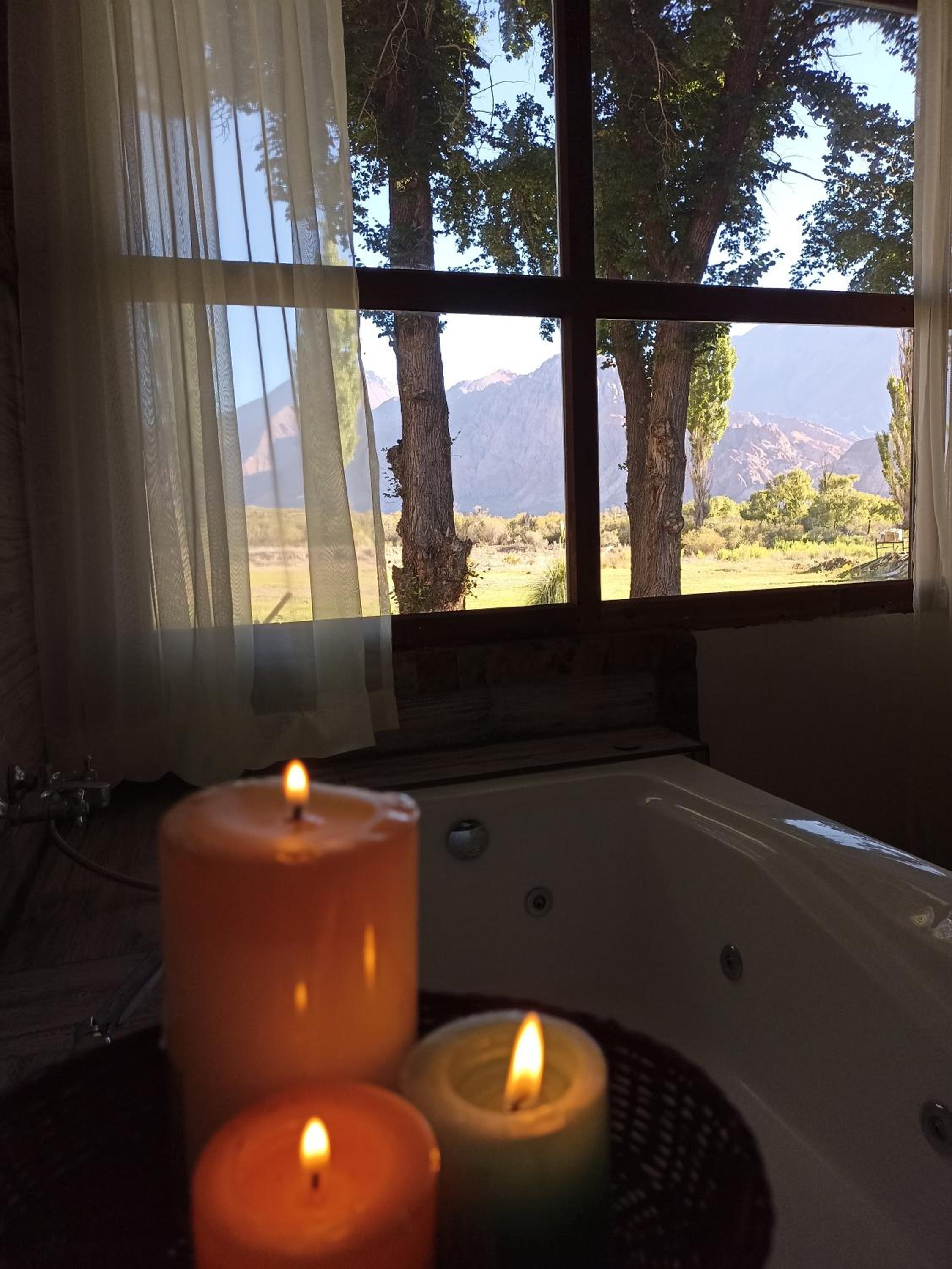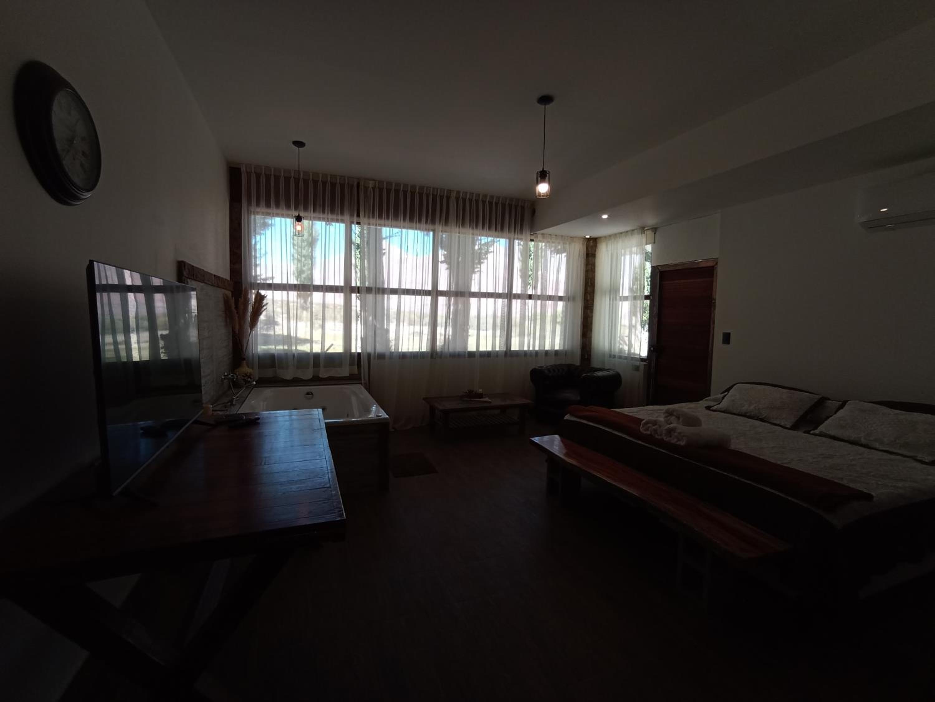 El lugar es sumamente agradable. La atención de Guido y Giuliana fue muy esmerada. El lugar está unos 5 km antes de Uspallata yendo desde Mendoza. Así que tiene un muy lindo paisaje para caminar y disfrutar de una vista panorámica del valle desde el Sur. Las instalaciones tal cual lo que ofrecen. Excelente climatización (fuimos en pleno invierno Uspallata es muy muy fría de noche). El yacuzi funcionó perfectamente. La habitación y la cama son amplísimas. Muy bien los detalles artísticos de decoración en todo el lugar. Tienen un SUM interno con mesa de ping pong, varios tableros de ajedrez y una biblioteca sencilla y desestructurada pero bastante interesante para recreación grupal o individual o en caso de quedarse dentro por mal tiempo. Hay momentos en que la señal de los teléfonos es intermitente en las afueras del complejo. El wifi interno perfecto. El tv es para vincular con tu teléfono y tus apps. El desayuno es tranquilo y variado, no para grandes pretensiones. Fuimos a pasar un momento de descanso e intimidad y fue el lugar y el tiempo correcto.
