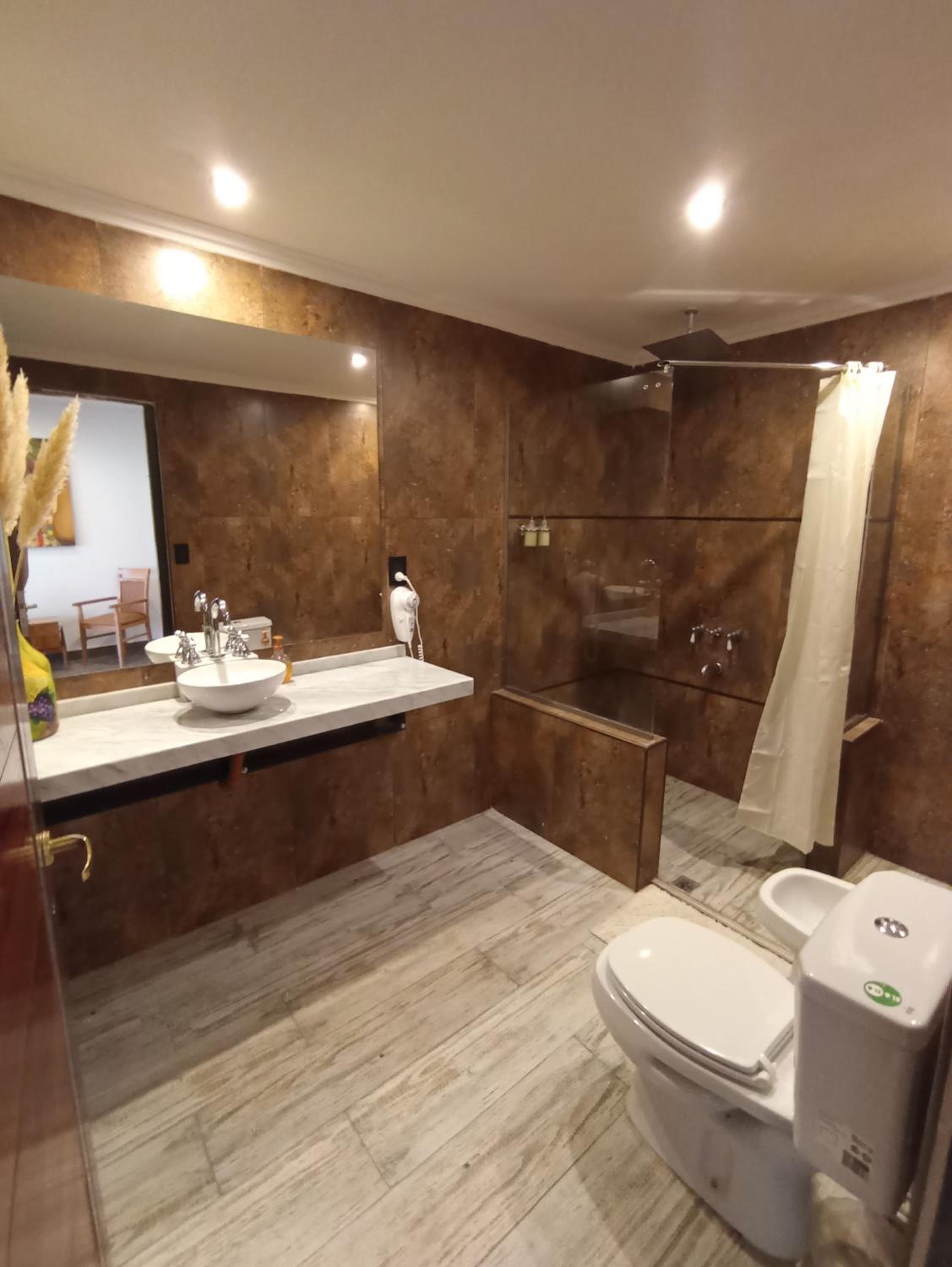La habitación y baño muy amplios, muy aseados, con wifi, con mini refrigerador y un servicio para te/café con todos sus implementos para autoservicio, incluyendo la tetera, lo que se agradece. Guido, el anfitrión muy amable y servicial, además del personal que lo acompaña. "La Parrillada San Cayetano" es espectacular al ingreso de Uspallata, debe ser parada obligatoria al igual que y el café "la Otra Vuelta" con sus exquisitas empanadas, alfajores y vinos, a pocos pasos del supermercado El átomo.