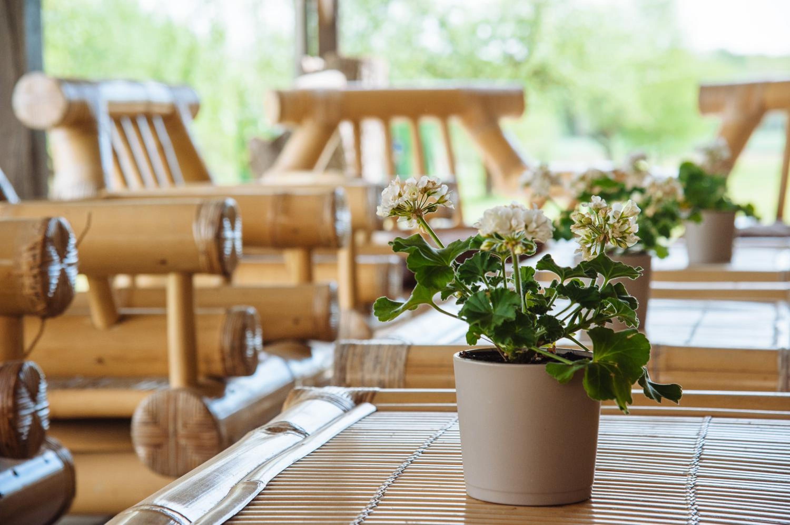 Unwind in our lounge area adorned with elegant bamboo furniture or take a leisurely stroll through our spacious garden with ample seating for all guests.