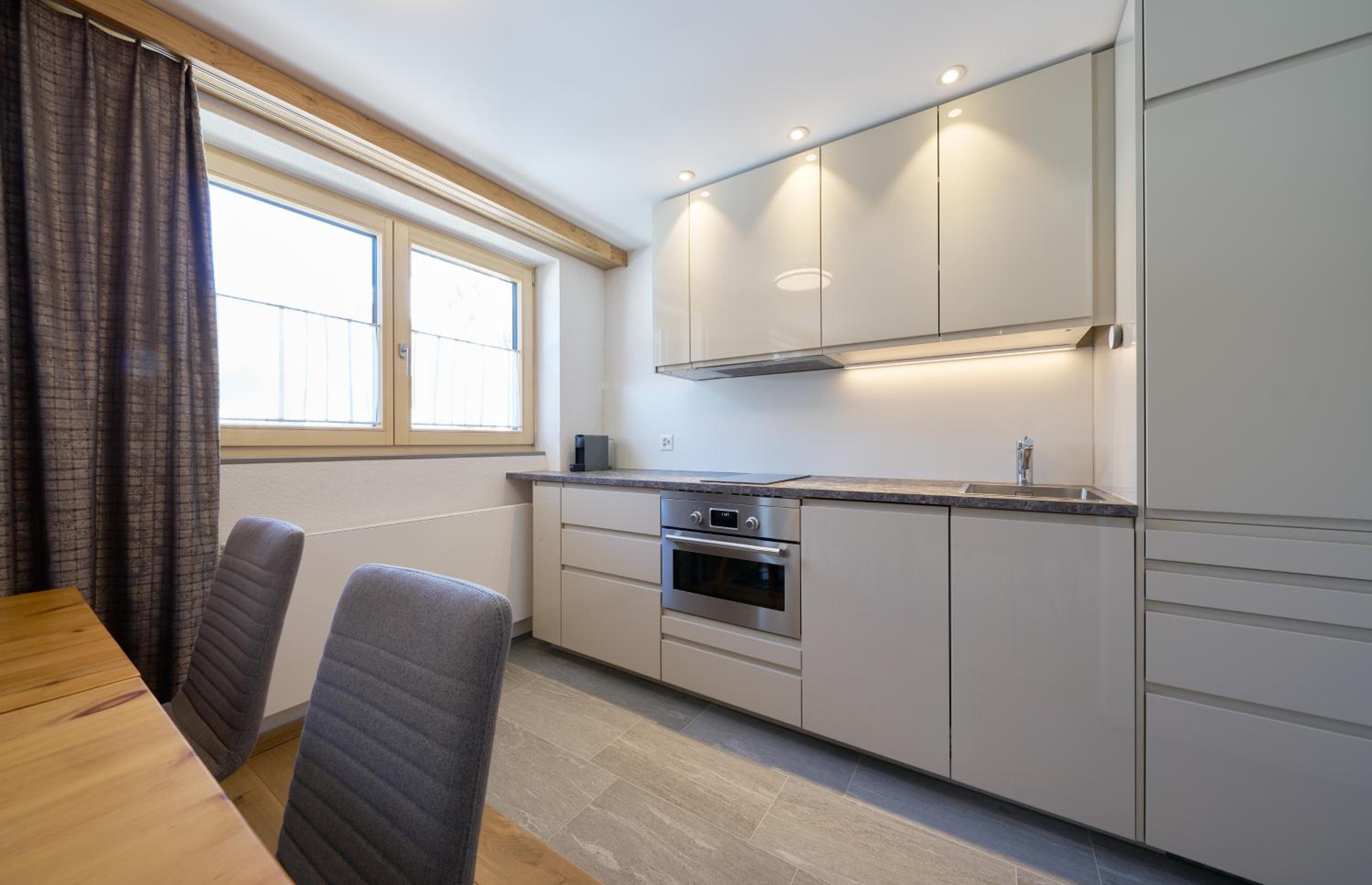 It's so good I almost don't want to tell about it. Recently renovated, smells good, top cleaning service, modern spa with saunas and steam room, superb soundproofing, quiet outside. Bus stop 2mins walk from the hotel takes you to the Bergbahn in 5 minutes. Great service by Silvia. Breakfast was a bit repetitive but there was a good choice of egg dishes, cheese, meat, muesli, nespresso coffee, tea selection - we enjoyed all. There are a few restaurants nearby offering half board menus, we enjoyed them.