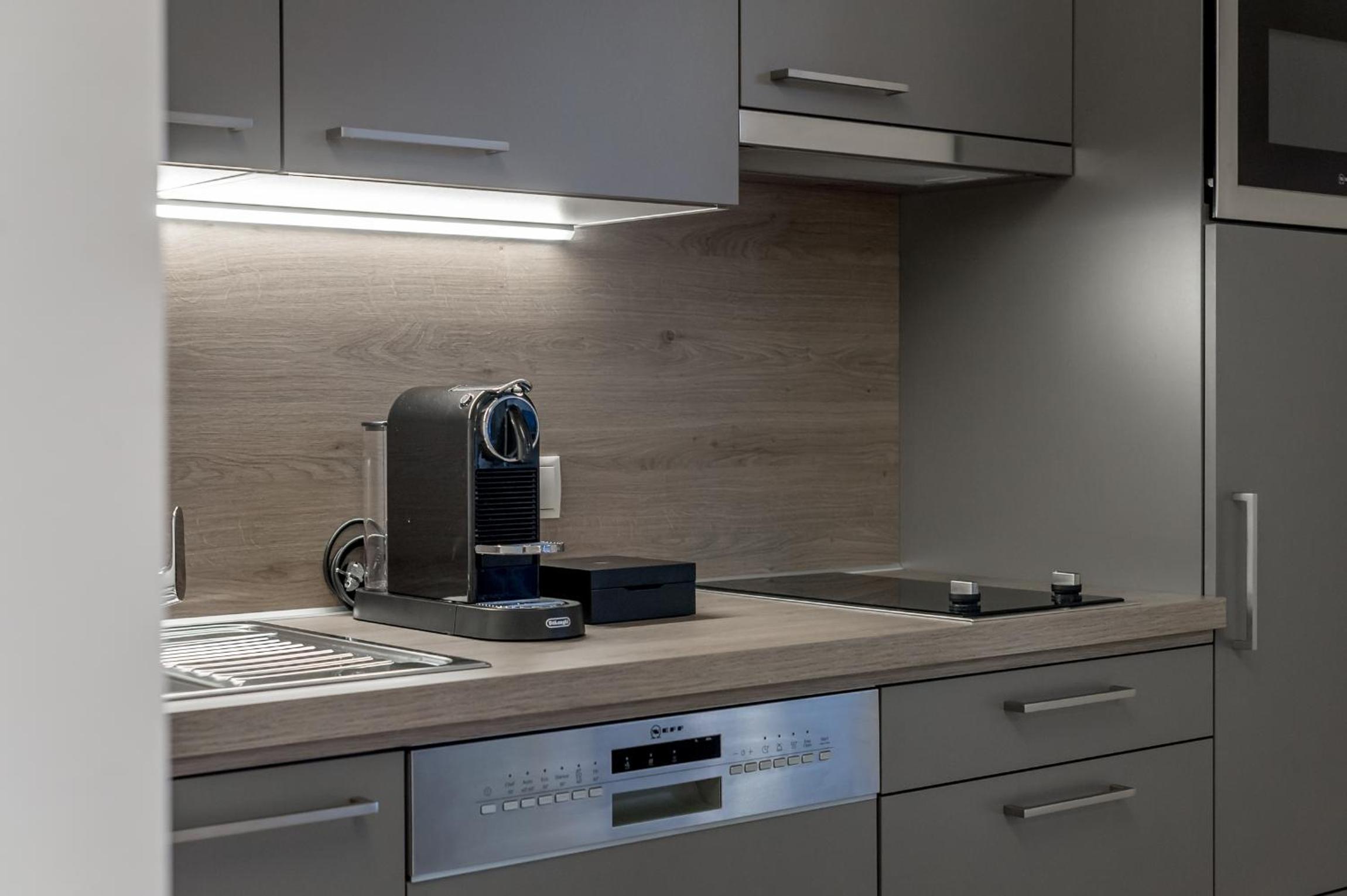 In der Küche fehlt ein Backofen.