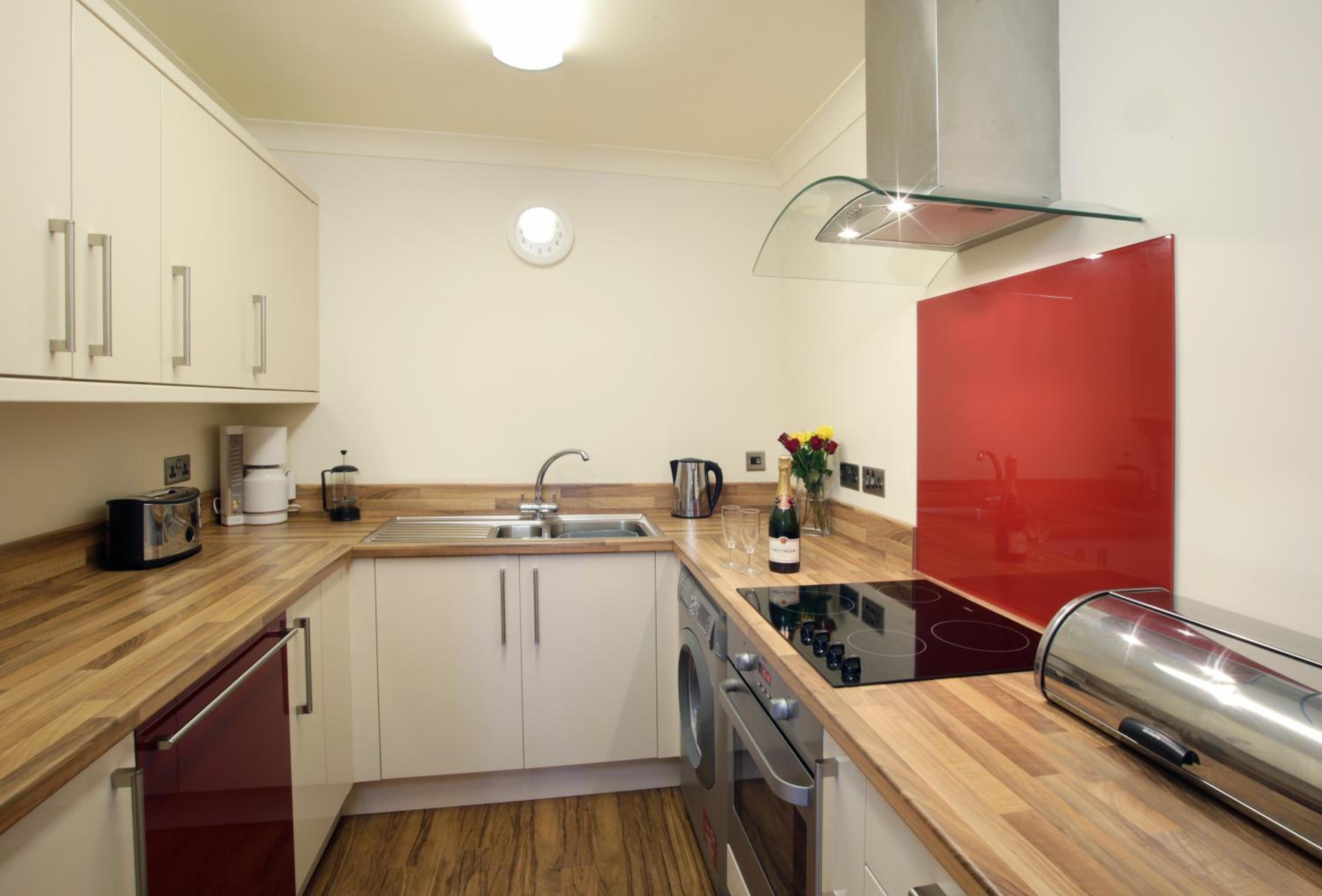 Such a beautiful big apartment..very modern and spacious. 2 downstairs bedrooms both have en-suites..u can access both floors via the lift which was great as my dads in a wheelchair and would’ve struggled with the stairs. Lounge/kitchen diner and another bedroom upstairs also a small toilet. Cupboard under sink in kitchen had all cleaning products ie fairy liquid,washing up cloths. Hand soaps in the toilet. Plenty of plates,cups etc for everyone. Lovely views from the patio windows in the lounge too. It really is beautiful. Sarah is lovely too and very accommodating. We would definitely return to these apartments.