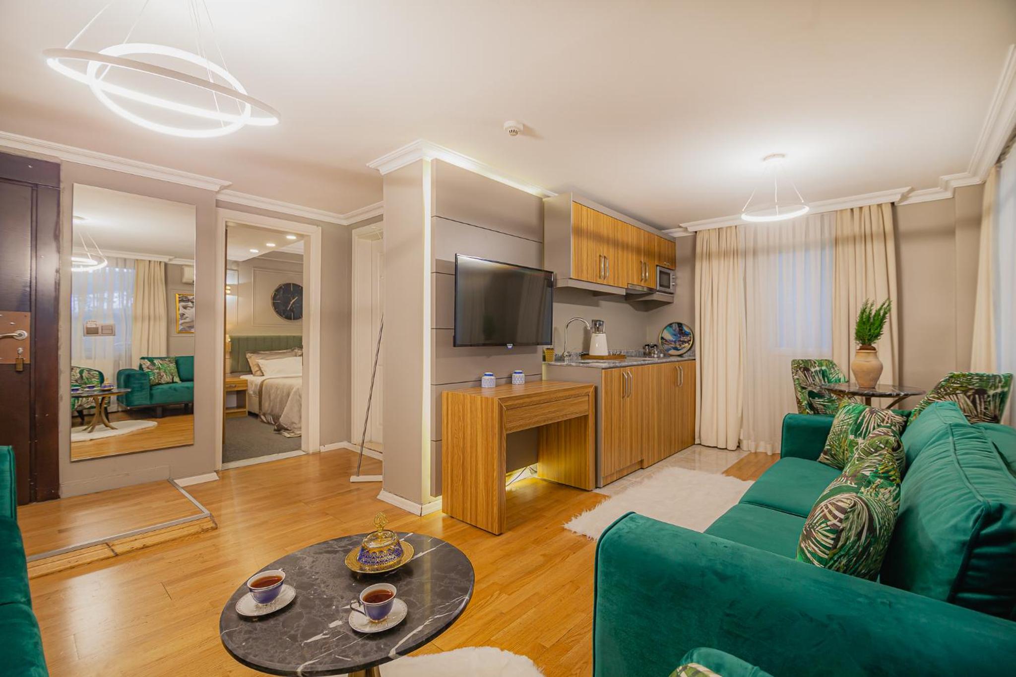 La Palace Exclusive Design offers a luxurious stay in Istanbul with its beautiful garden views and serene atmosphere.