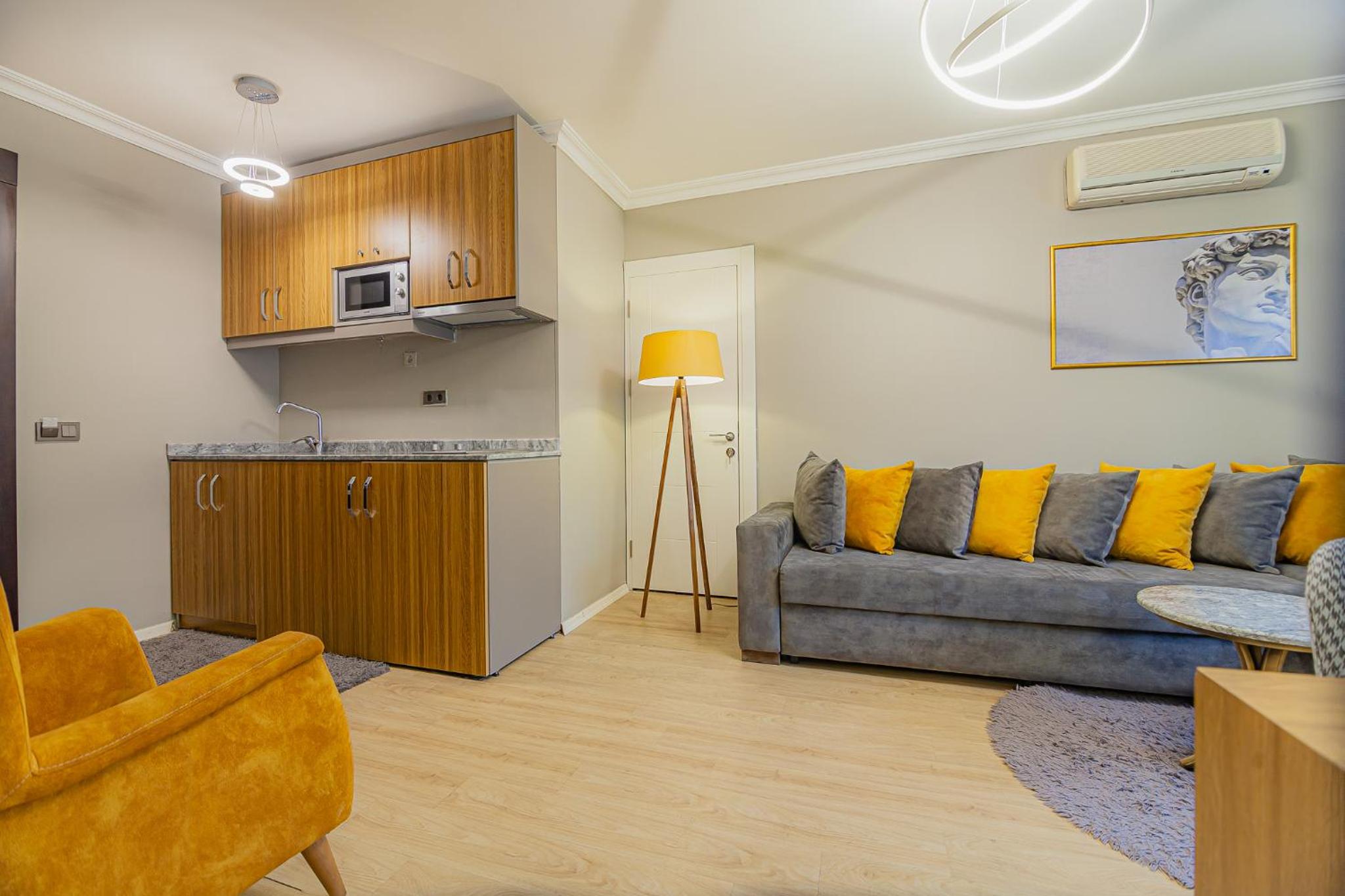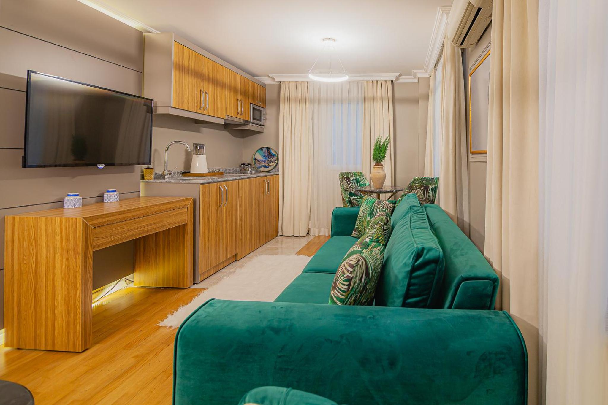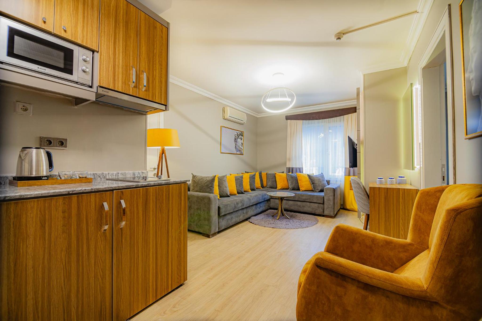 The reception staff and the owner were very nice and friendly. They offered us Turkish tea and coffee. They responded to complaints promptly and efficiently. Functional Kitchen; stayed for 24 nights and cooked everyday. Hotel is just opposite metro bus stop and Trump AVM mall. Location is superb.