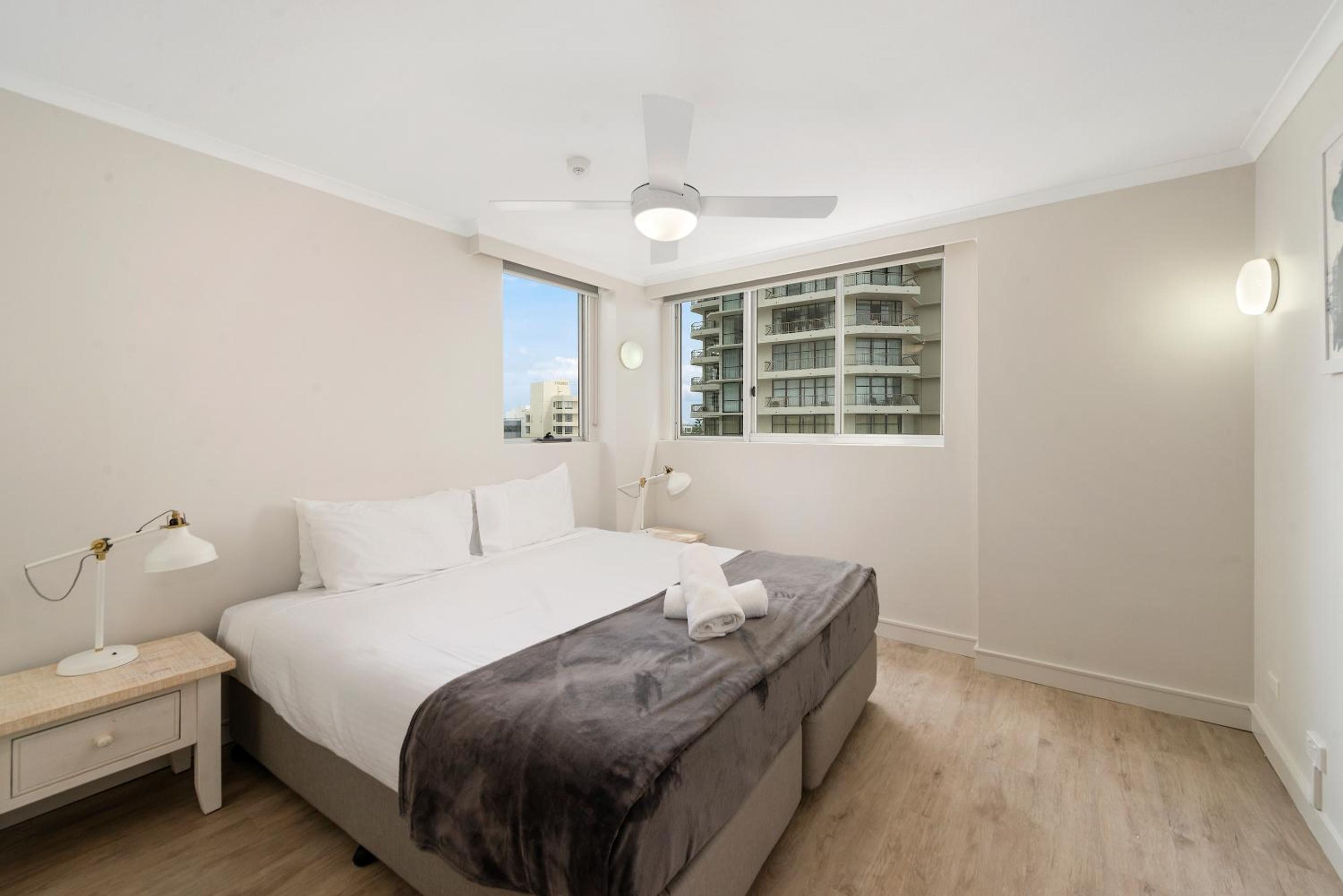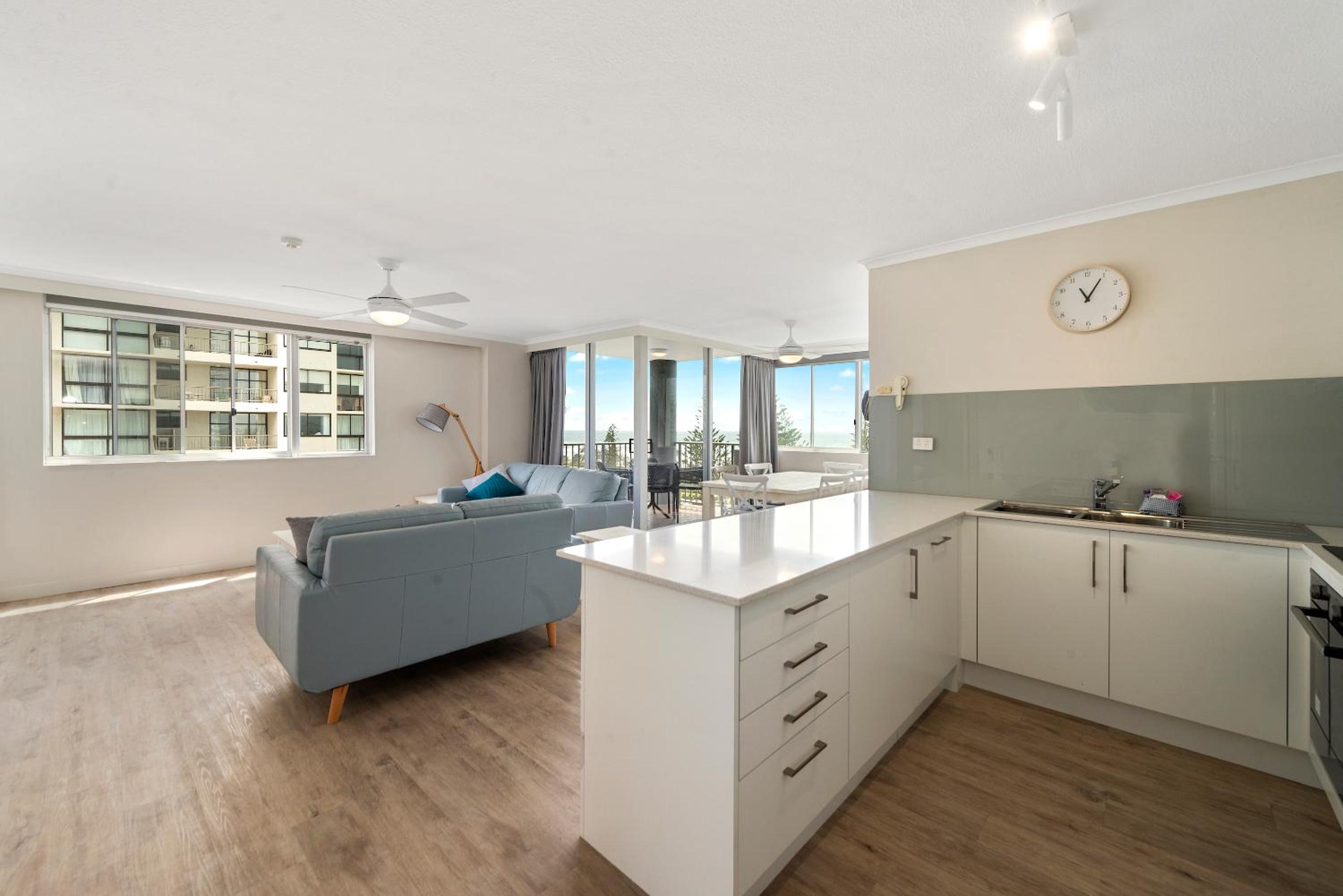 We stayed in a refurbished apartment on level 10. Great to sit on the balcony and look out to the beach. Very spacious. Very warm pool.