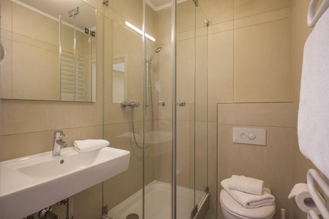 Clean, all you need in an appartment, well equiped kitchen, comfy beds, all kinds of facilities (skiroom, table tennis, biliard), very nice and kind staff