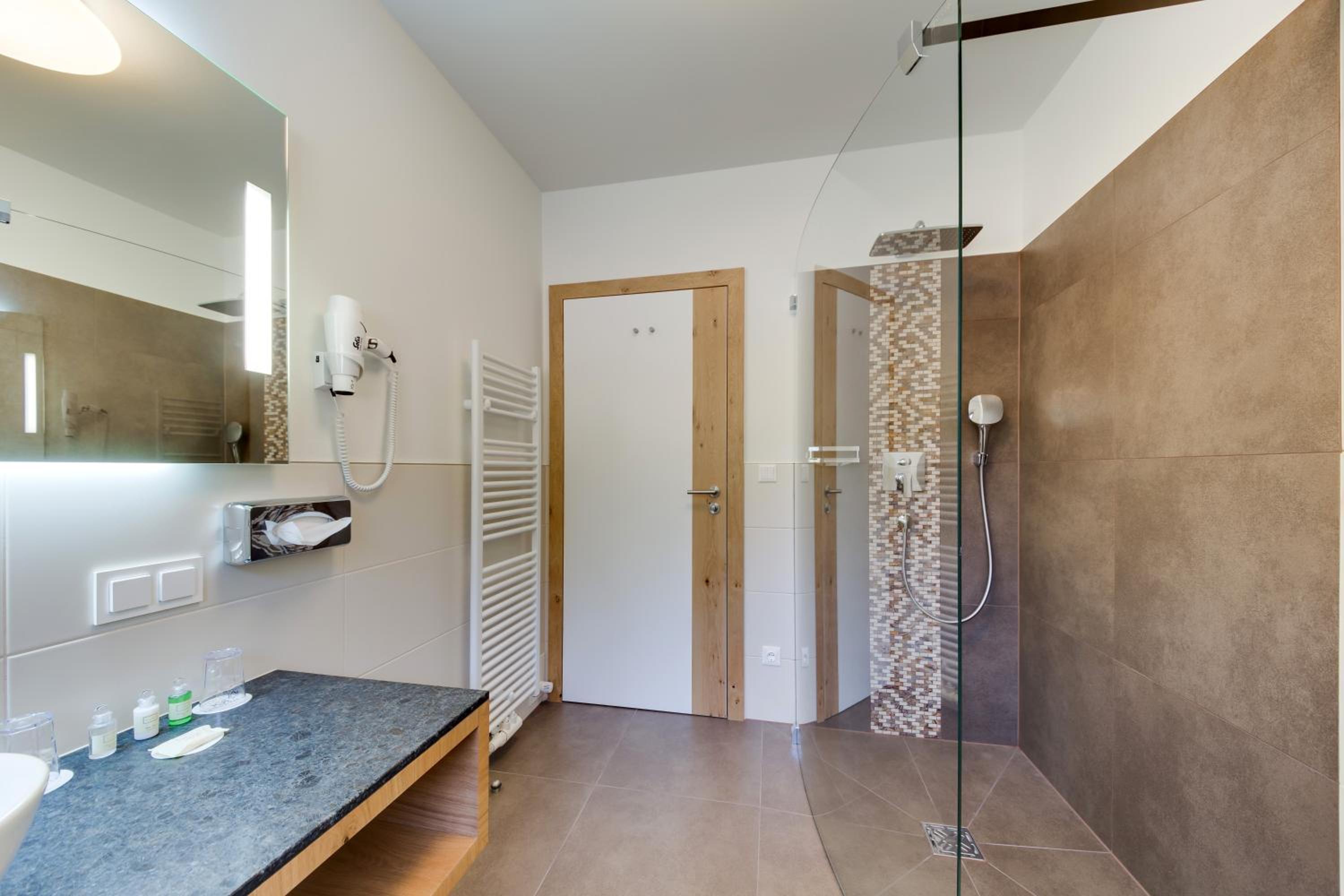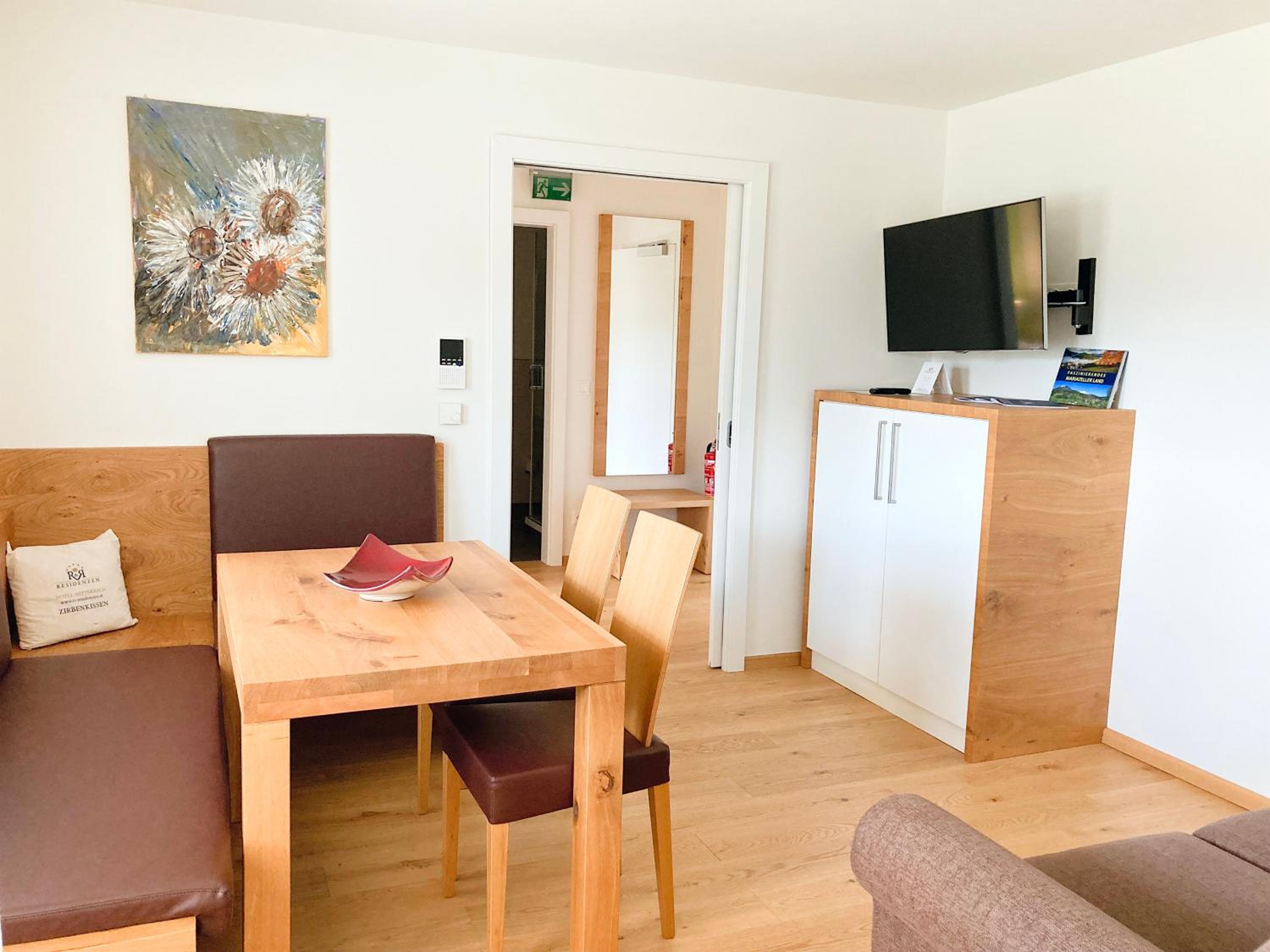Indulge in comfort with our well-appointed apartments featuring kitchens, seating areas, and some with terraces. Unwind in our private spa offering a sauna, infrared cabin, and a panorama bathtub.