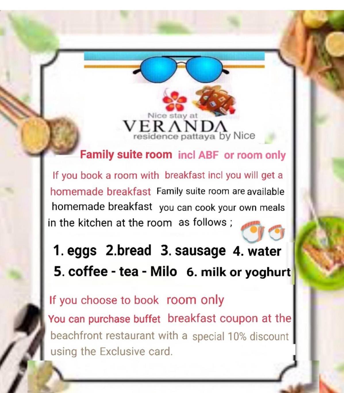 I ti veranda hotel not to veranda residence , veranda hotel has real receptionist , very nice people , at veranda residence you will be lucky to find a part time security guard that don’t understanding English , don’t be deceive by pictures and gave reviews , check low reviews first from real guests . By the way “free Breakfast means uncool eggs on fridge(10 bath each) some sausage links , uncooked , and instant coffee , you can boil own water .