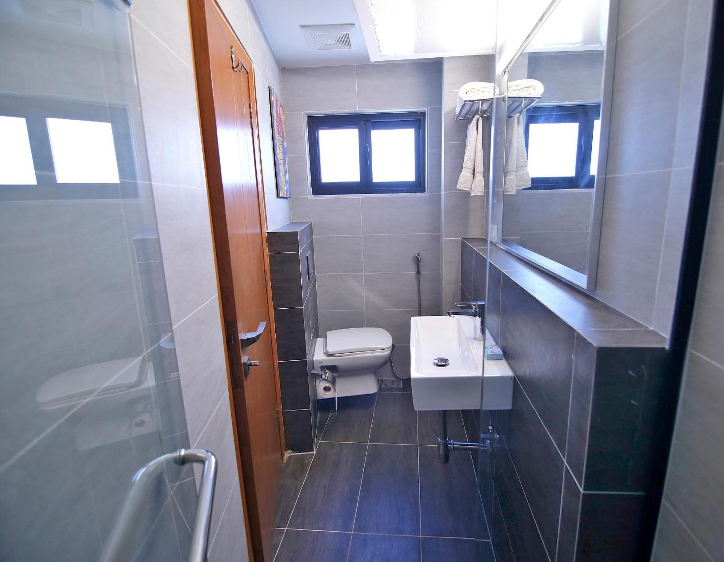 Walls were dirty with stains and not cleaned properly. Wc were not comfortable to sit on with muslim shower issues. They also don’t have a running kitchen.
