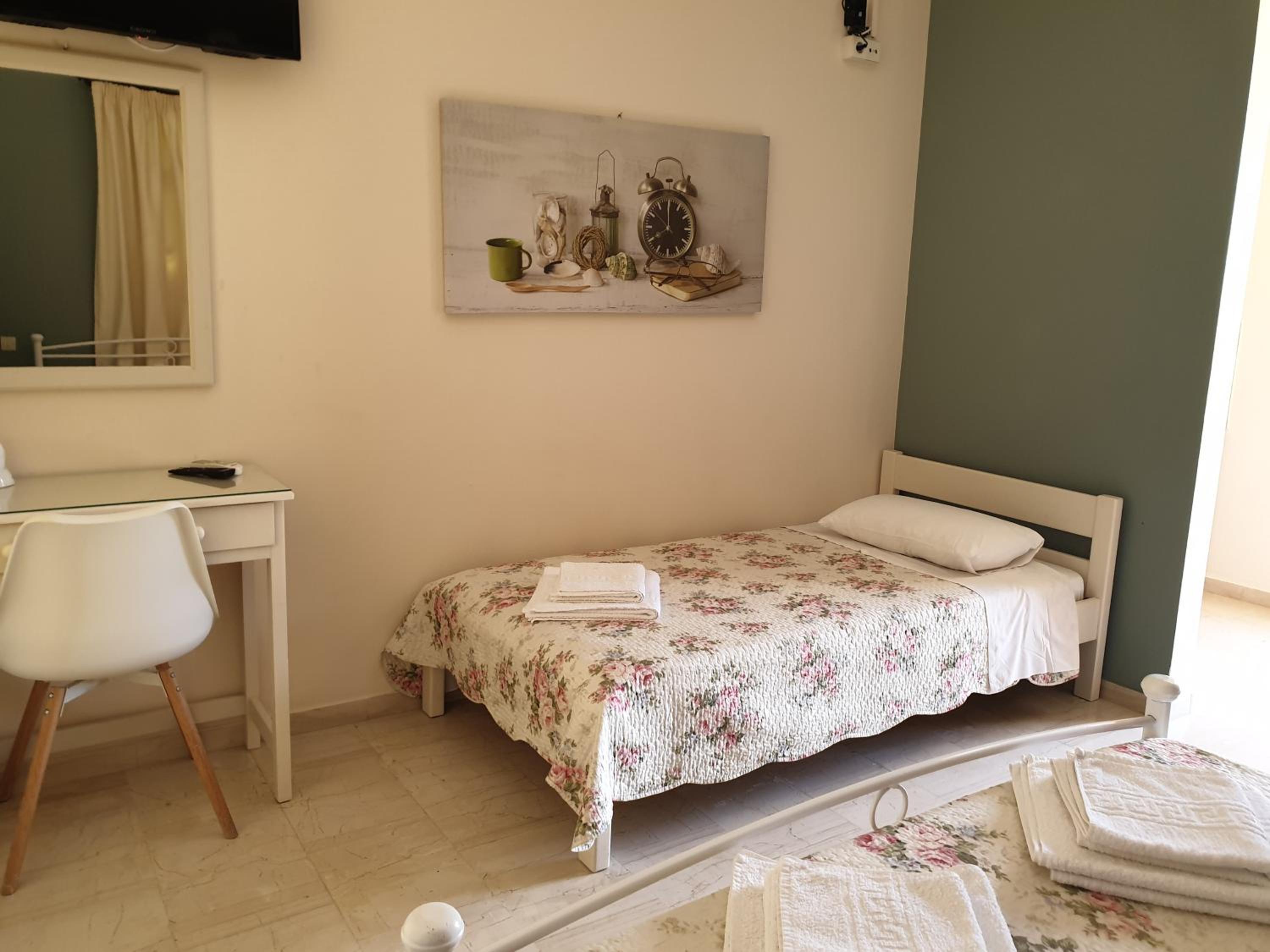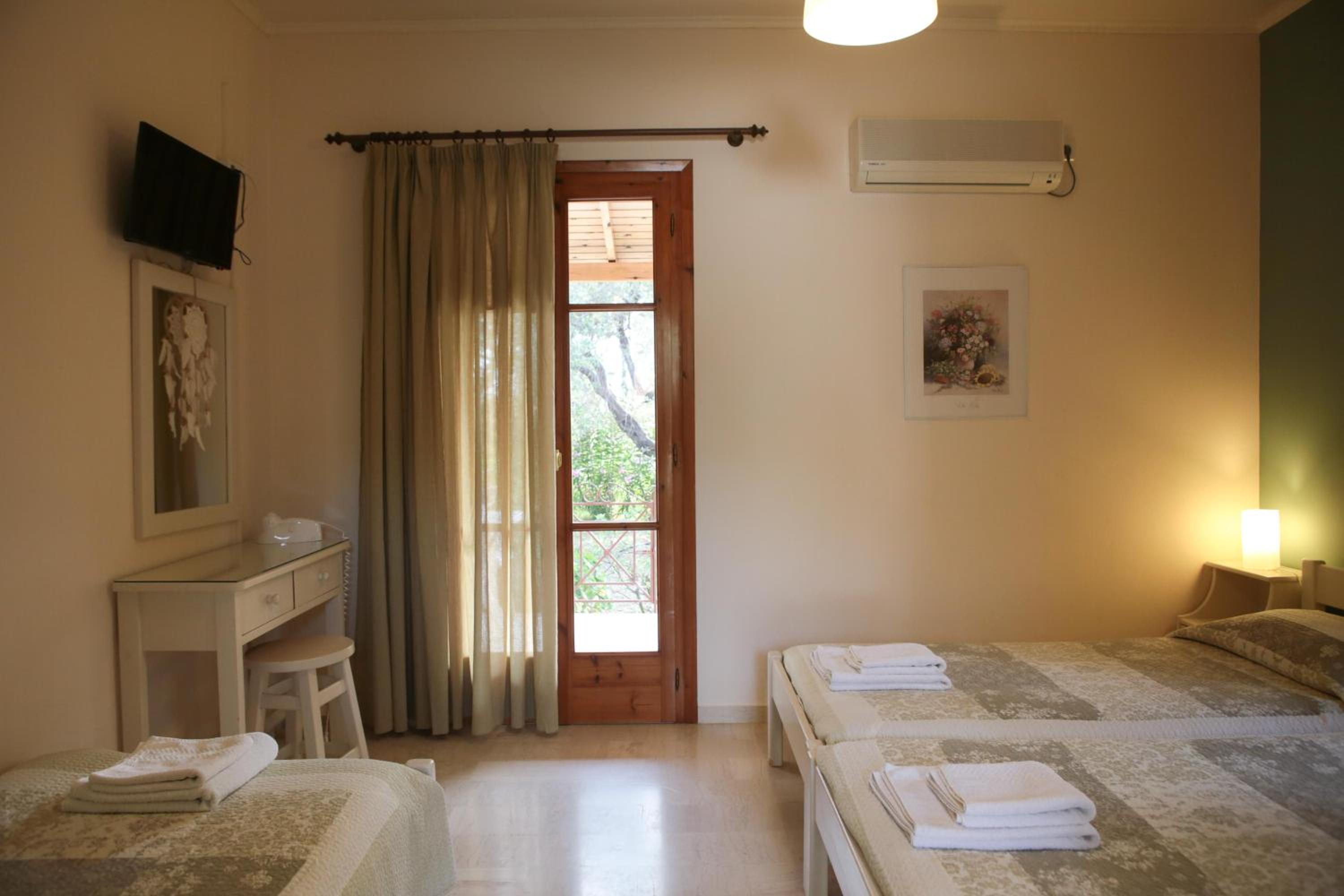 The accommodation is 5 minutes drive from the airport (you can hear the planes flying by but it’s not an issue for night sleeping). It is also located near Lassi where you can find lots of taverns and shops. Stella and her husband are definitely very warm and friendly hosts. You can see they really care about their customers and strive to make you feel at home and accomodate you in their best way possible! I highly suggest to book the breakfast, it varies every single day, everything is fresh and homemade and it’s very tasty too.