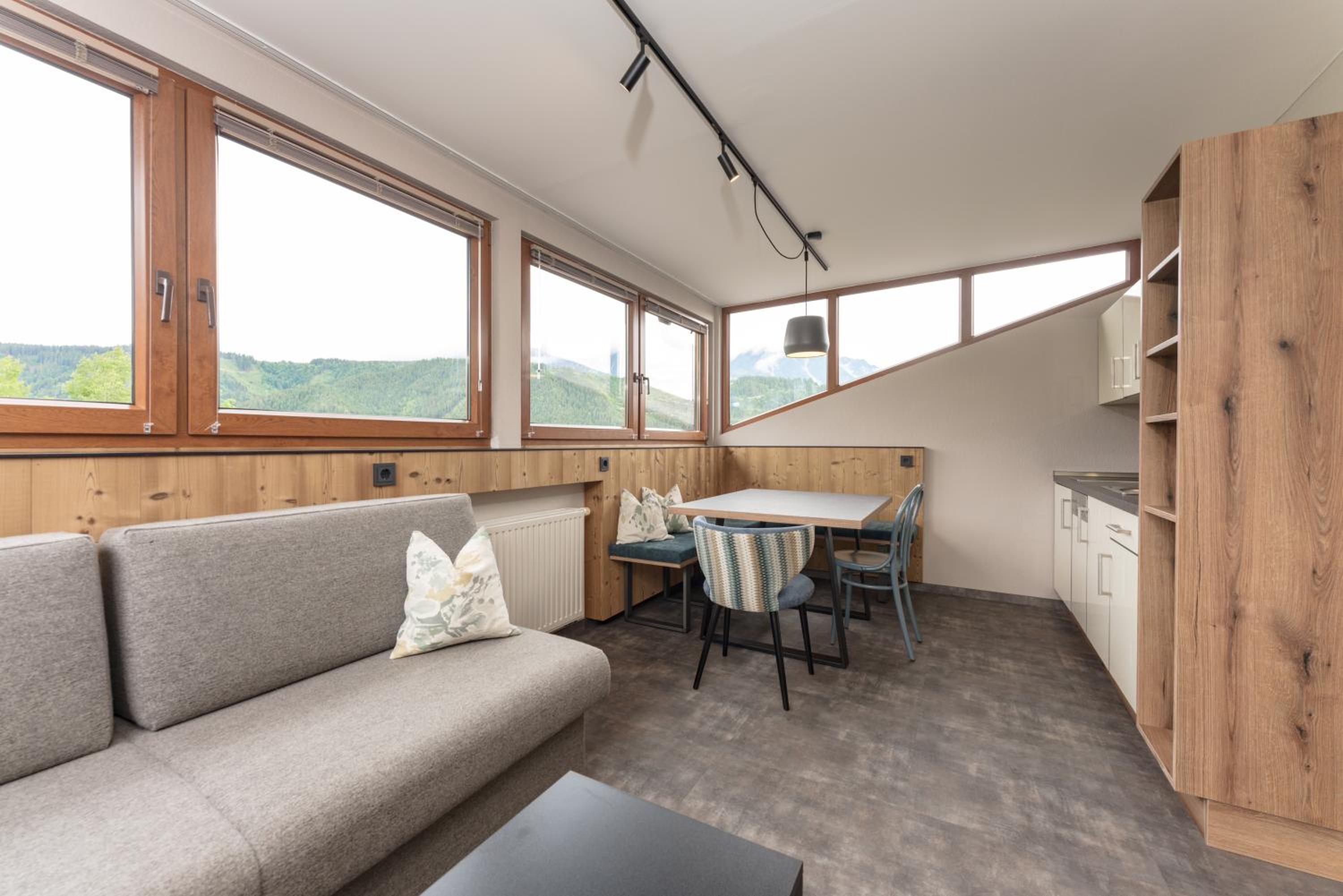 The location and views were beatiful. Our rooms were very nice, clean and it still smelled new when you entered the apartmen. Also whole hotel was beatiful and new. No complains here, we had a big apartmen with 2 bathrooms for a good price. Big bonus is sommer card, we also chose this accomodation because of it, you have a lot of atractions and cable cars for free in the region, also for Dachstein which was great.
