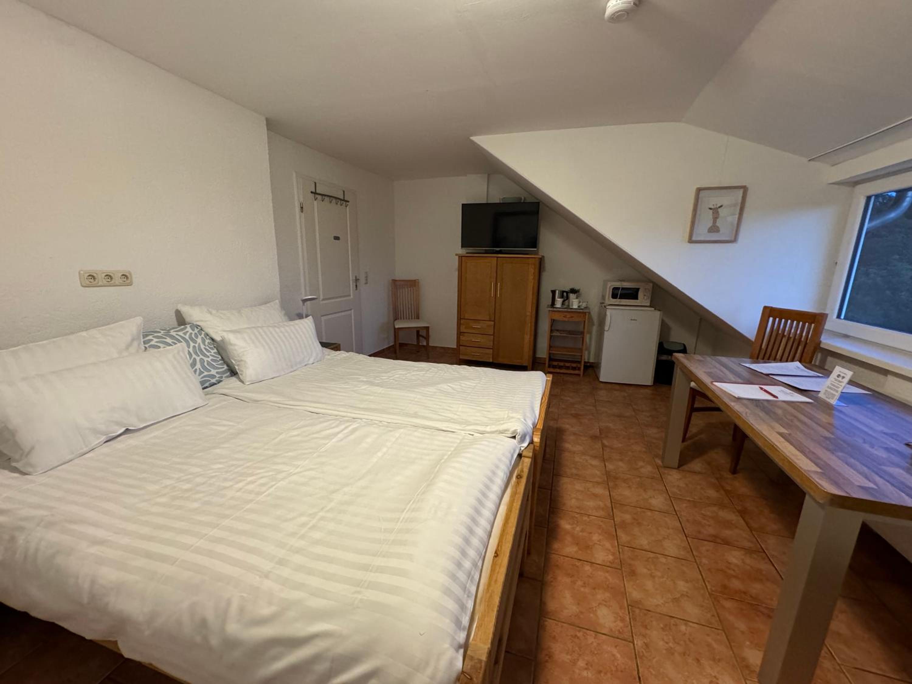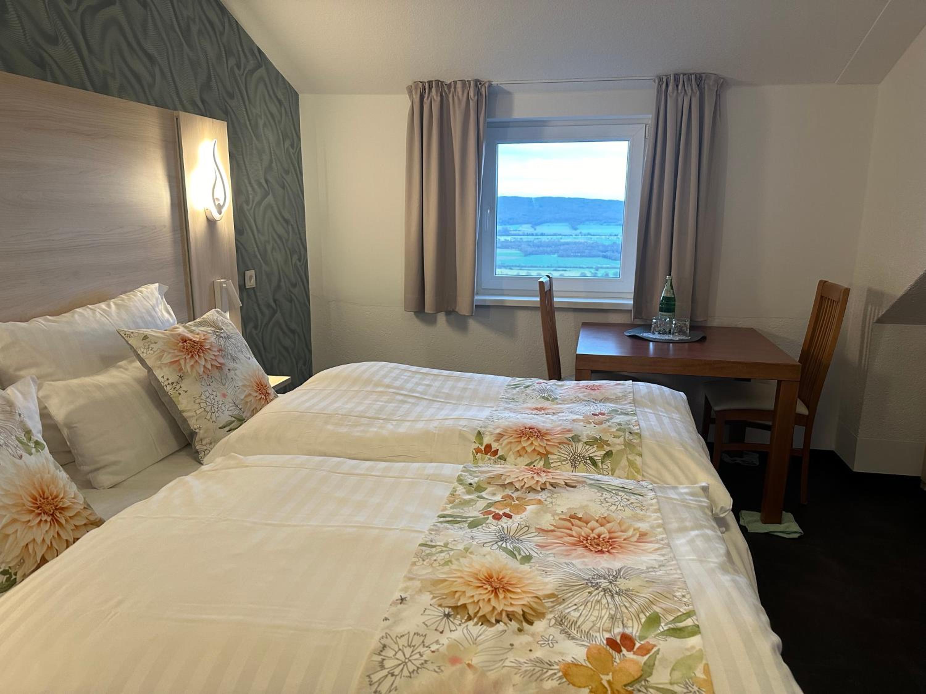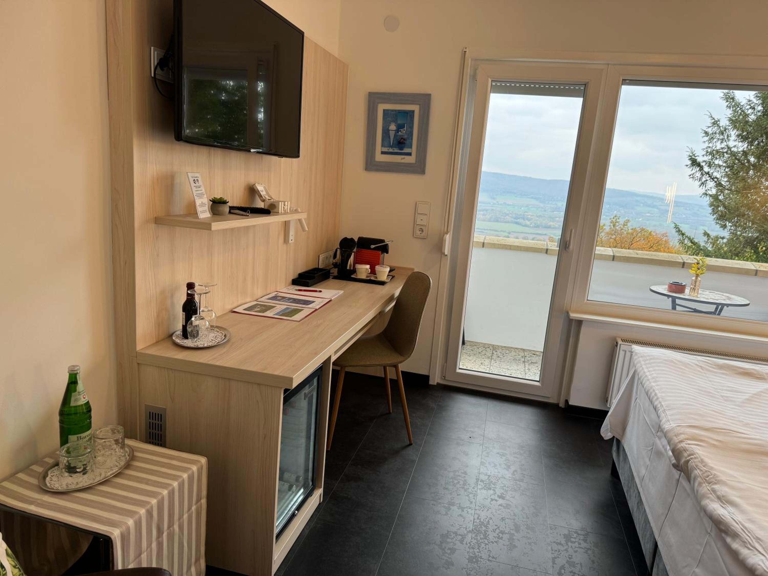 Absolut sympathischer Hotelier, der sein Haus und Business liebt. Das spürt man jeden Moment. Tolle Zimmer und Einmalige Lage mit einer schönen Terrasse, auf der man den Abend mit Blick auf das Weserbergland ausklingen lassen kann. Fahrräder waren auch sicher verschlossen mit Lademöglichkeit.