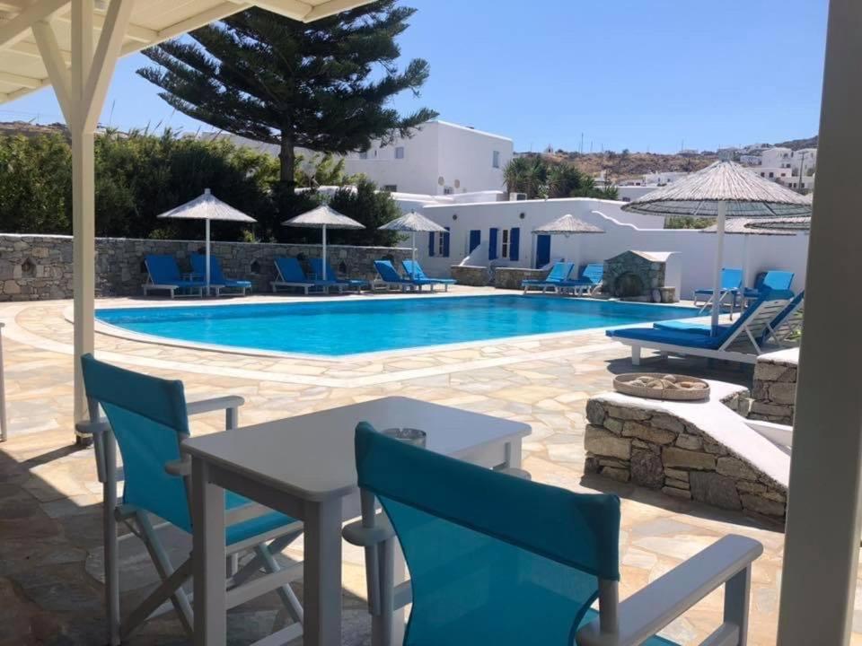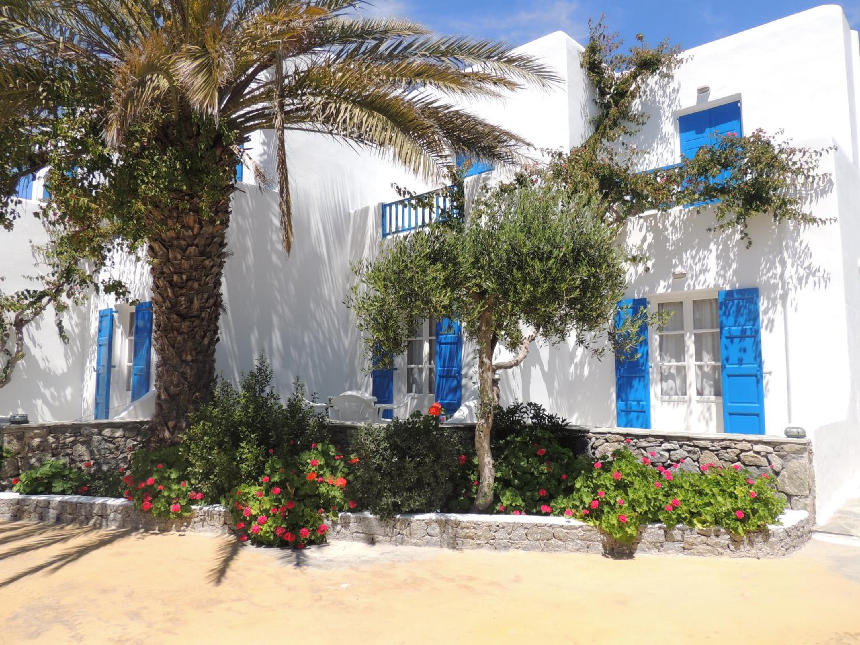 Veľmi milý a ochotný personál. Čistota. 200 metrov jedna pláž. Na druhu stranu 200 metrov druhá pláž. Obchod hneď vedľa. Kľudné miesto. Zábava v meste Mykonos kam chodí kazdu pol hodinu autobus (zastávka asi 150 metrov). Bazén aj s bazénovými uterakmi.