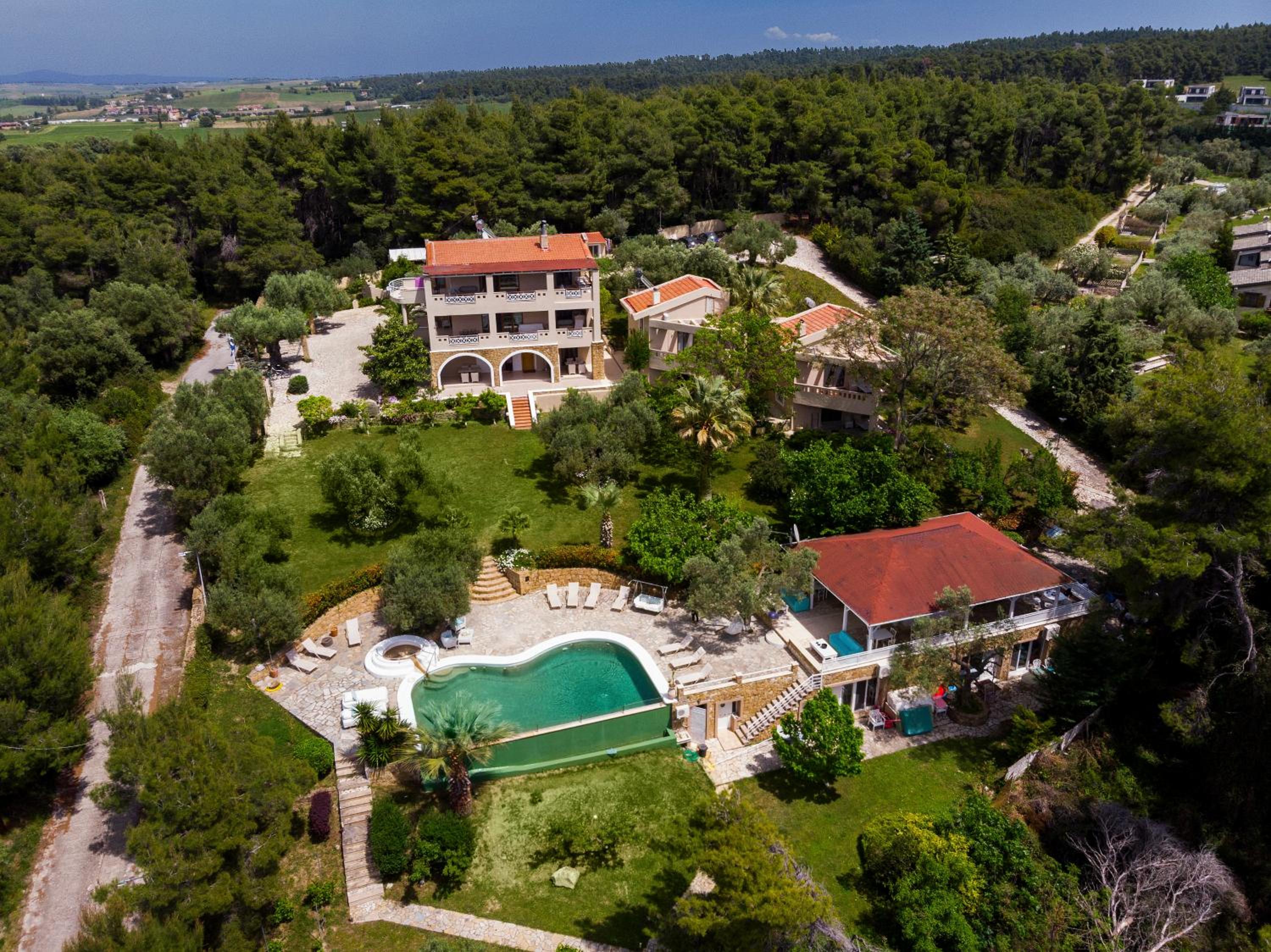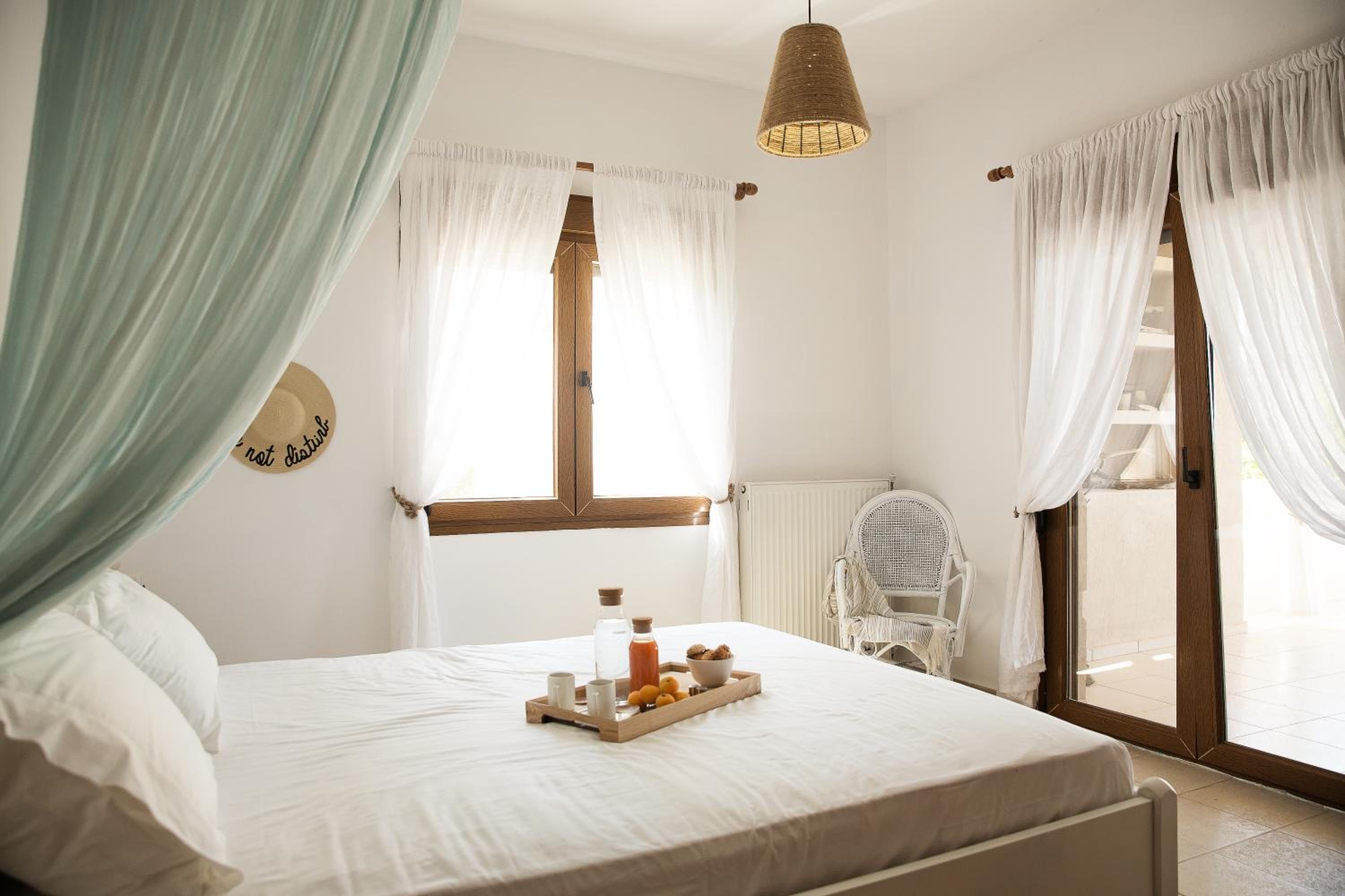 Sanidiamonds offers luxurious units with modern amenities and breathtaking views of Mount Olympus, the pine forest, and Sani Bay. Each unit is uniquely decorated, equipped with open-plan kitchens, and features direct access to furnished patios, perfect for enjoying the sunset.