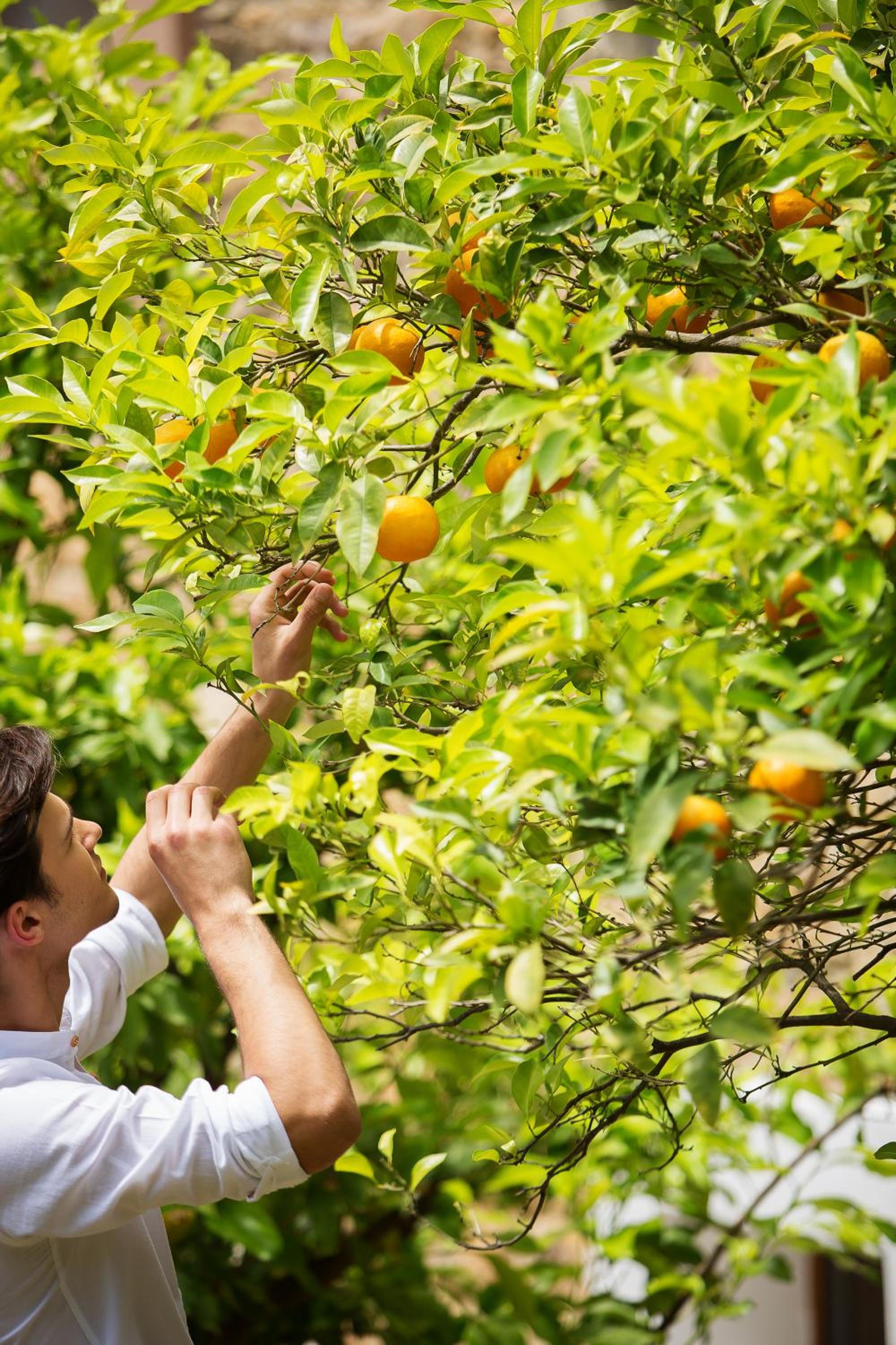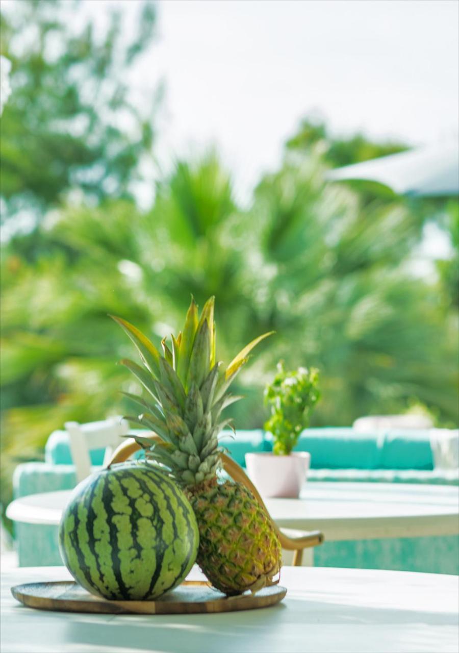 Guests can unwind in the freshwater pool surrounded by a well-maintained garden filled with palm, olive, and fruit trees. The pool area also includes sun benches for soaking up the sun and an elegant pool bar serving refreshing drinks in a comfortable setting.