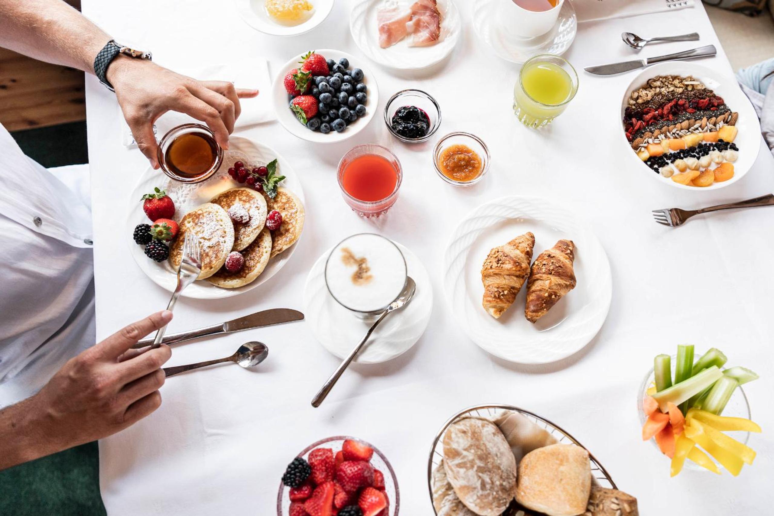 Frühstück top, Wellnessbereich und Pool mega.