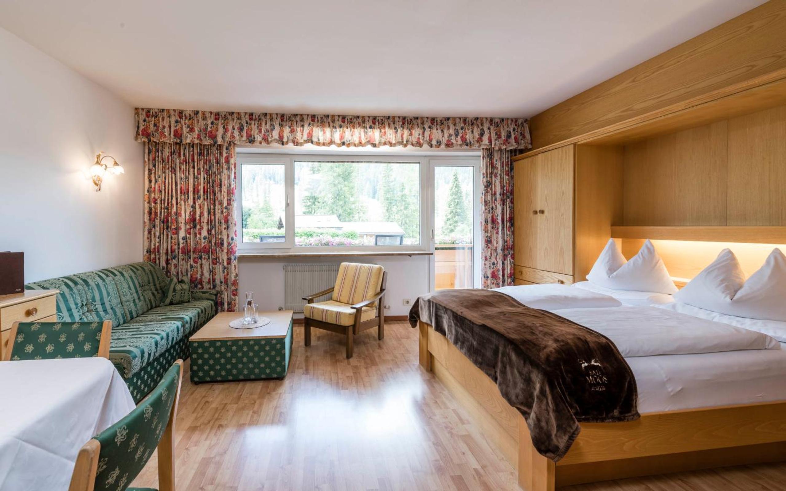 Alpine-Style Rooms: Experience the charm of spacious Alpine-style rooms, equipped with modern amenities and stunning views of the Dolomite Mountains from select rooms.