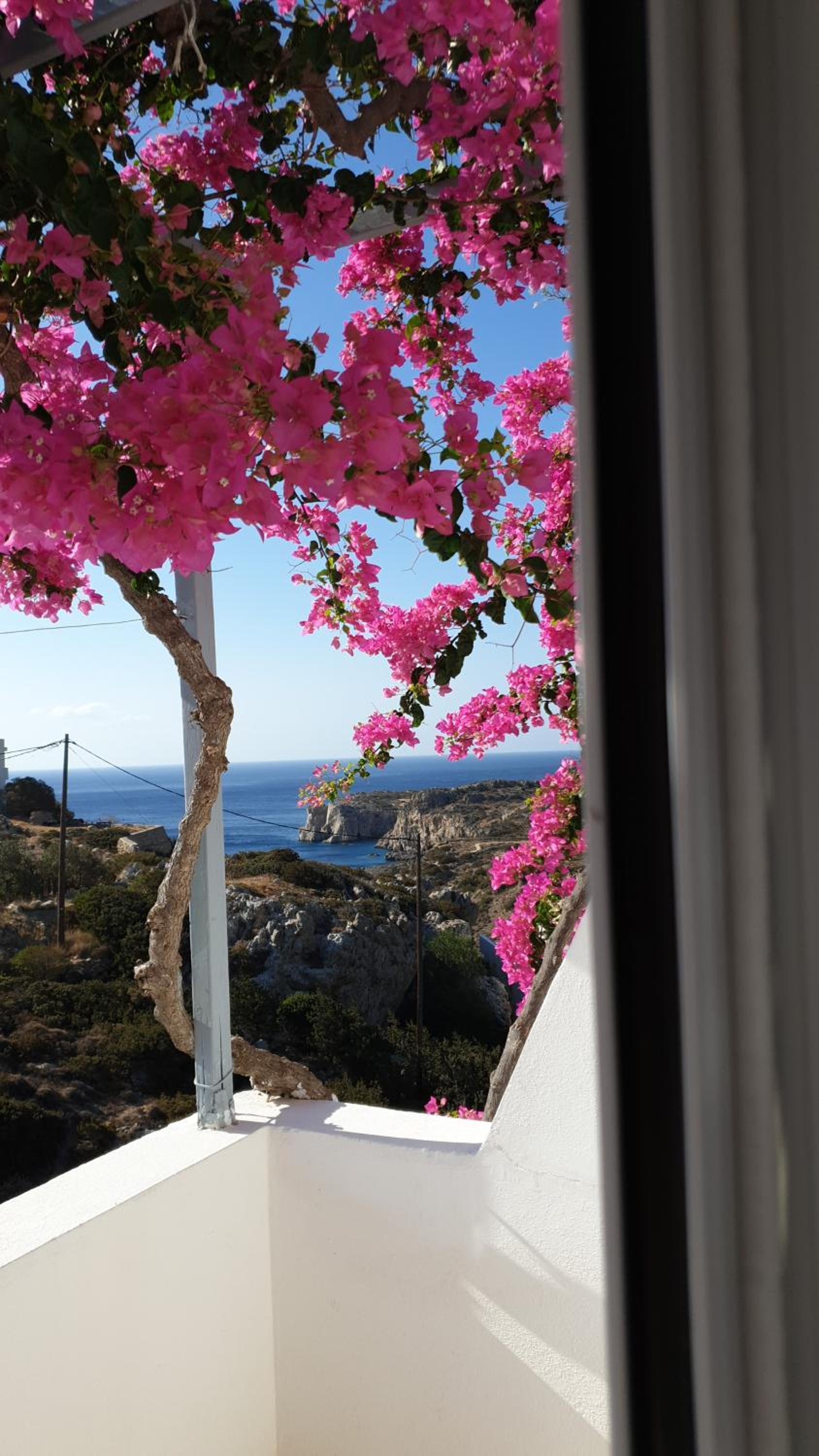 Sehr nette Unterkunft, man fühlt sich gleich wohl. Sehr schöne Aussicht aufs Meer, aus unserem Zimmer nur seitlich. Eigentlich kann man auch ohne Auto hier ein paar Tage verbringen. Wir sind mit dem Taxi für 17 Euro vom Hafen zum Studio Nina gefahren. Der erste Strand, ein paar Minuten weiter zu Fuß, ist mit Felsen und Steinen. Aber in ca. 20min , über einen herrlichen Panoramaweg , landet man an den schönsten Strand der Insel, Amoopi, mit goldenem Sand und klarem türkis Wasser. Die Bushaltestelle ist auch nur 7min zu Fuß entfernt. Nur hier und da etwas steiler Weg, aber leicht zu bewältigen. Allerdings fahren die Busse nicht so oft. Einen zuverlässigen Fahrplan bekommt man am Busbahnhof in Pigadia, aber auch im Hotel.