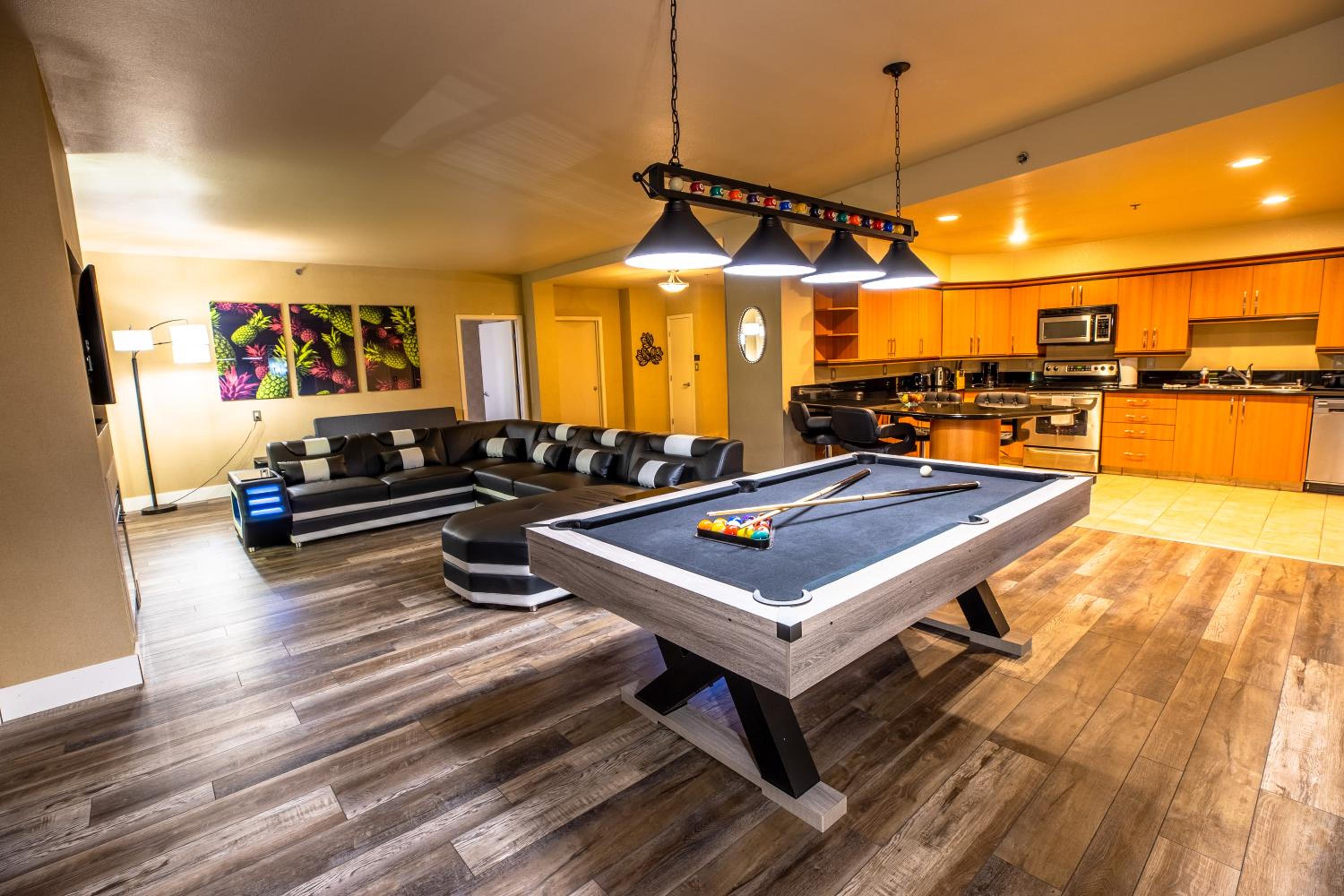 Location, spaciousness, cleanliness, staff, parking, balcony, pool table.
