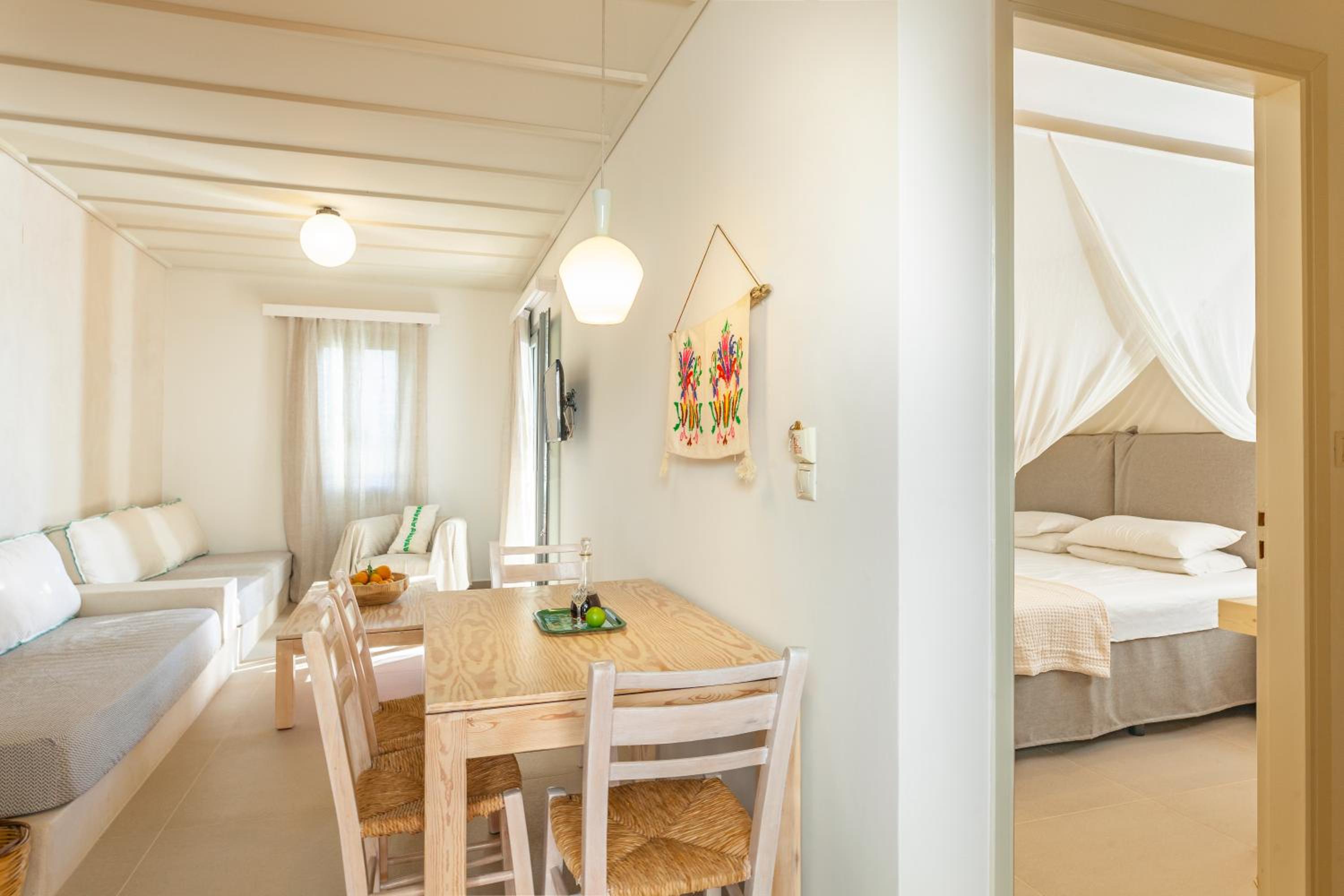The location was perfect for our short stay in Koutouloufari. The spacious and well equipped apartment exceeded expectations. The evening meal was delicious. The staff were welcoming, friendly and helpful.