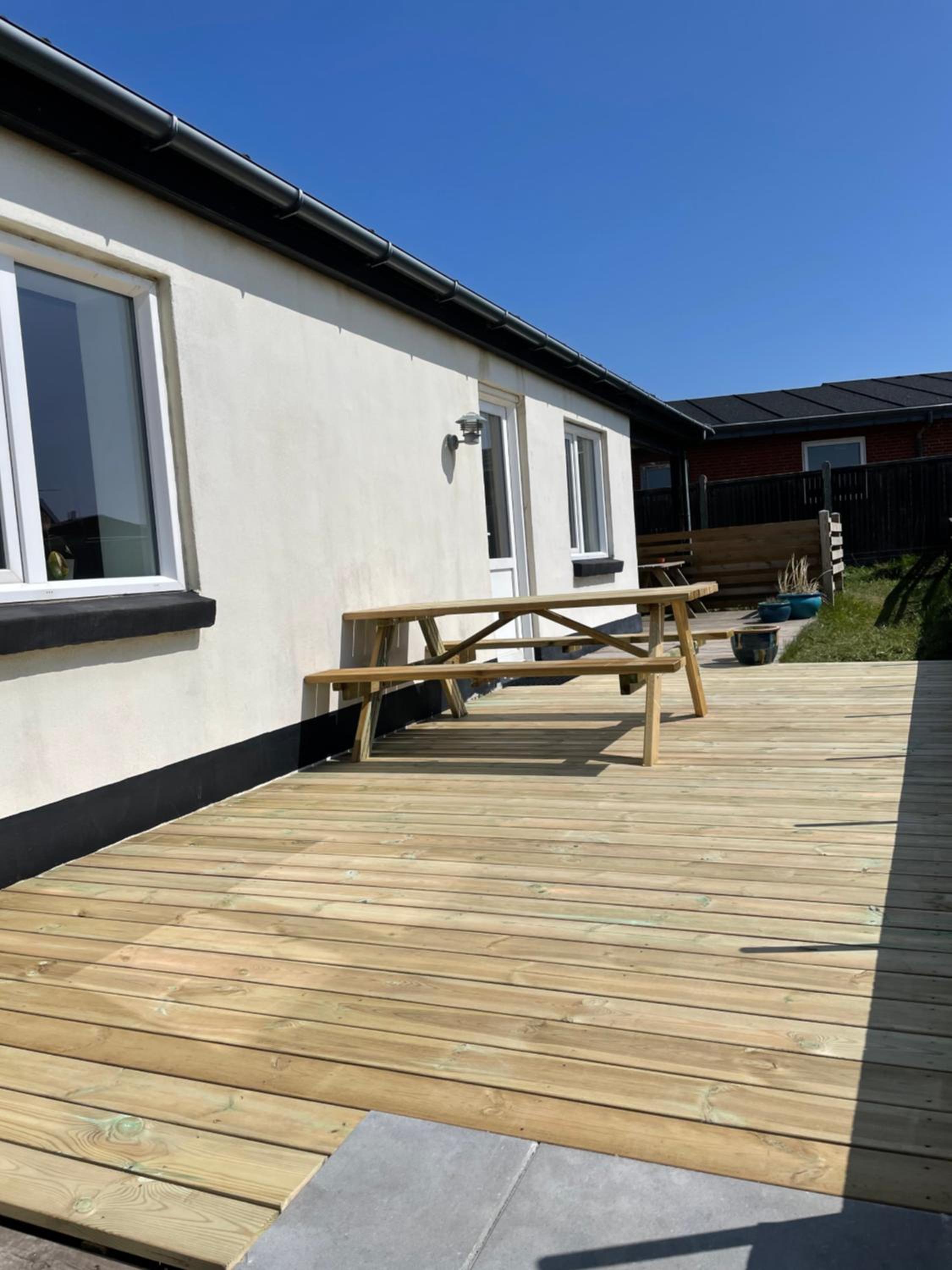 Savnede hynder til terrassemøbler og syntes sofaen var svær at slænge i samt savnede lidt (kommode/skab/hylder) til opbevaring af vores tøj.