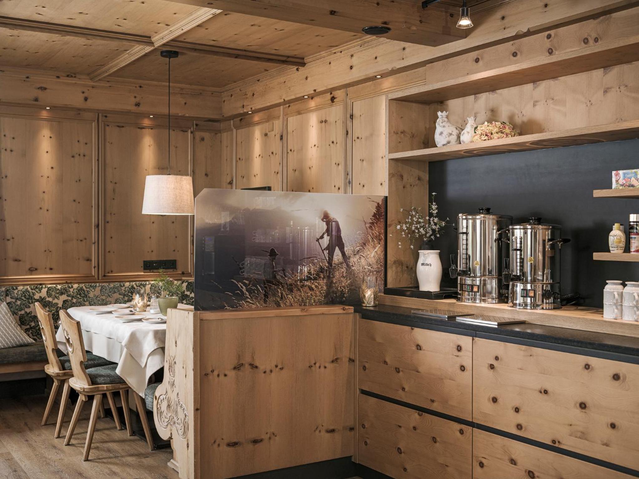 Family-Friendly Amenities: Our hotel offers a unique experience with an on-site petting zoo featuring rabbits and a horse, perfect for family fun. Guests can also unwind in the garden by jumping on the trampoline or make use of the ski storage, boots dryer, and ski bus for a convenient stay.