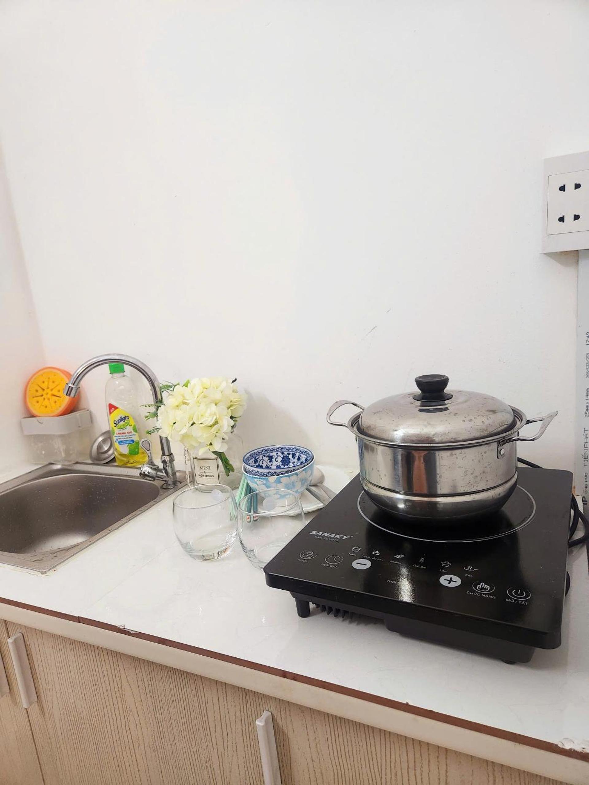 The room was on the smaller side, but not too tiny. Although there is an induction cooktop in the room, don't expect to be able to cook anything complex, and the sink is on the balcony. Being able to cook comfortably was something that I was missing a lot, but it is what it is.