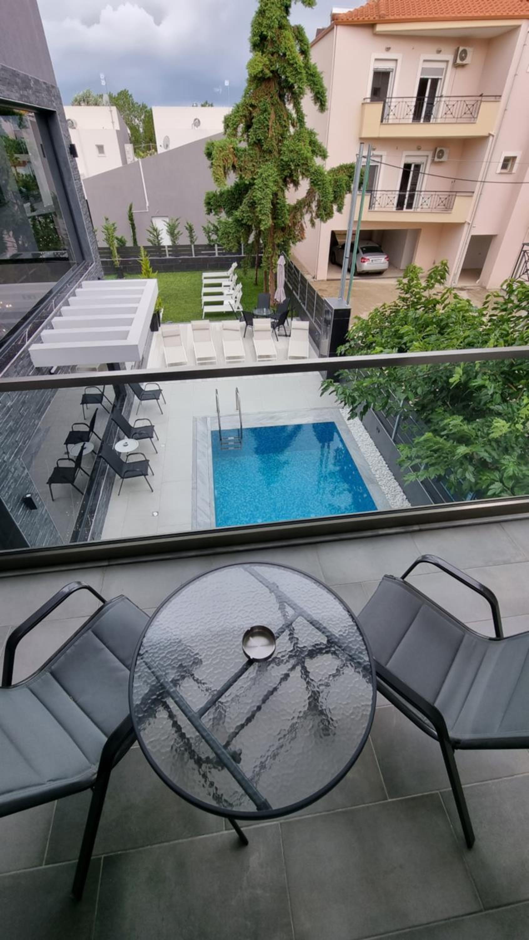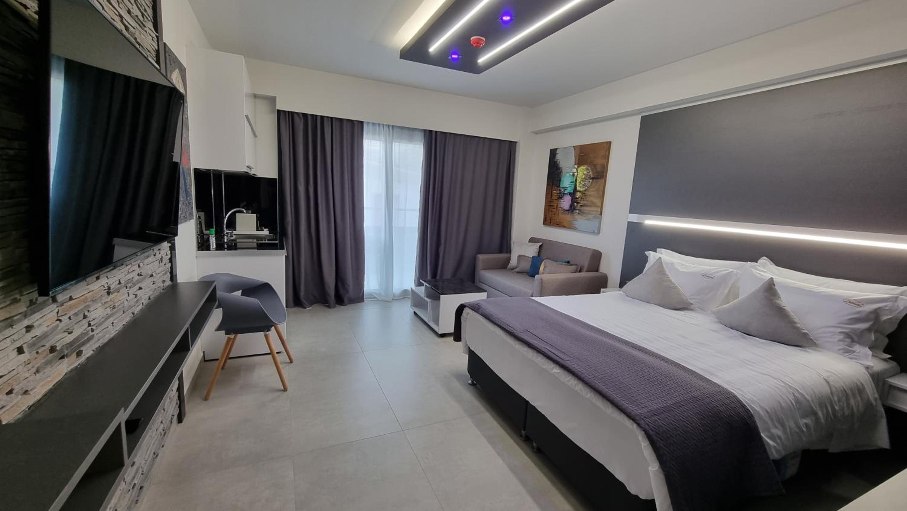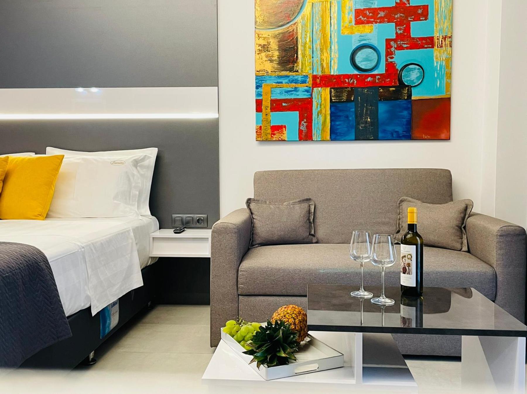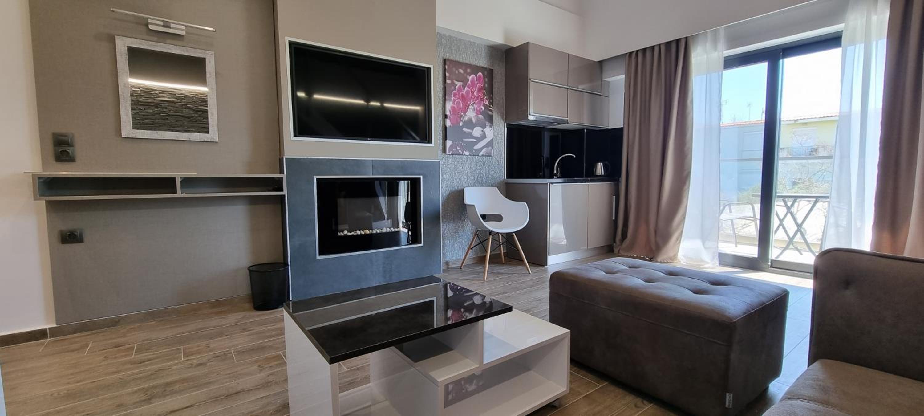 Unwind in Style: LUXSUITES offers air-conditioned units with modern amenities like a coffee machine, flat-screen TV, and a private terrace. Some units even feature balconies with stunning mountain views.