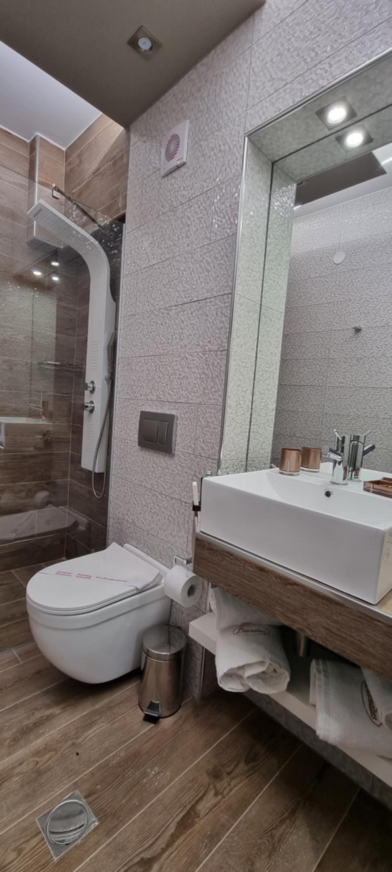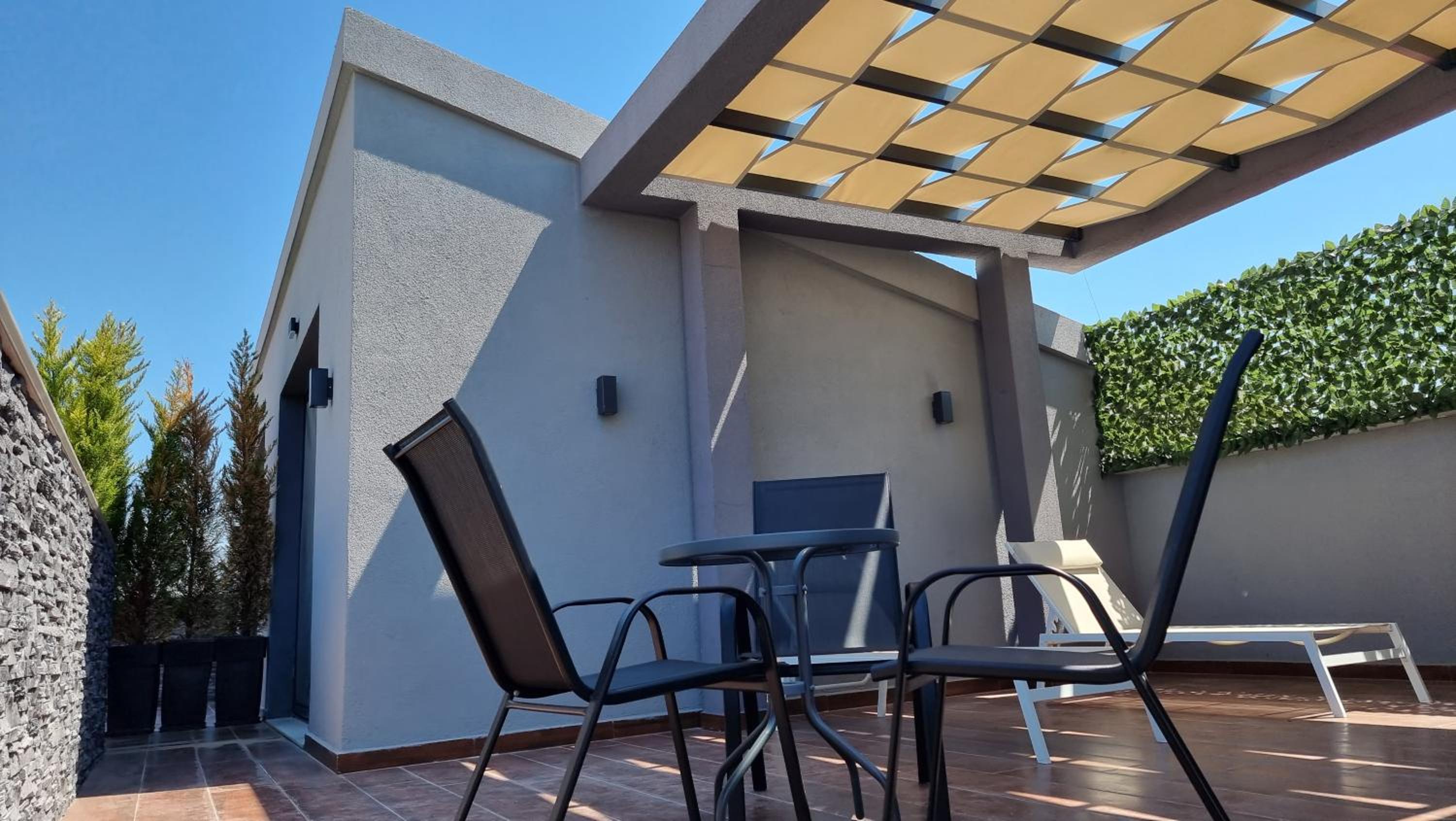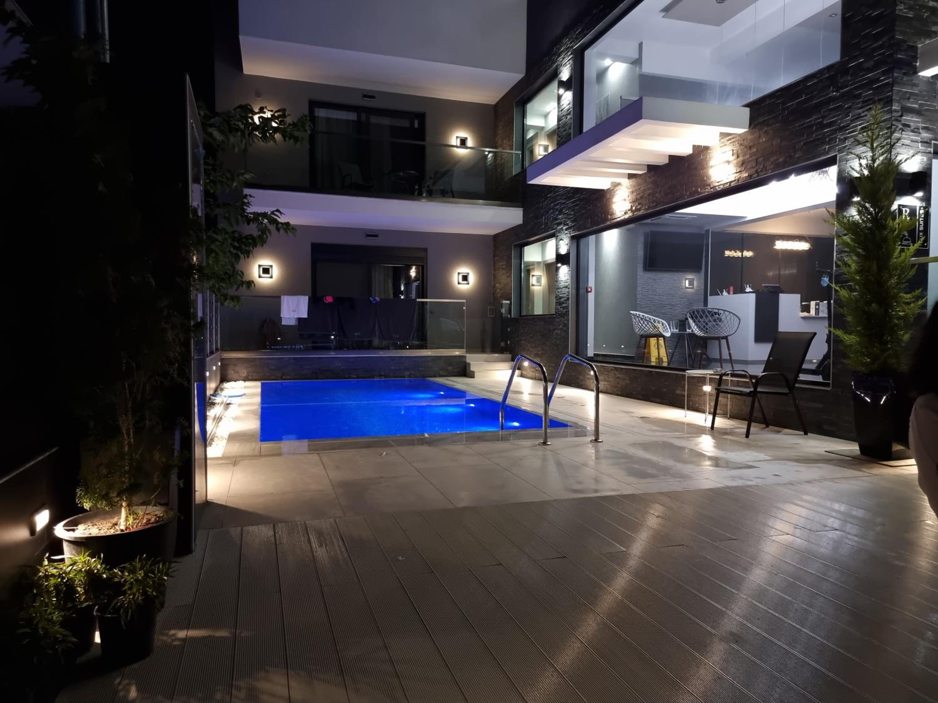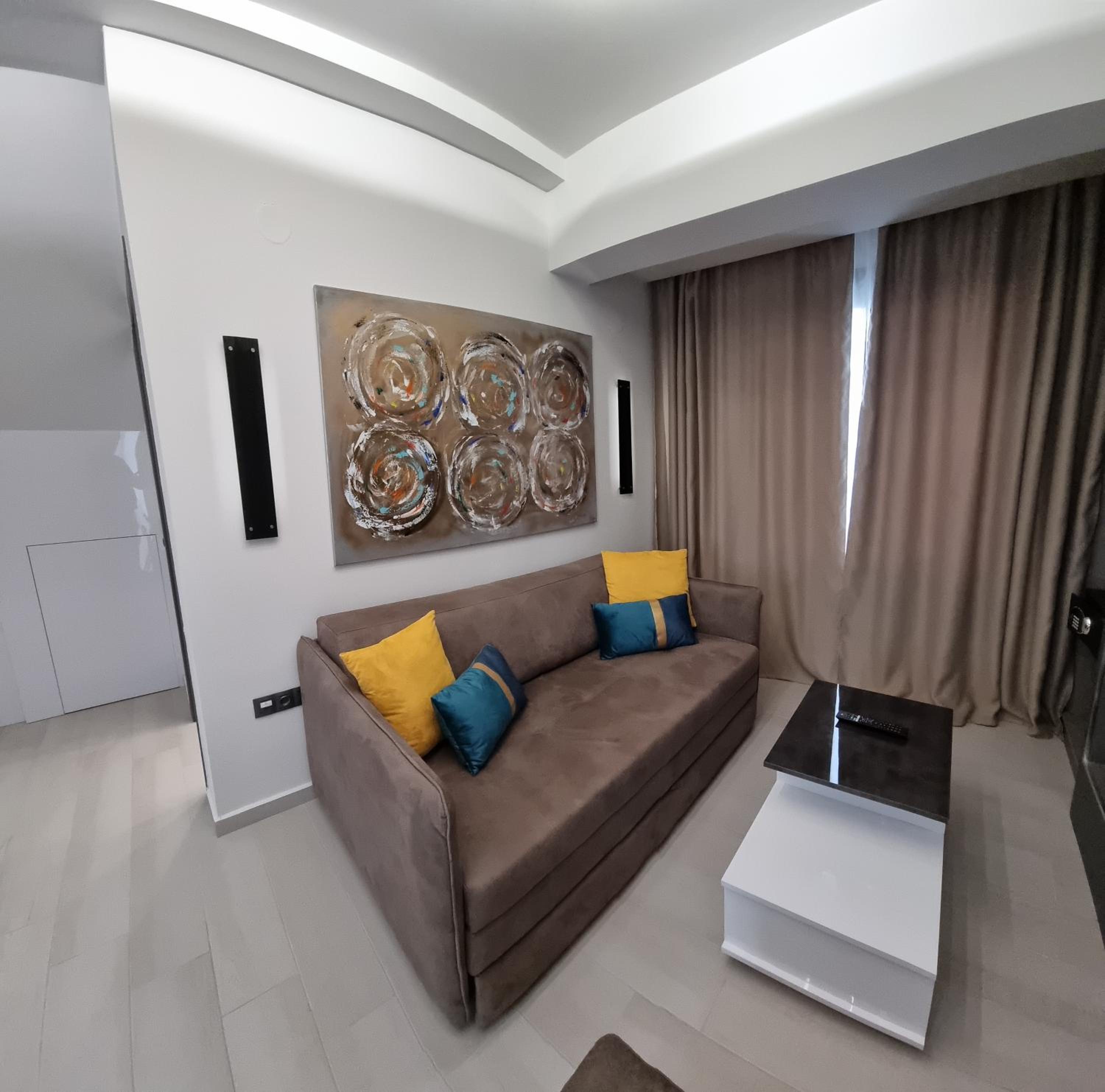 Unwind in Style: LUXSUITES offers air-conditioned units with modern amenities like a coffee machine, flat-screen TV, and a private terrace. Some units even feature balconies with stunning mountain views.