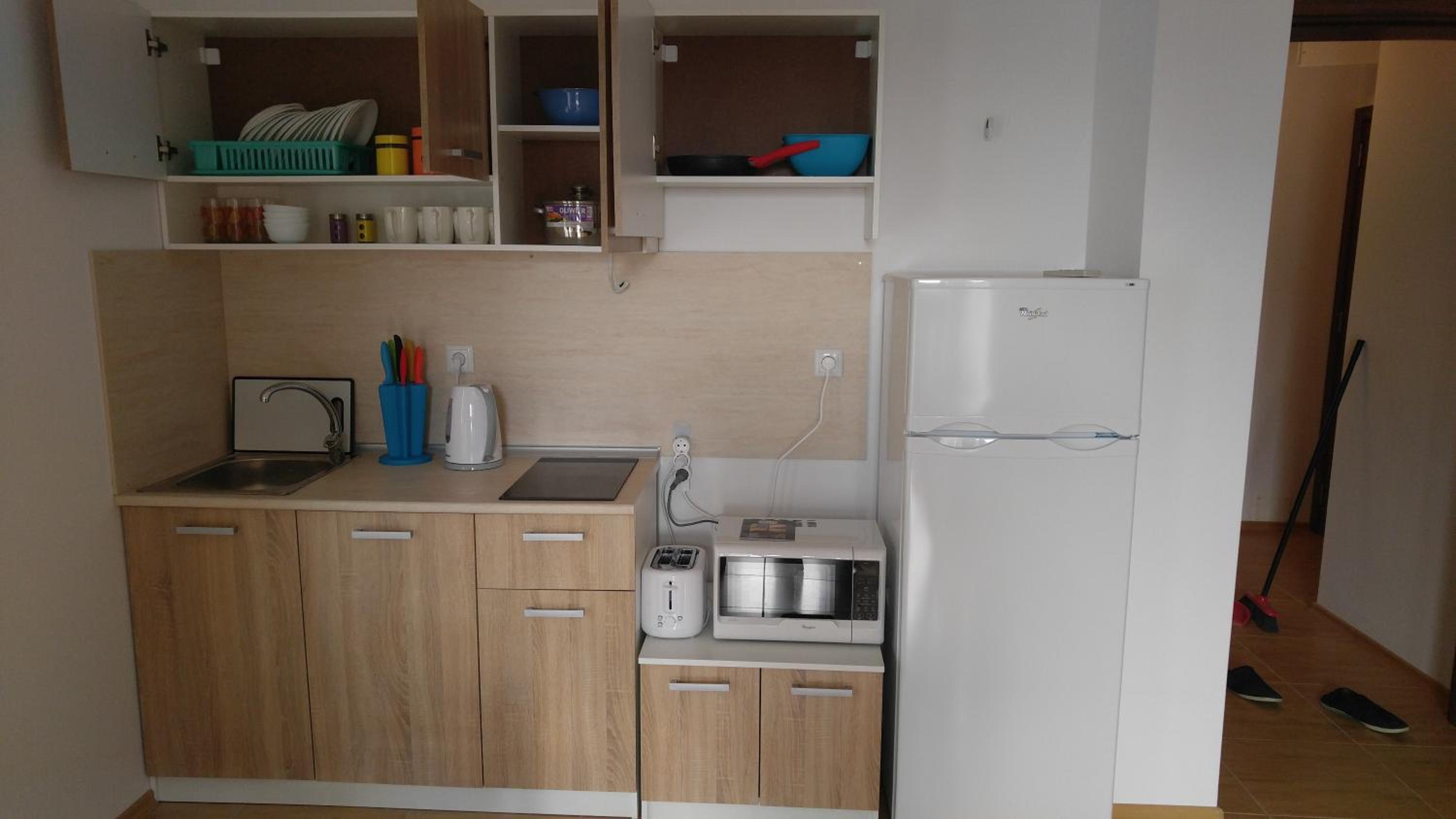 Dostatočne veľký apartmán na 1. poschodí s výhladom do troch strán (výhlad na malý kúsok mora). Pešo k moru približne 5-8 minút.