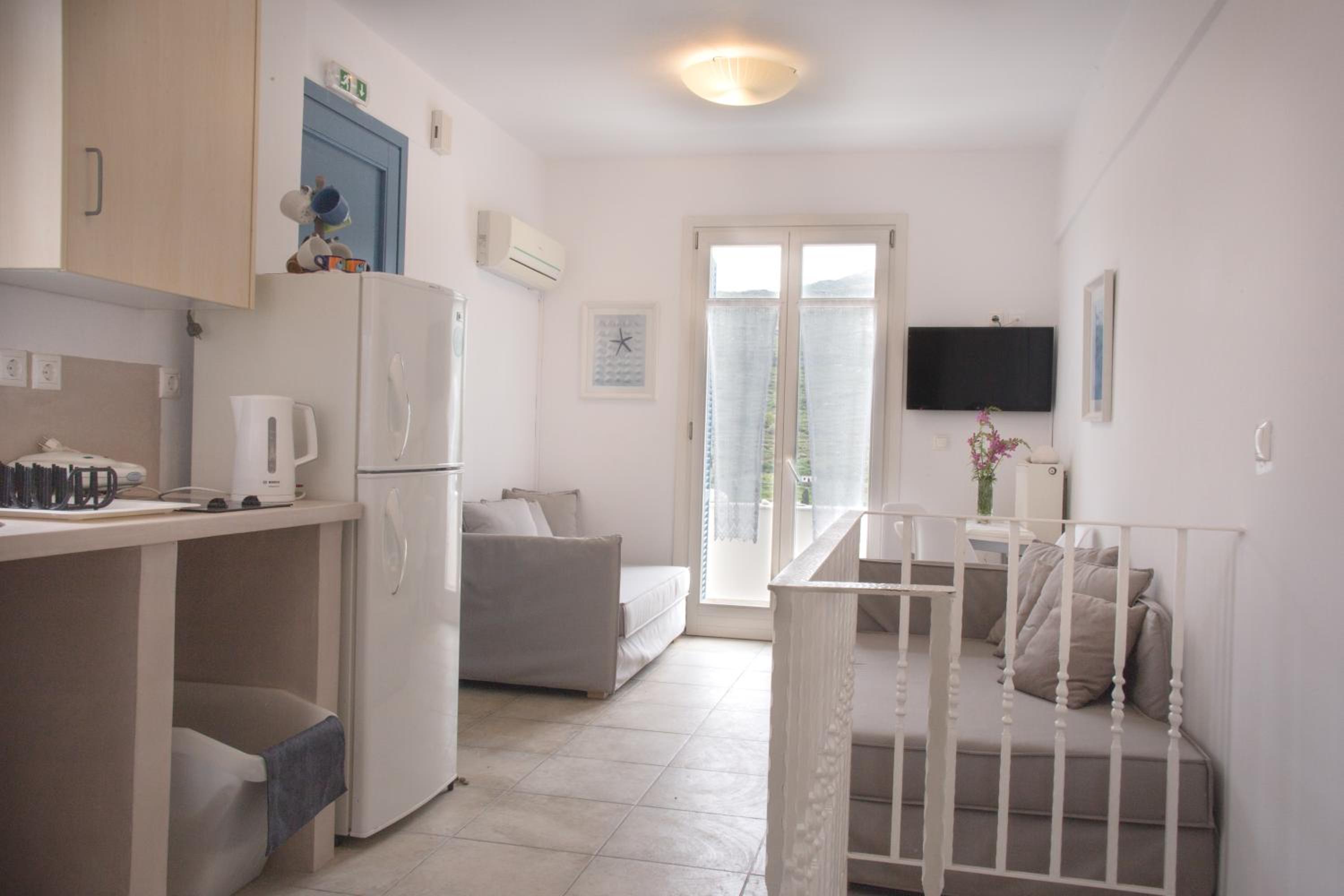 Anemomiloi in Andros Town offers studios with free Wi-Fi and verandas overlooking the Aegean Sea. The air-conditioned units come with kitchenettes and LCD TVs for a comfortable stay.