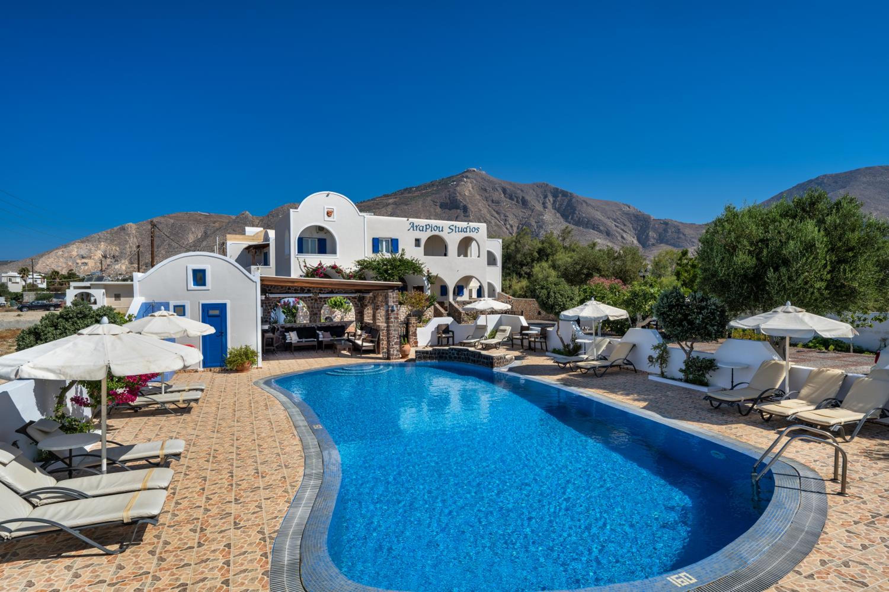 Had a great time at Arapiou apartments. This was our second stay and it did not disappoint. Updated and comfortable rooms and bathrooms. Well run family hotel with welcoming and warm hosts. Steps away from beautiful Perissa beach with all its amenities, restaurants, market , beach activities and so much more.