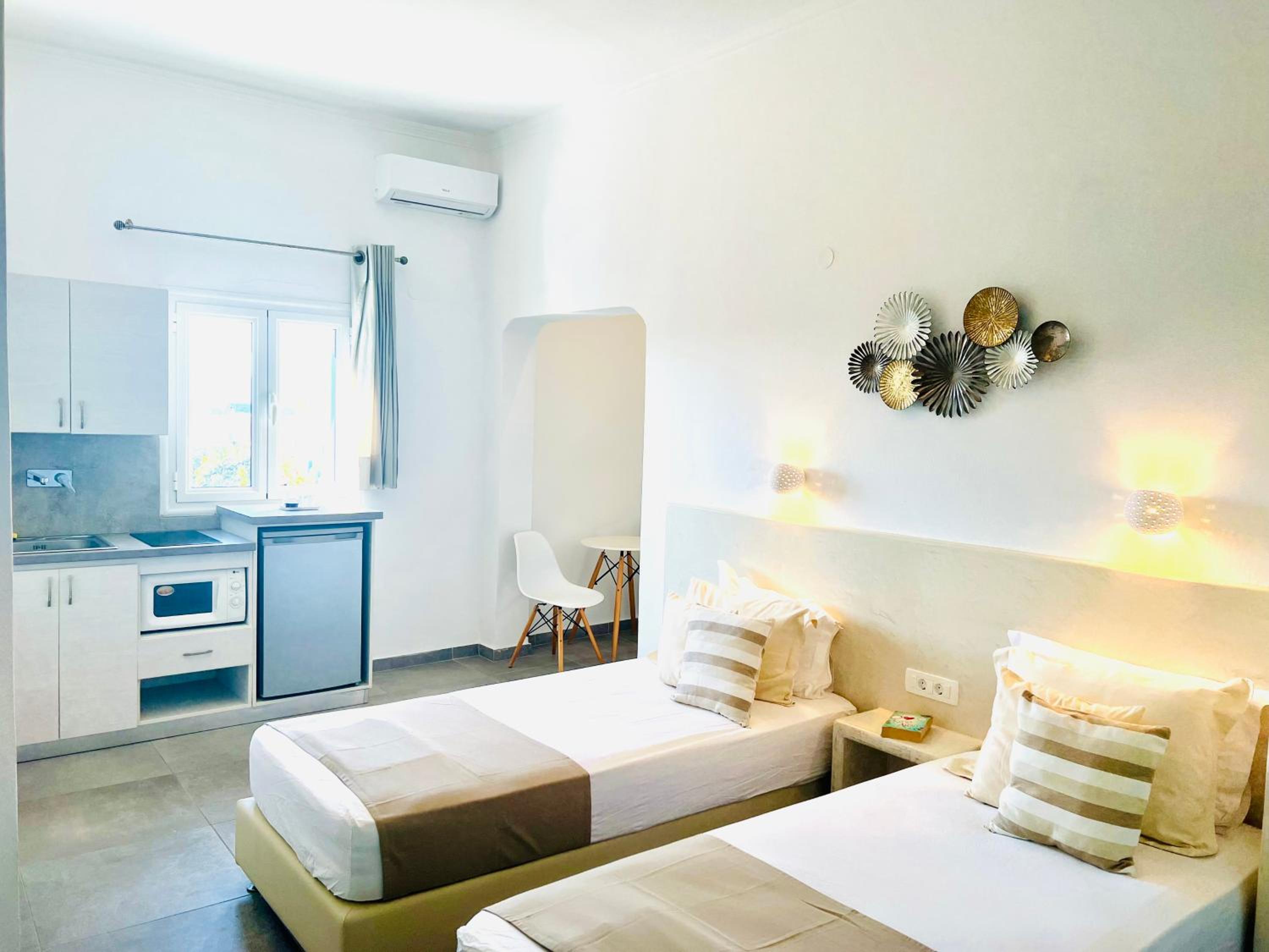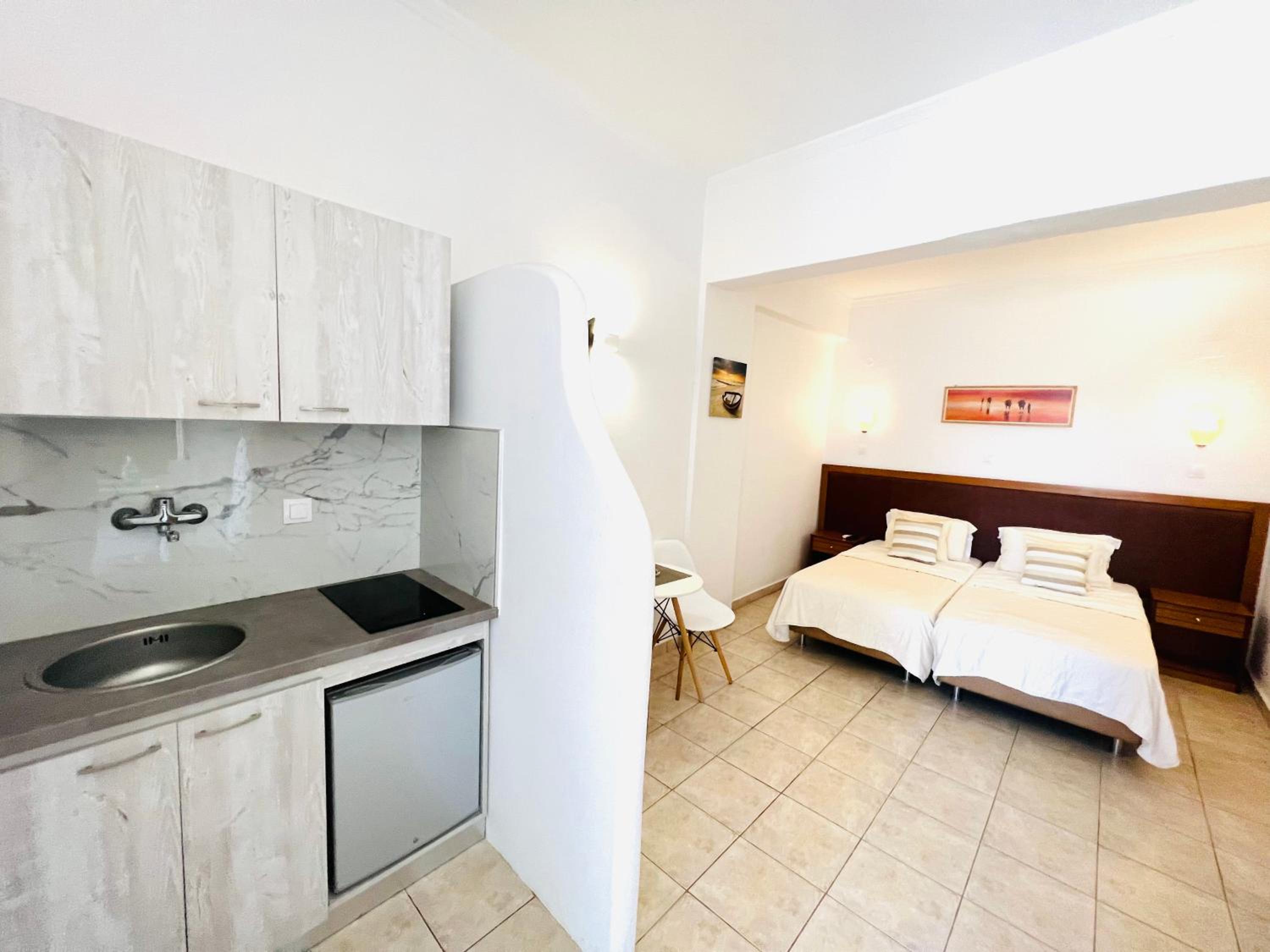 Everything about these studios is just great. Lovely hosts, very relaxed and friendly atmosphere. The pool is just perfect and the whole place is spotless clean. The family that run it are so friendly and helpful and the bar by the pool is very nice too. The location is ideal only a stones throw from the beach and restaurants. We will definitely be back and highly recommend this gem of a place.