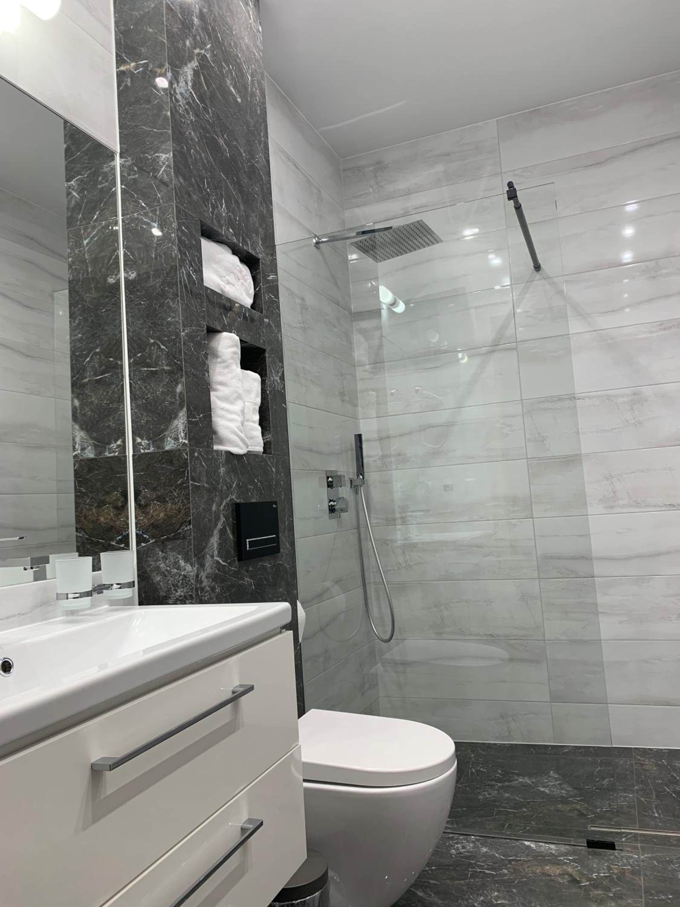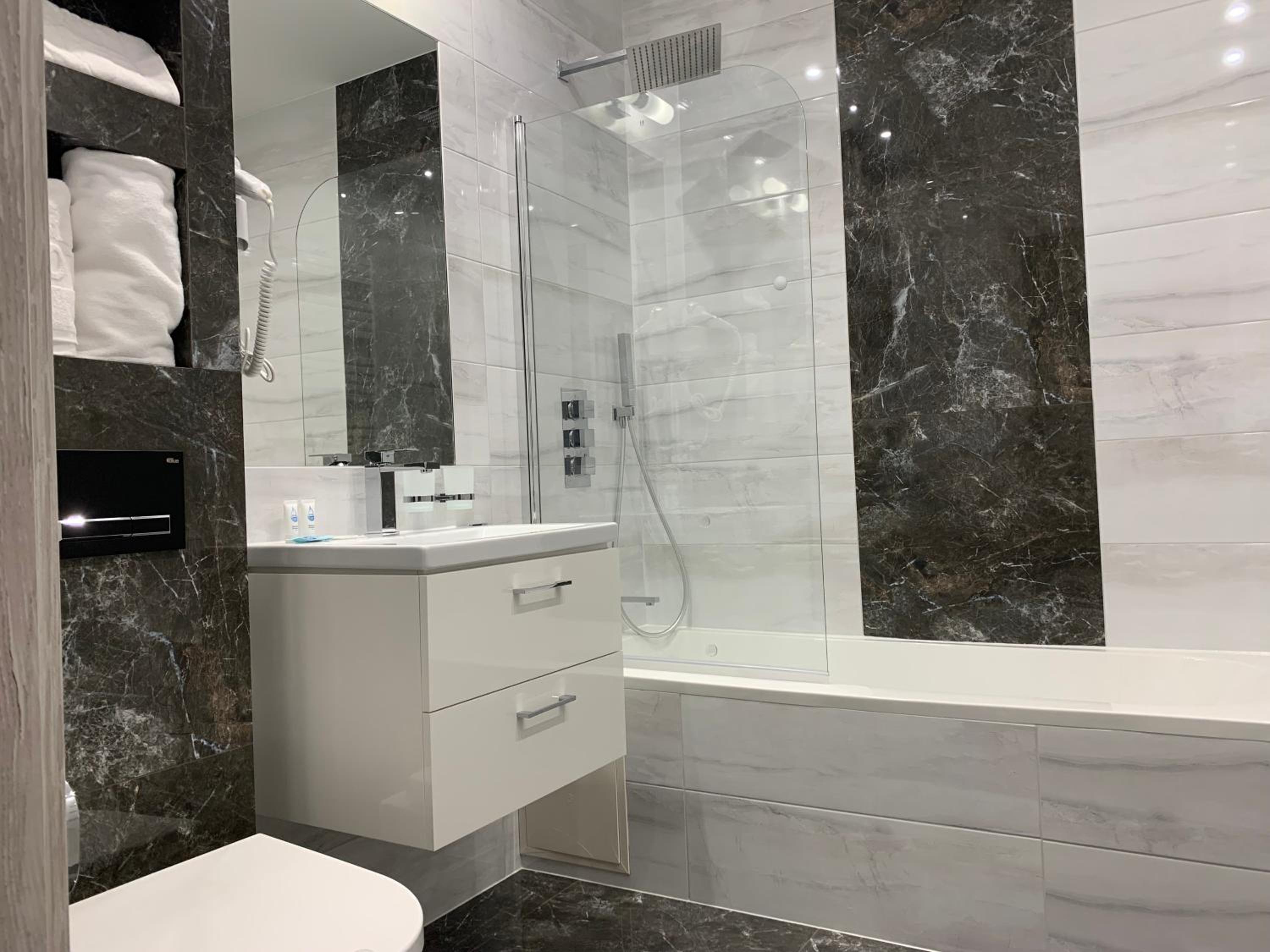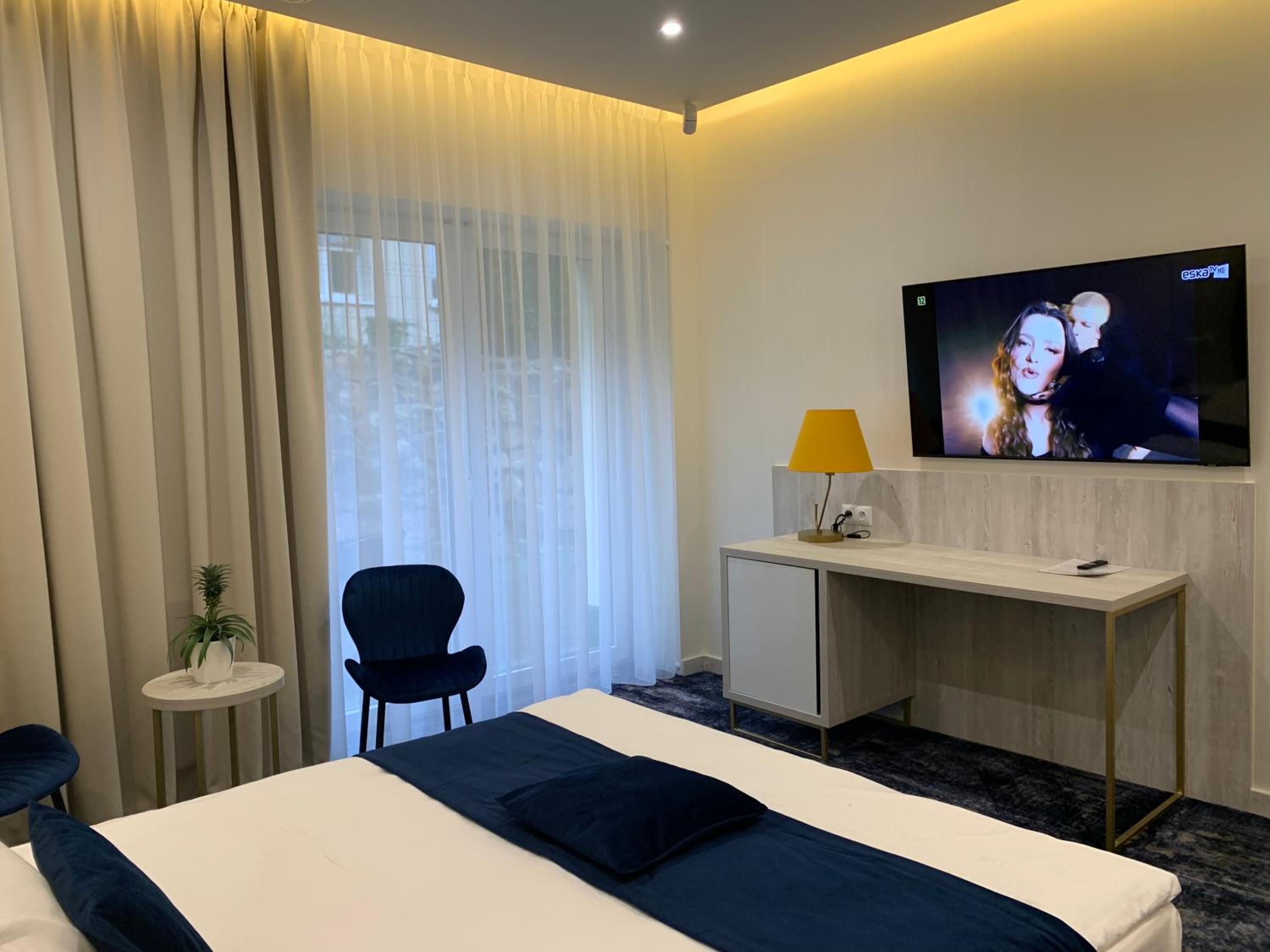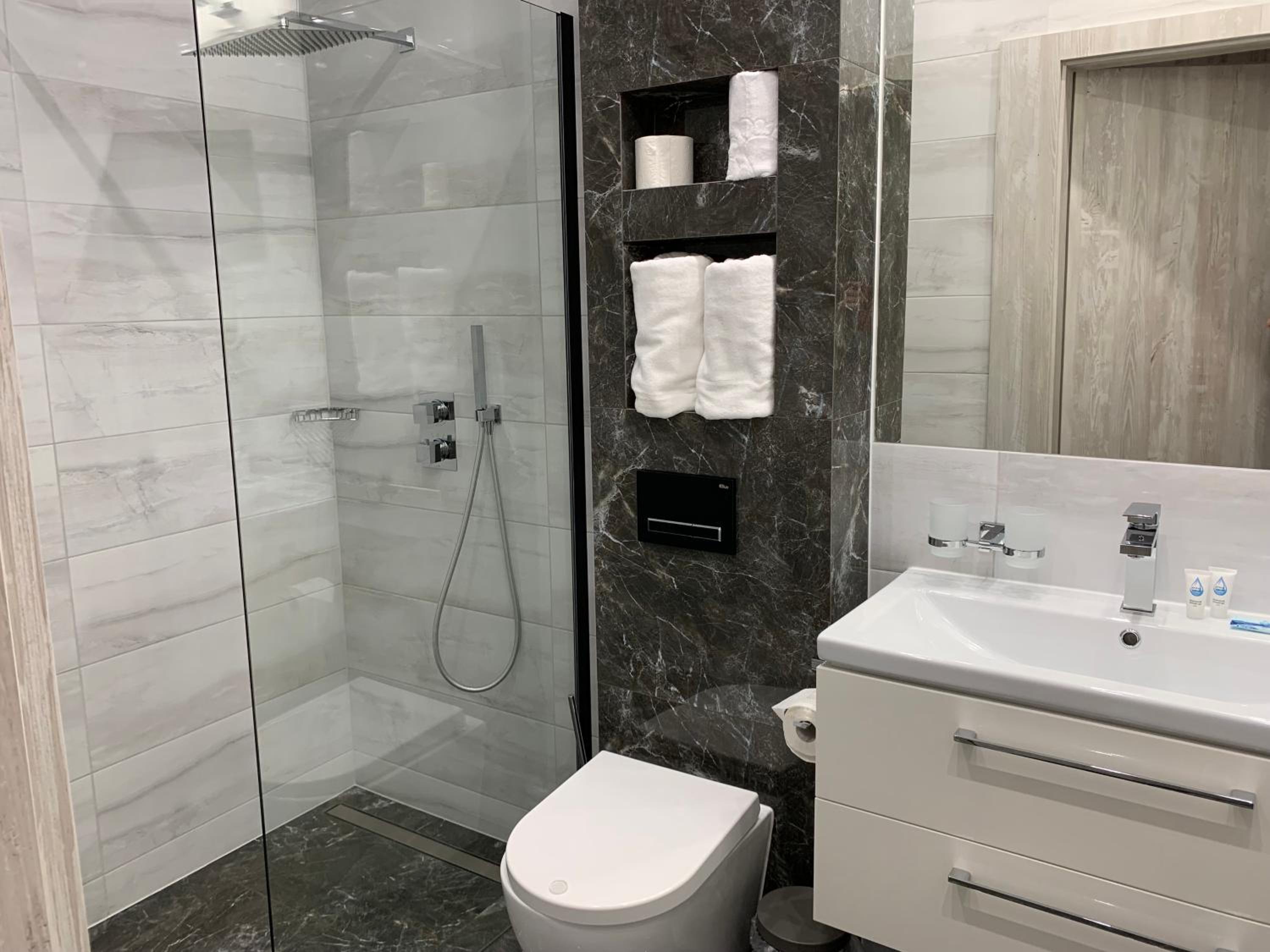 Nowoczesny, duży pokój. Wygodne łóżko. Przestronna łazienka z dużym prysznicem.